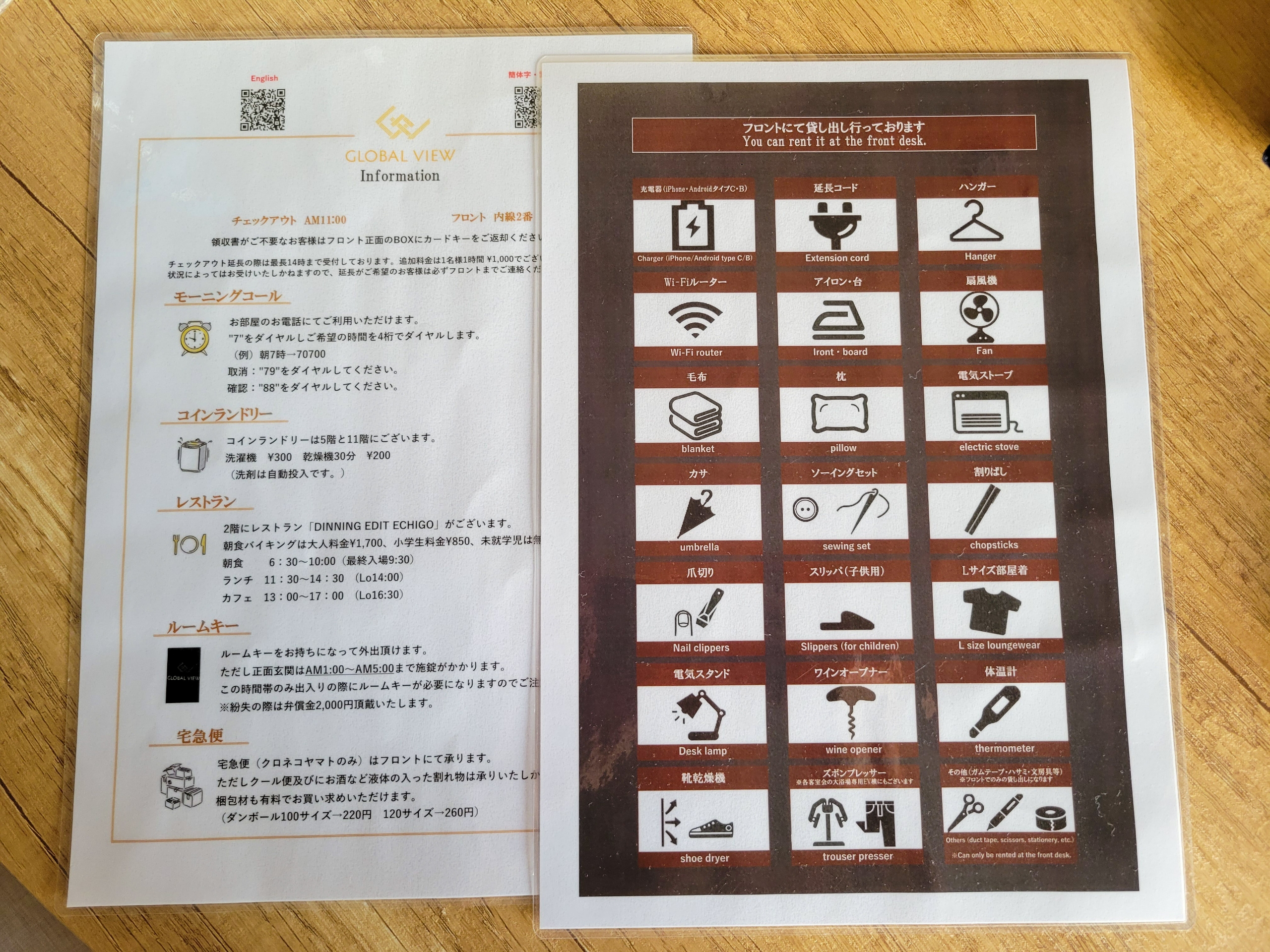 貸し出しできるものをピストグラムで表記してありますが、これはわかりやすいですね。
