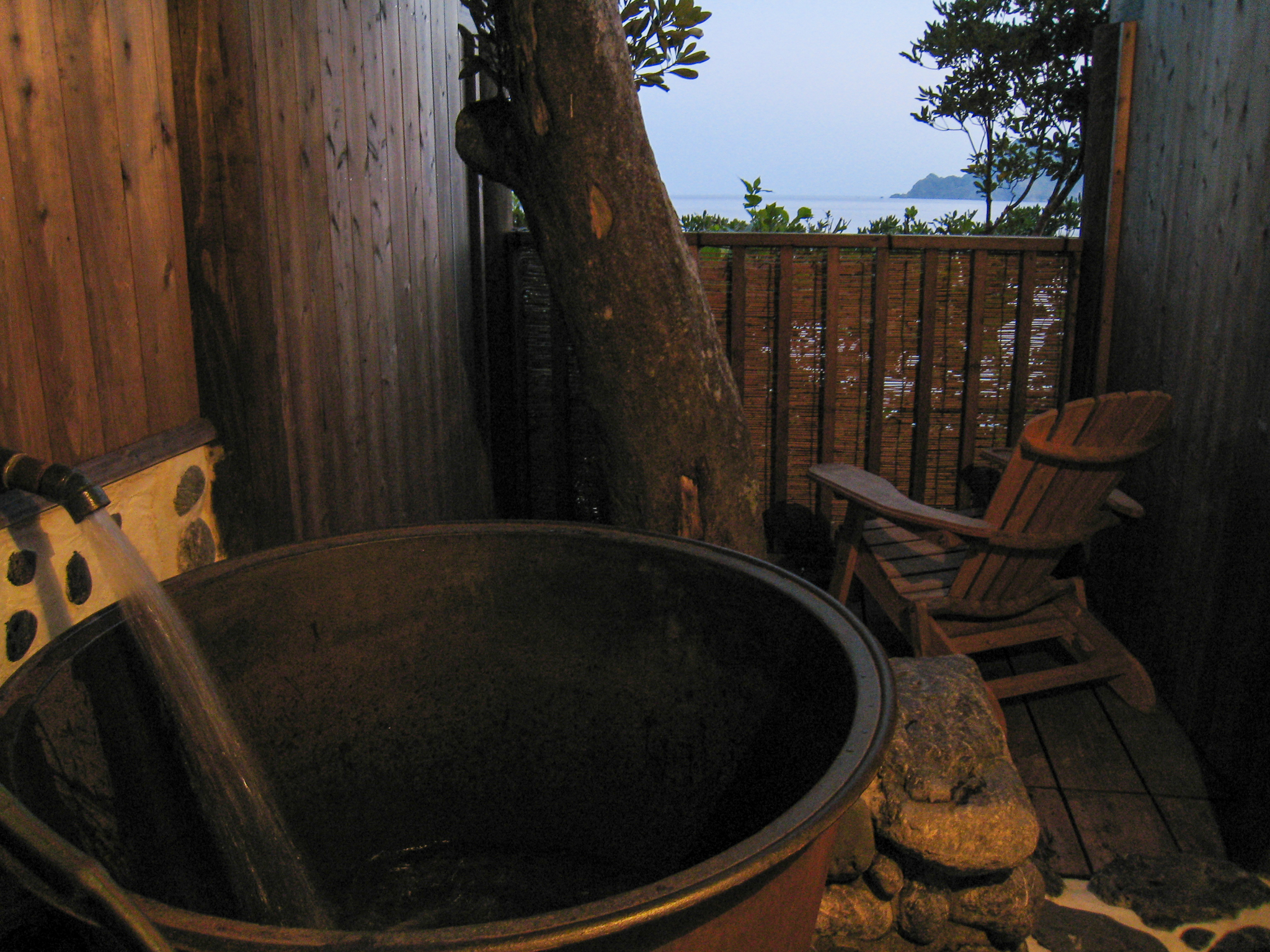 海辺から上がり、シャワーといきたいところだが、マリンステイション奄美には貸切の五右衛門風呂がある。チェックイン時に予約をしておいたので、夕食前にひとっ風呂あびる。