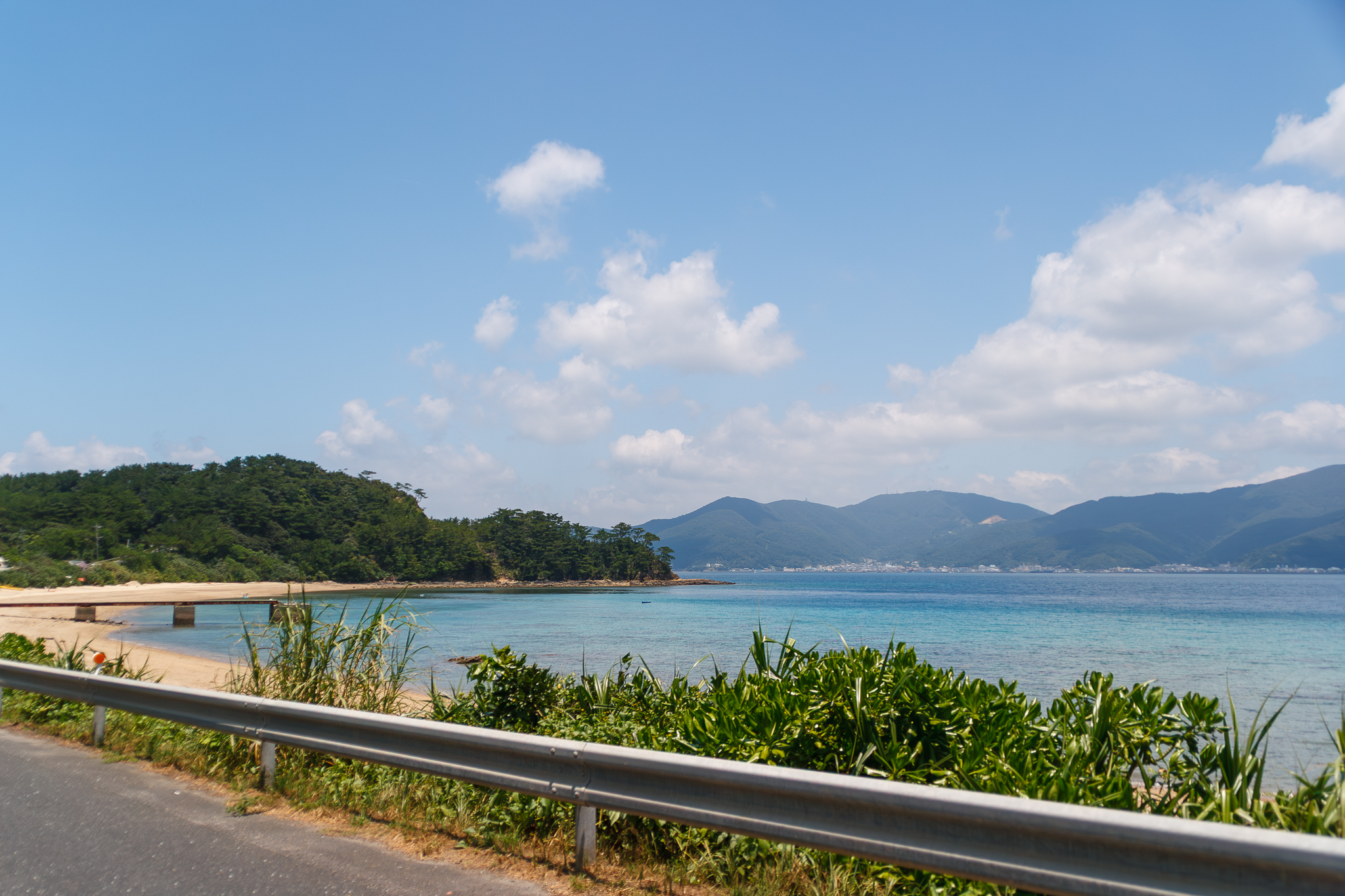 海岸線を走る時は常に、大島海峡の綺麗な海が視界に入る。