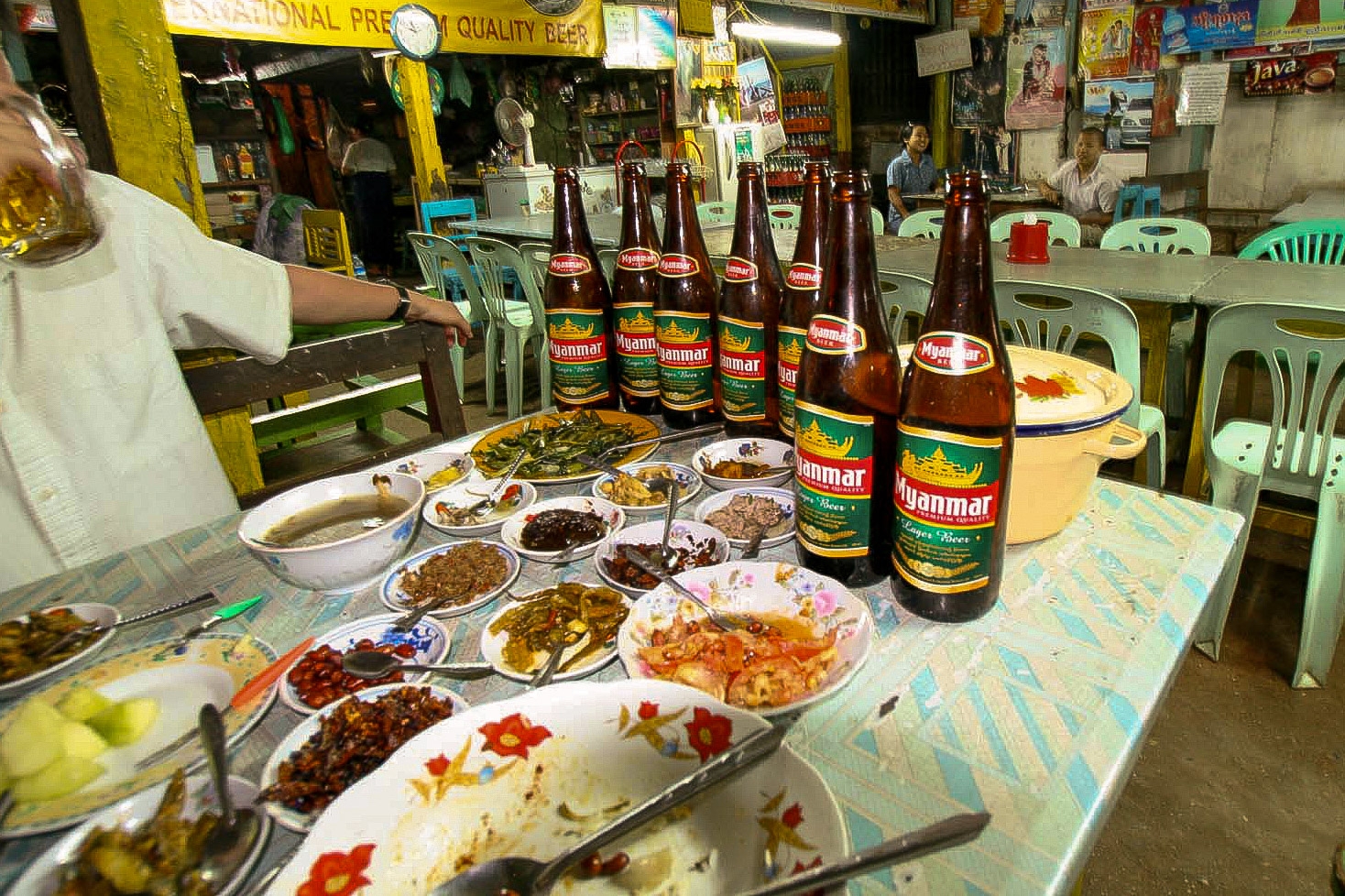 ふたりでミャンマービール大瓶11本もあけて、閉店間際の23時まで飲んでいた。