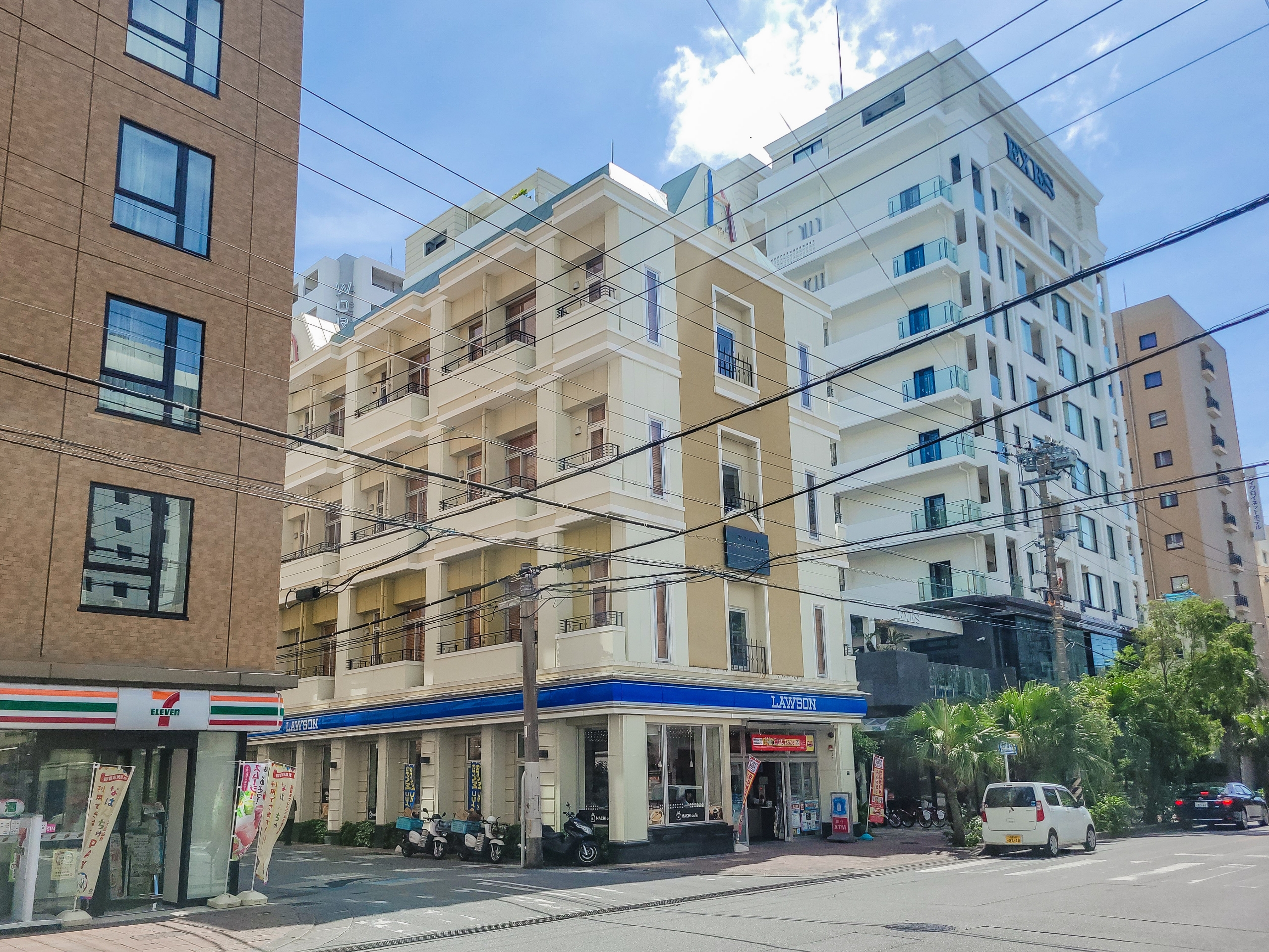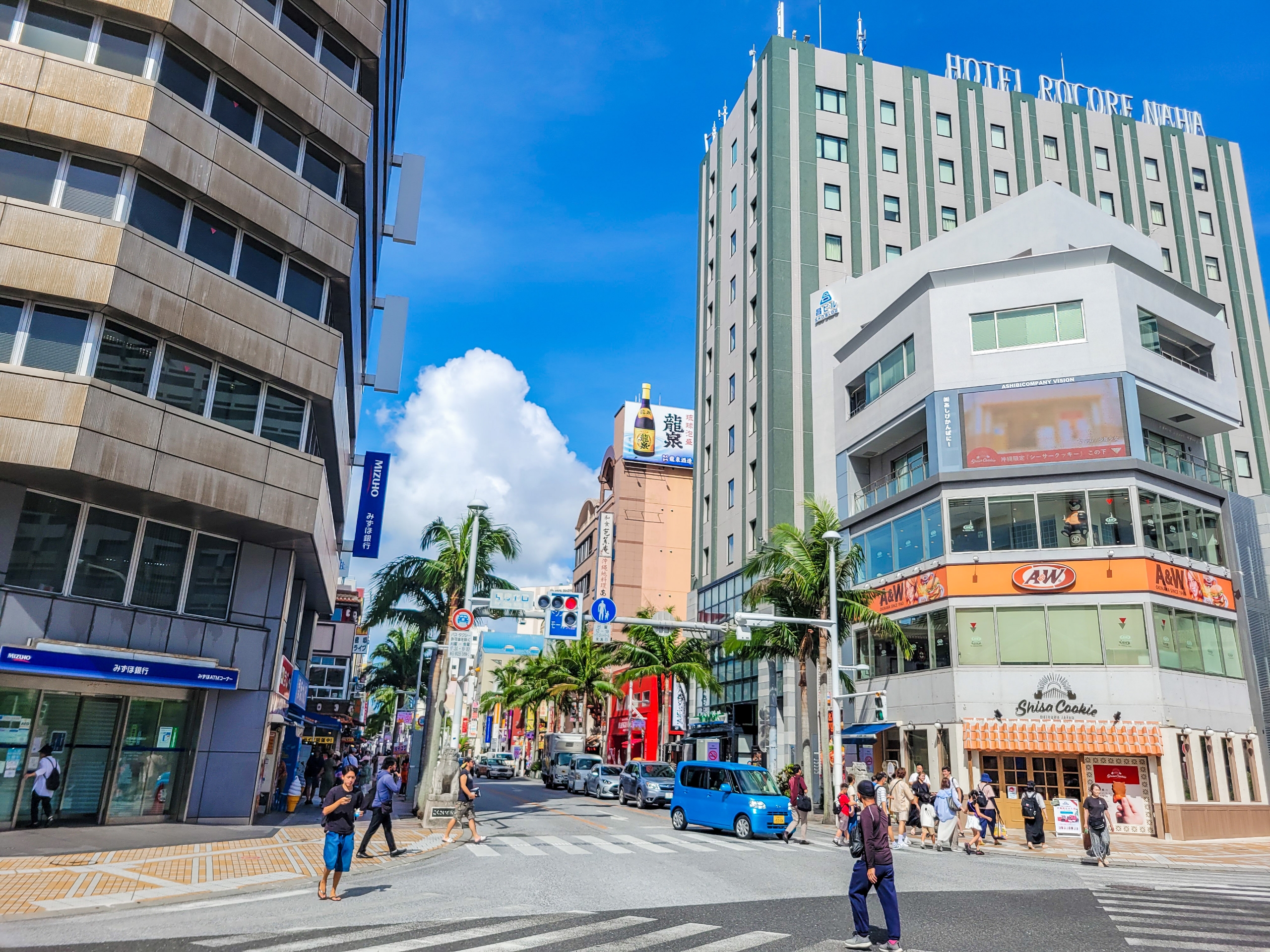 泉崎は、初めて宿泊するエリア。翌朝早くに那覇港にいくので、できるだけ近くにとおもい予約しました。館内にローソンがあり、道を挟んでセブンイレブンもあります。