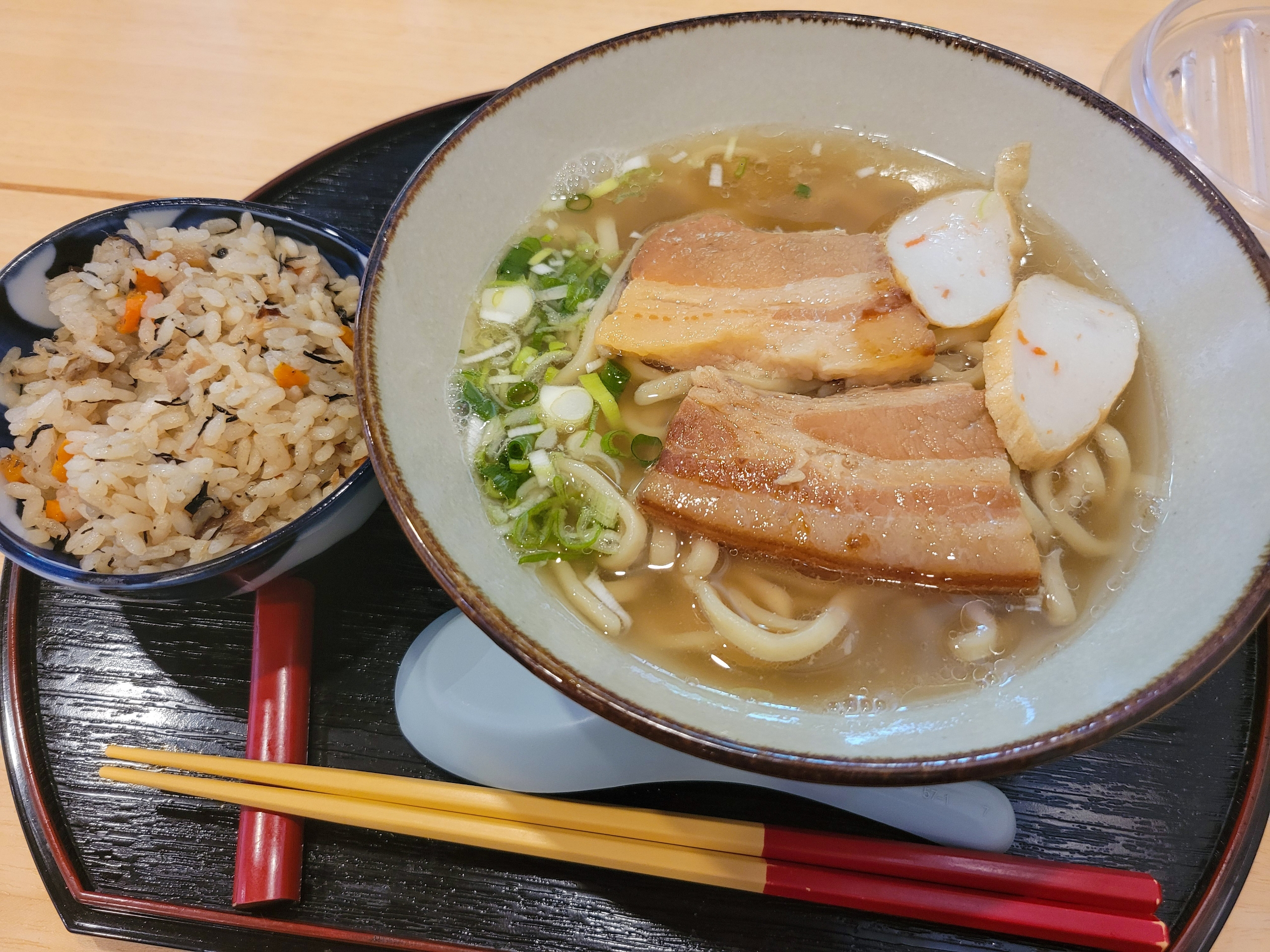 市場近くでおやつの沖縄そばを頂きます。今年3月にオープンしたばかり。中途半端な時間だったので、お客さんは少なめ。