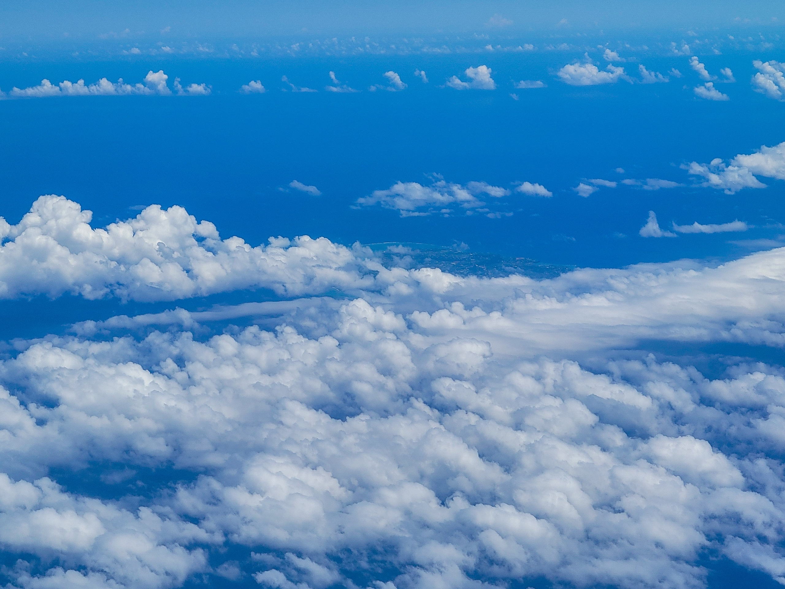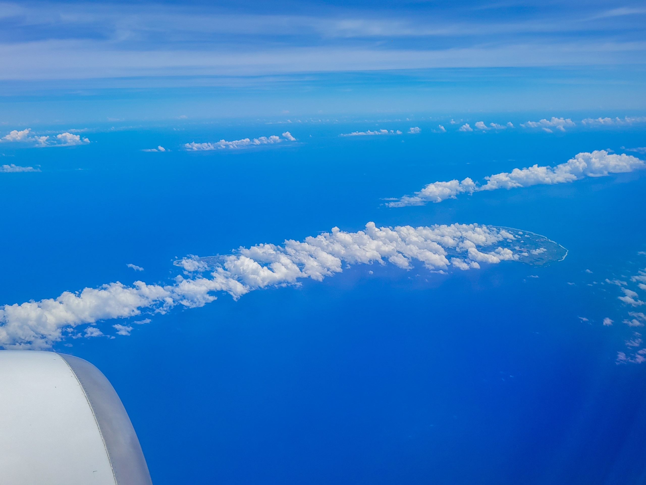沖縄本島の本部半島、伊江島。与論島からの雲が沖縄本島まで繋がっていました。