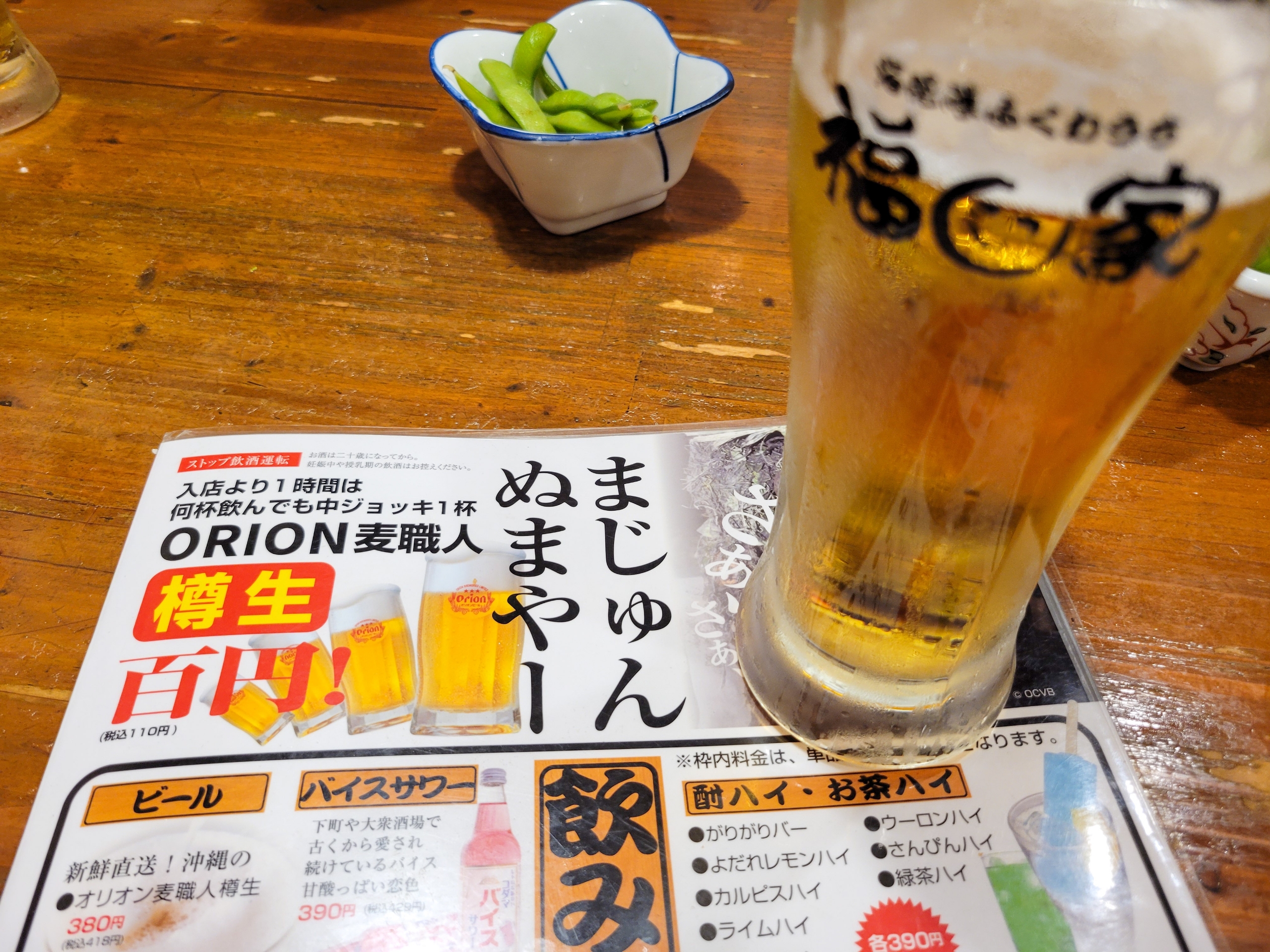 まあ、お腹が空くわけもなく、やることないので、センベロコースです。牧志市場周辺にはセンベロのお店が集まっています。とはいっても、まだ時間が早かったのでオープンしているお店は少ないので、開いていた去年行ったお店へ。同じ場所だけど、お店の雰囲気が少し変わったかな?