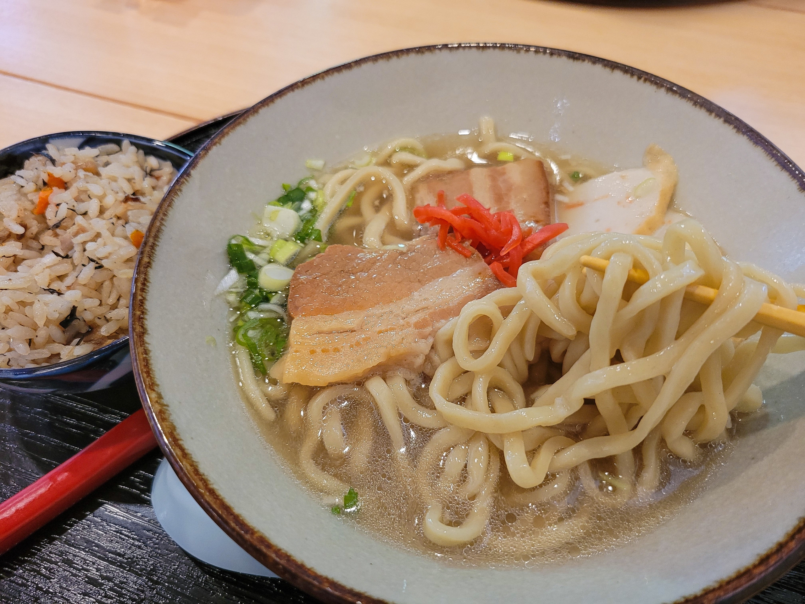 最後、普通麺も試食させてくれましたが、これぞ沖縄そばって感じで、軽くて良かったですね。生麺は比べてしまうと、結構重すぎるかも。飲んだ後とかだと、普通麺が向いてそう。