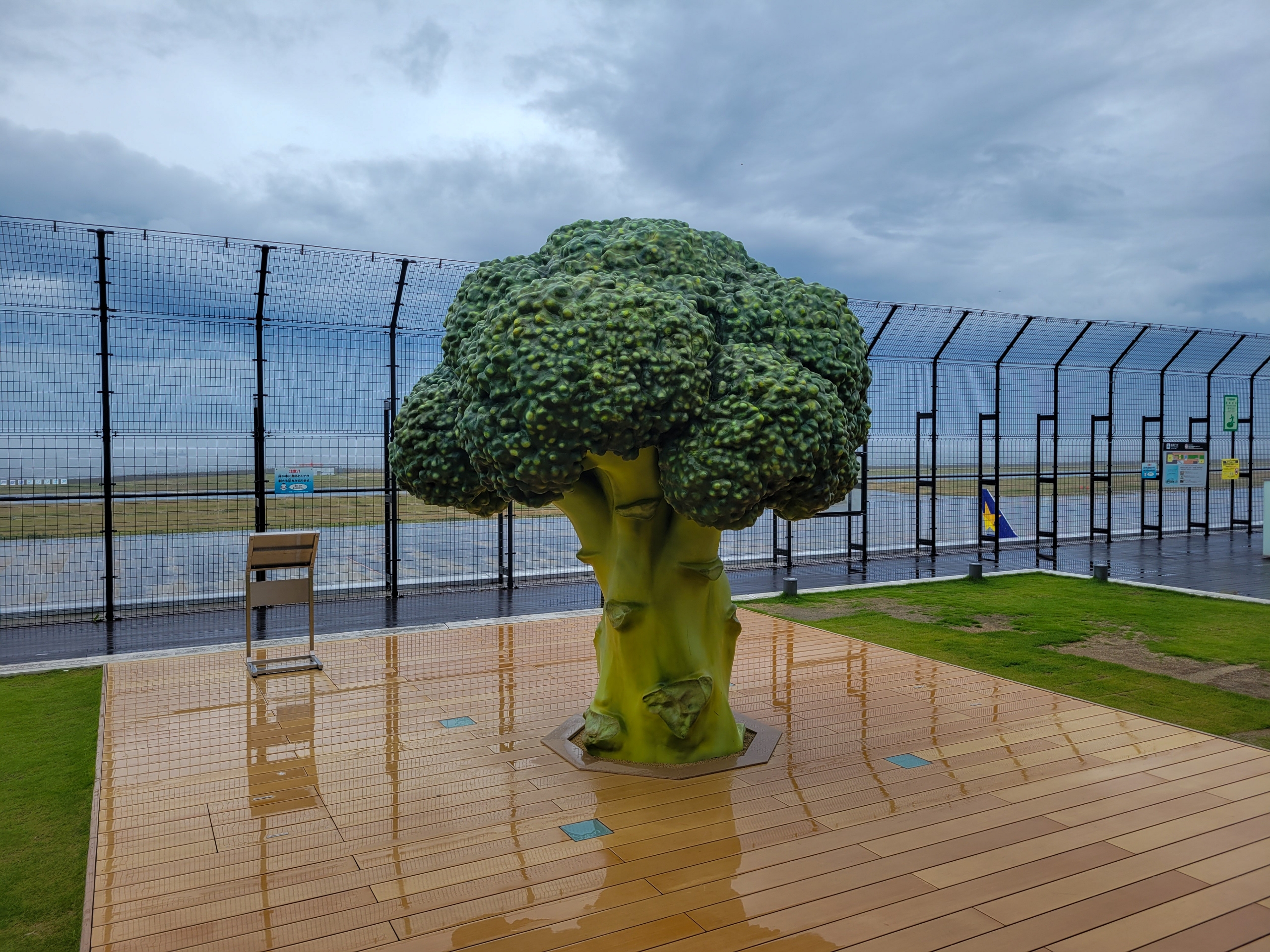 神戸空港の展望デッキになぞの巨大ブロッコリー。4階の展望フロアにも意味不明?アート的なものが展示されてたけど…テナントが入らなかったのかな?