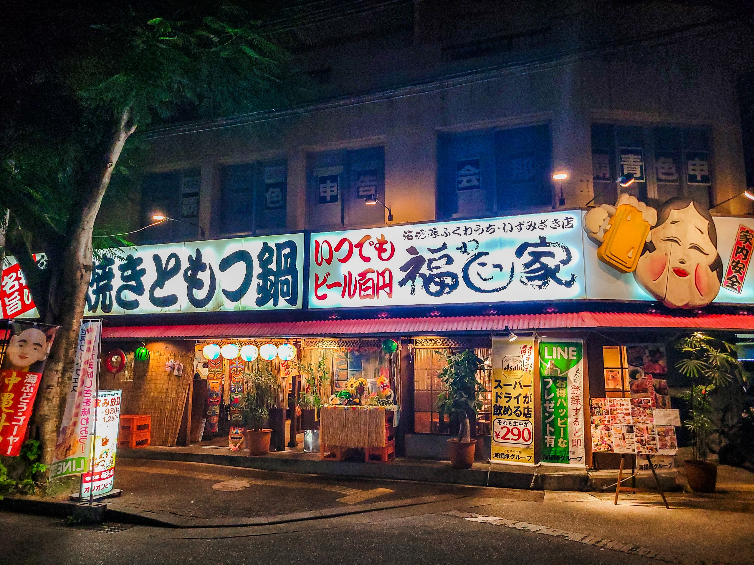 ふたたび22時過ぎにホテル近くで合流。このあたりは初めて訪れる場所だけど、県庁・市役所も近くてそれなりにお店もある。「いつでもビール百円」という看板につられて、このお店に入店。