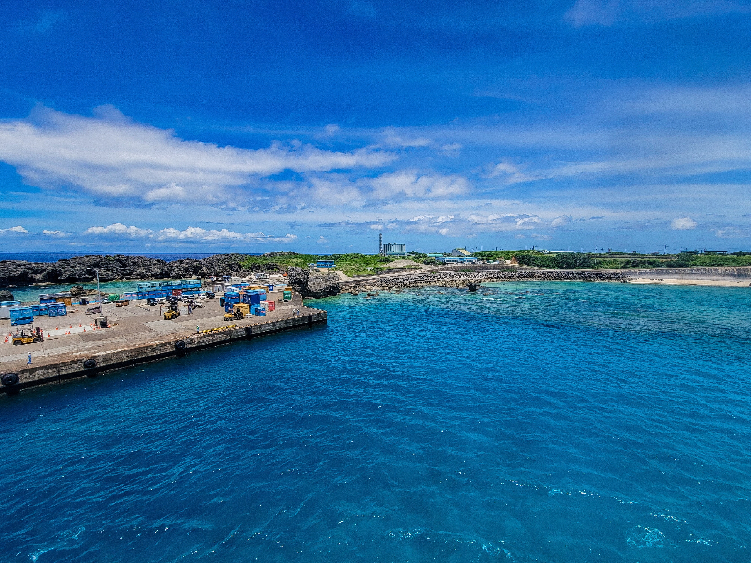 それぐらいの場所に港があるので、海の色はとても綺麗。