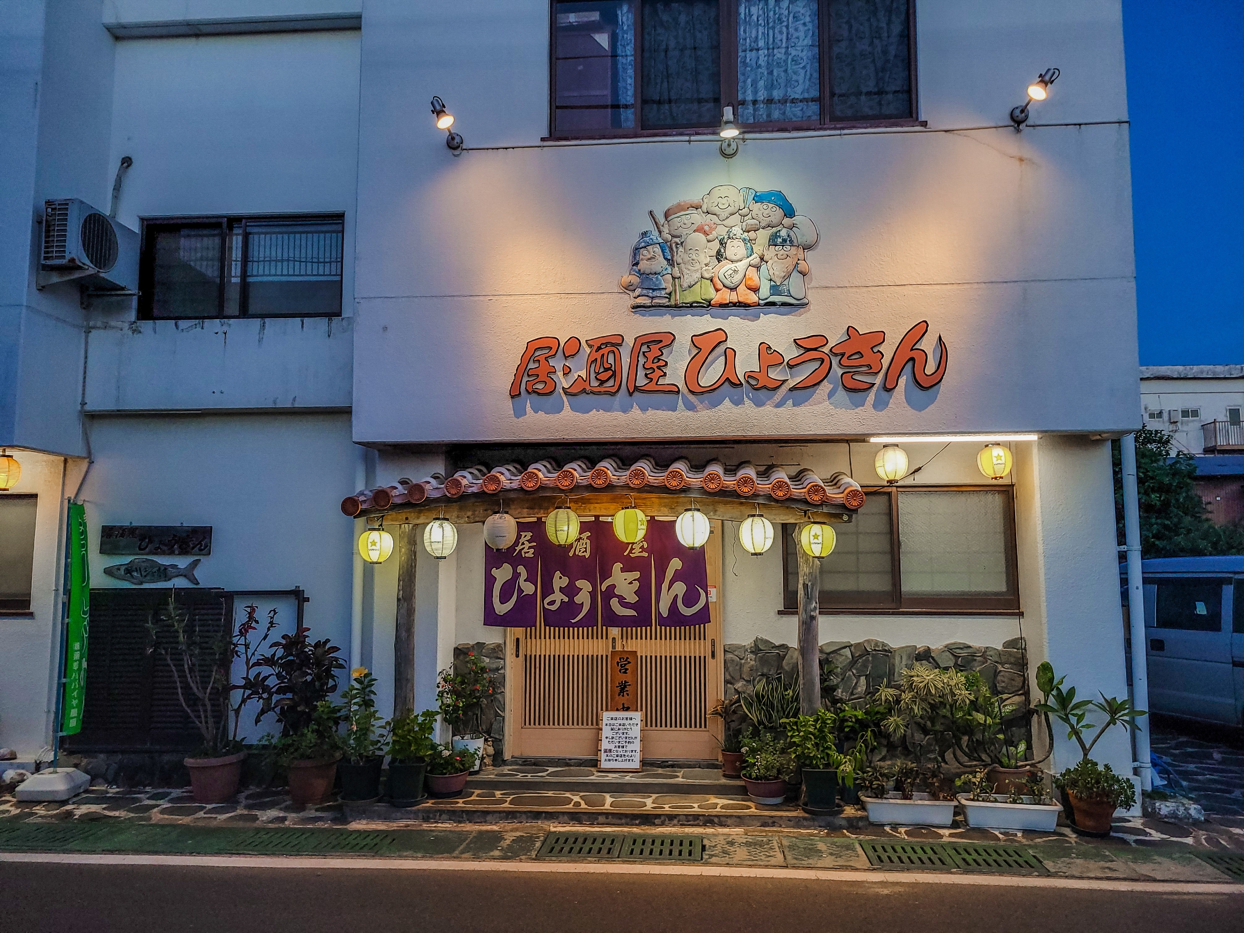 火曜日ですが、予約で満席という看板が出ていました。おそらくひょうきんさんは、与論島では一番人気の居酒屋だと思います。