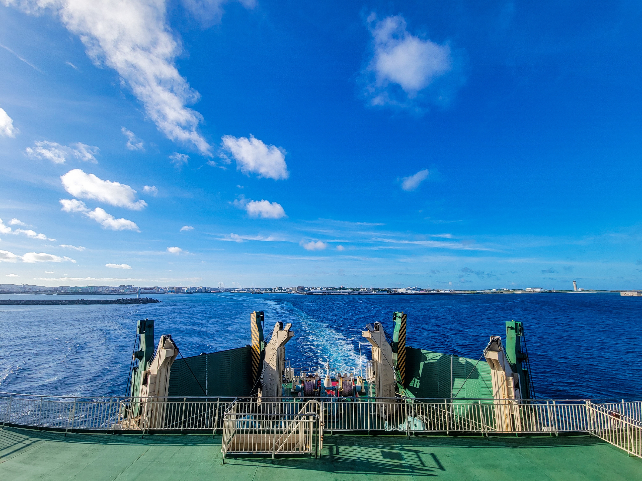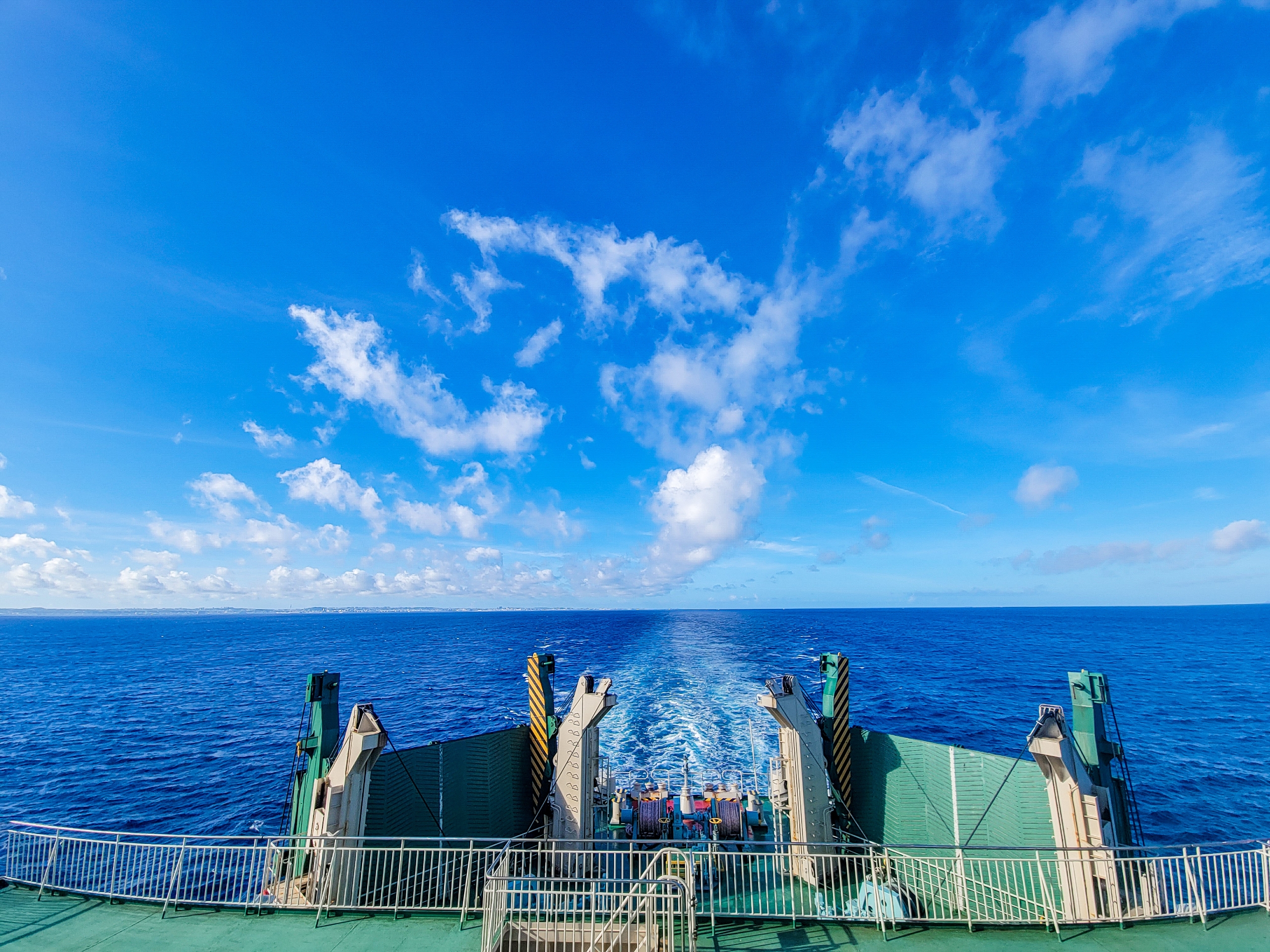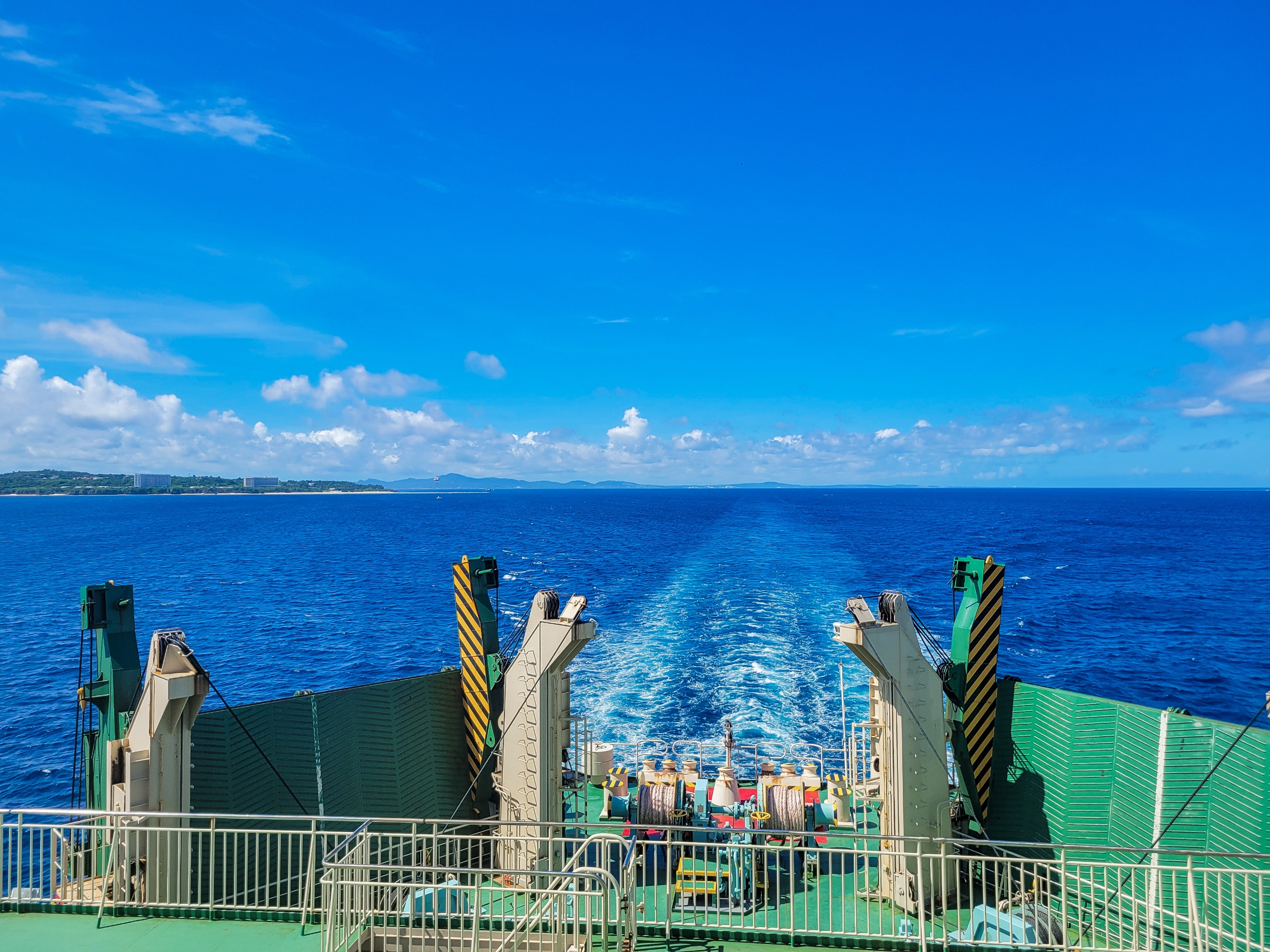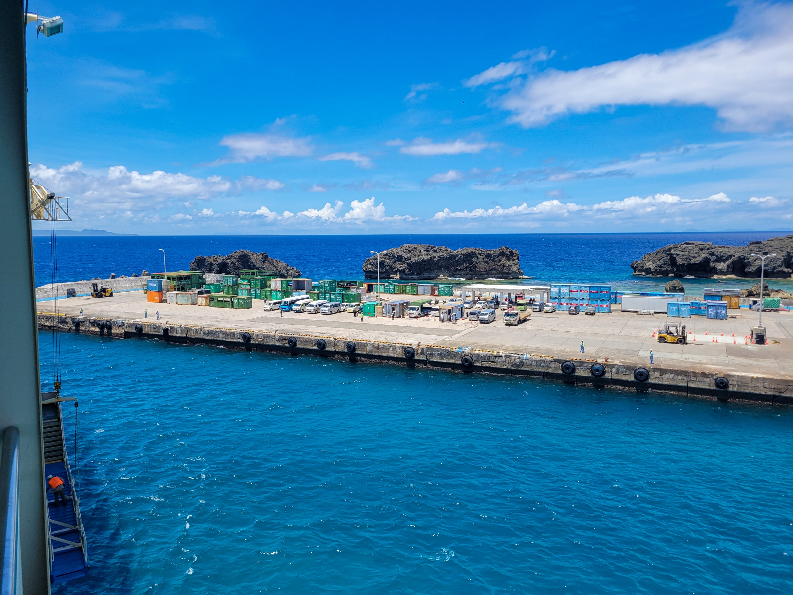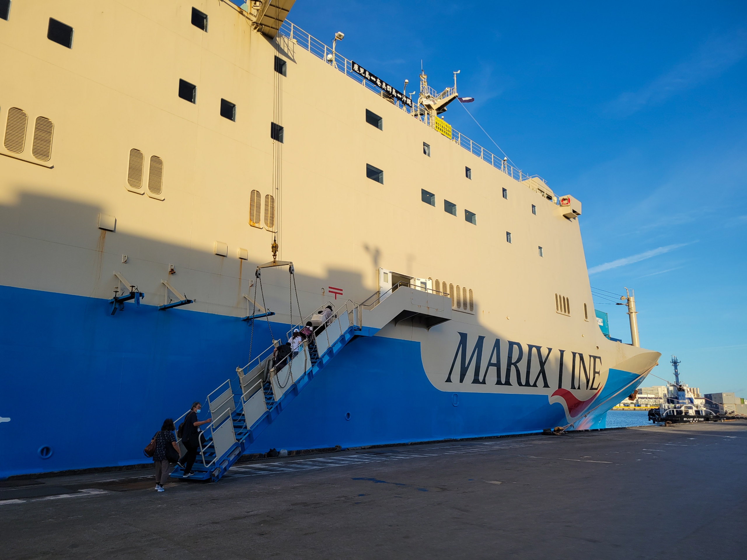 那覇港で見たときに比べるて、大きく見える船体。