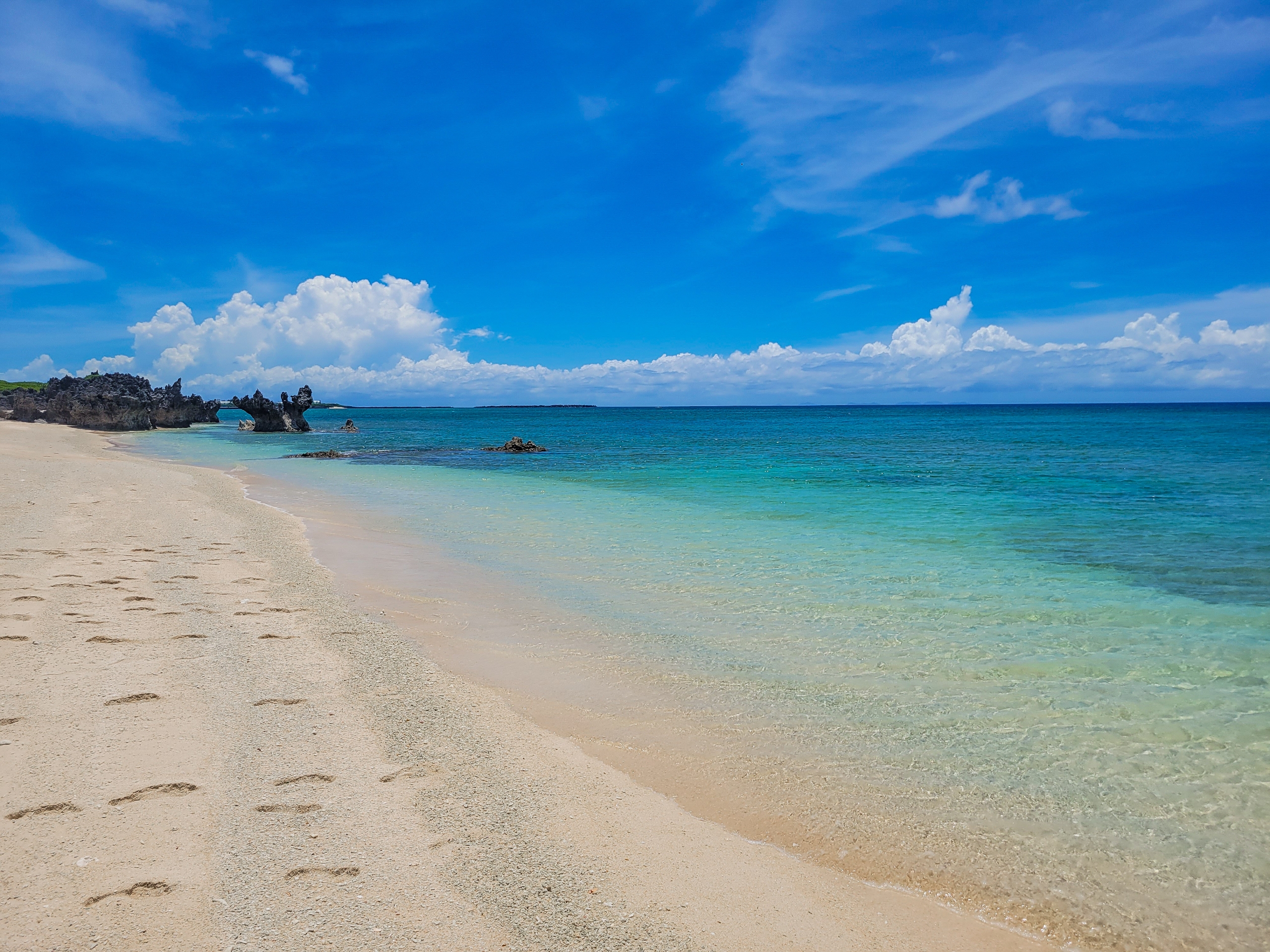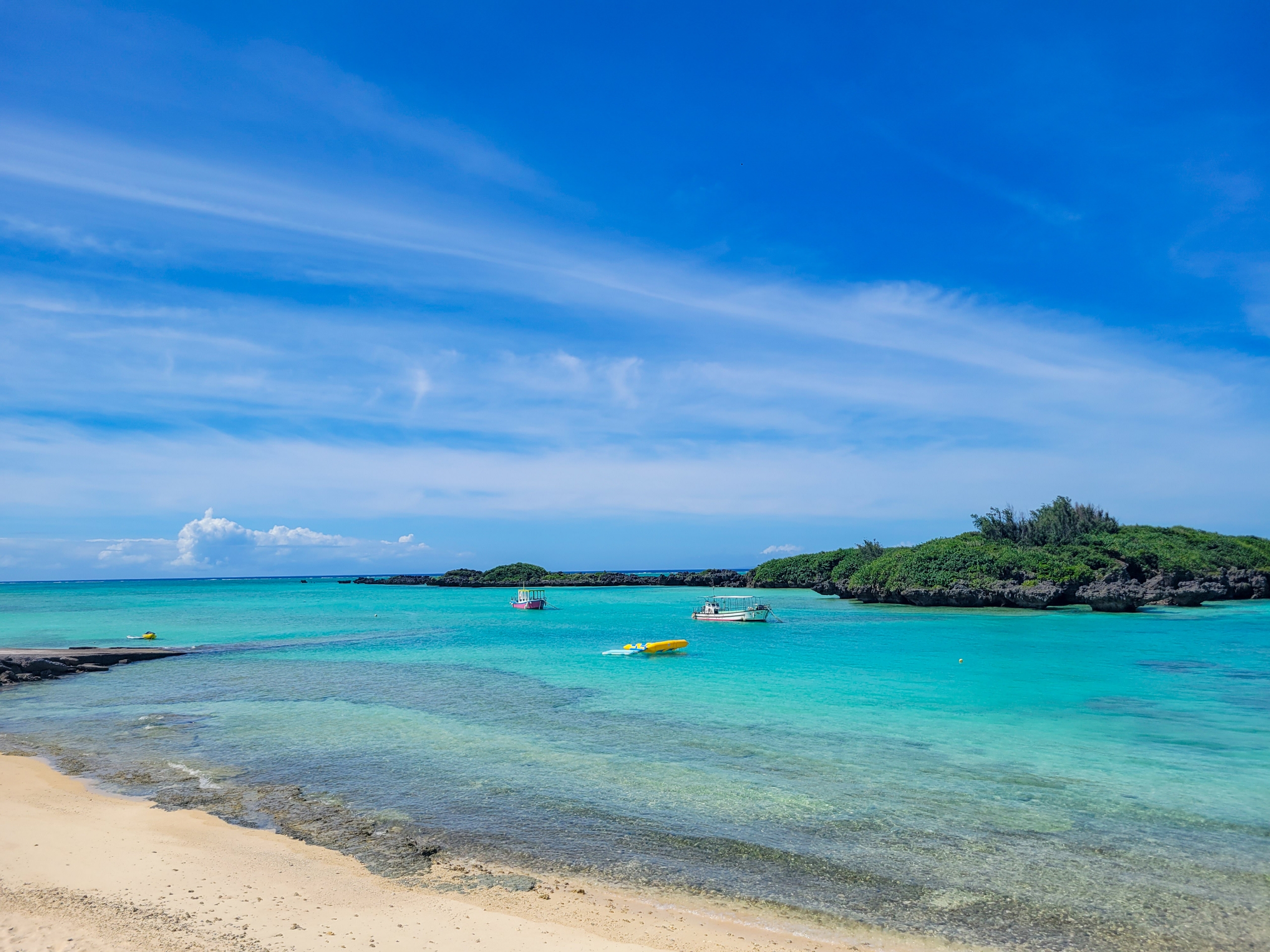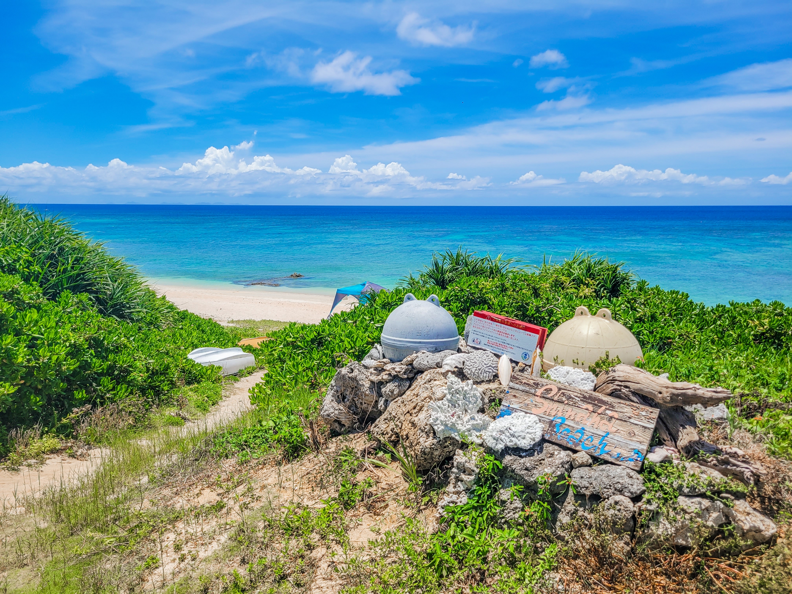 じゅうぶん晴れてはいるけど、薄い雲がかかっていることもあり、昨年のほうがドピーカンだったので、海の色は綺麗だったと思う。