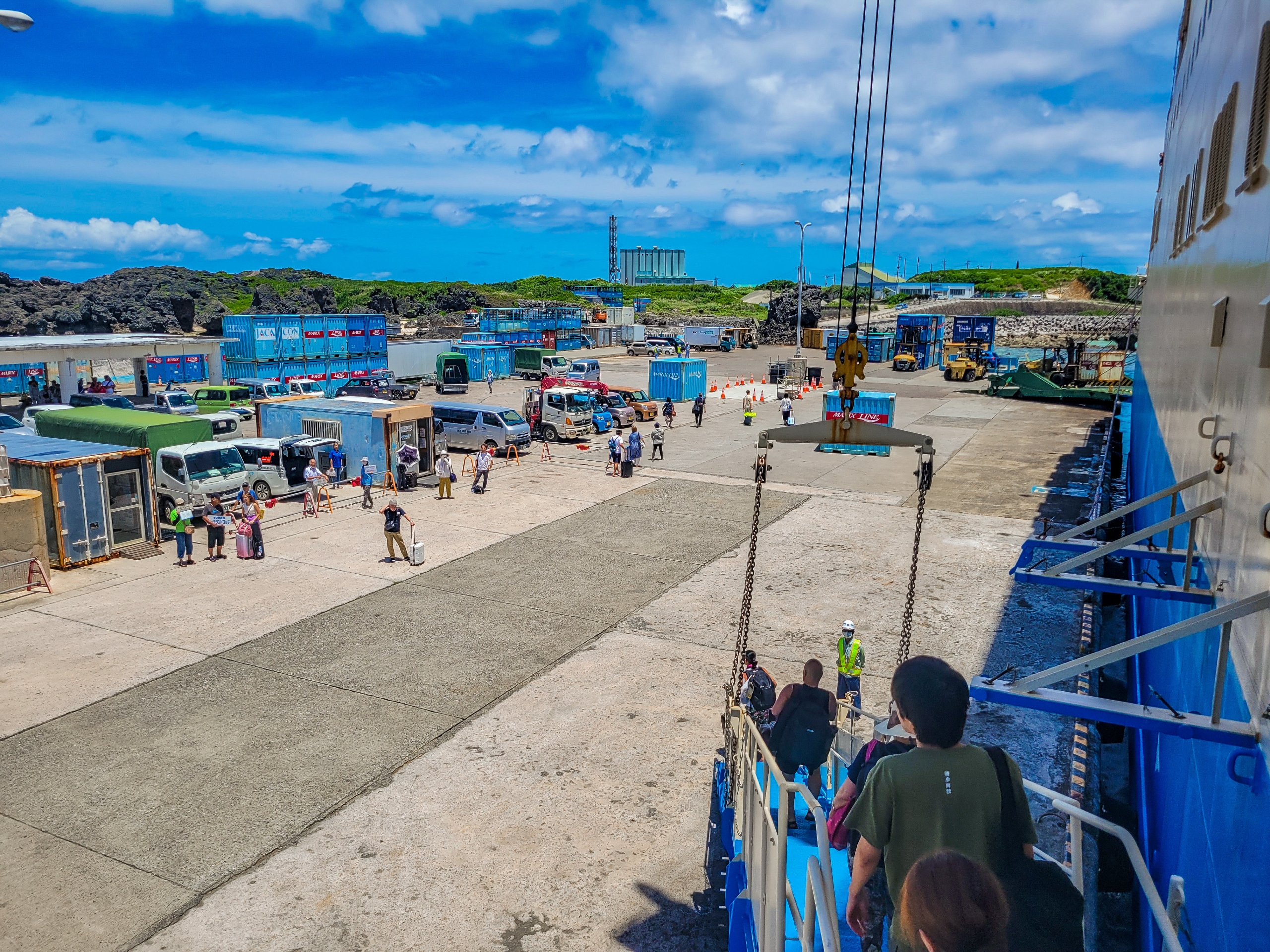 予定時刻の11時50分に与論島に到着。やはり昨年に比べてかなり観光客が多い。昨年は10人ぐらいしか降りなかったと思う。