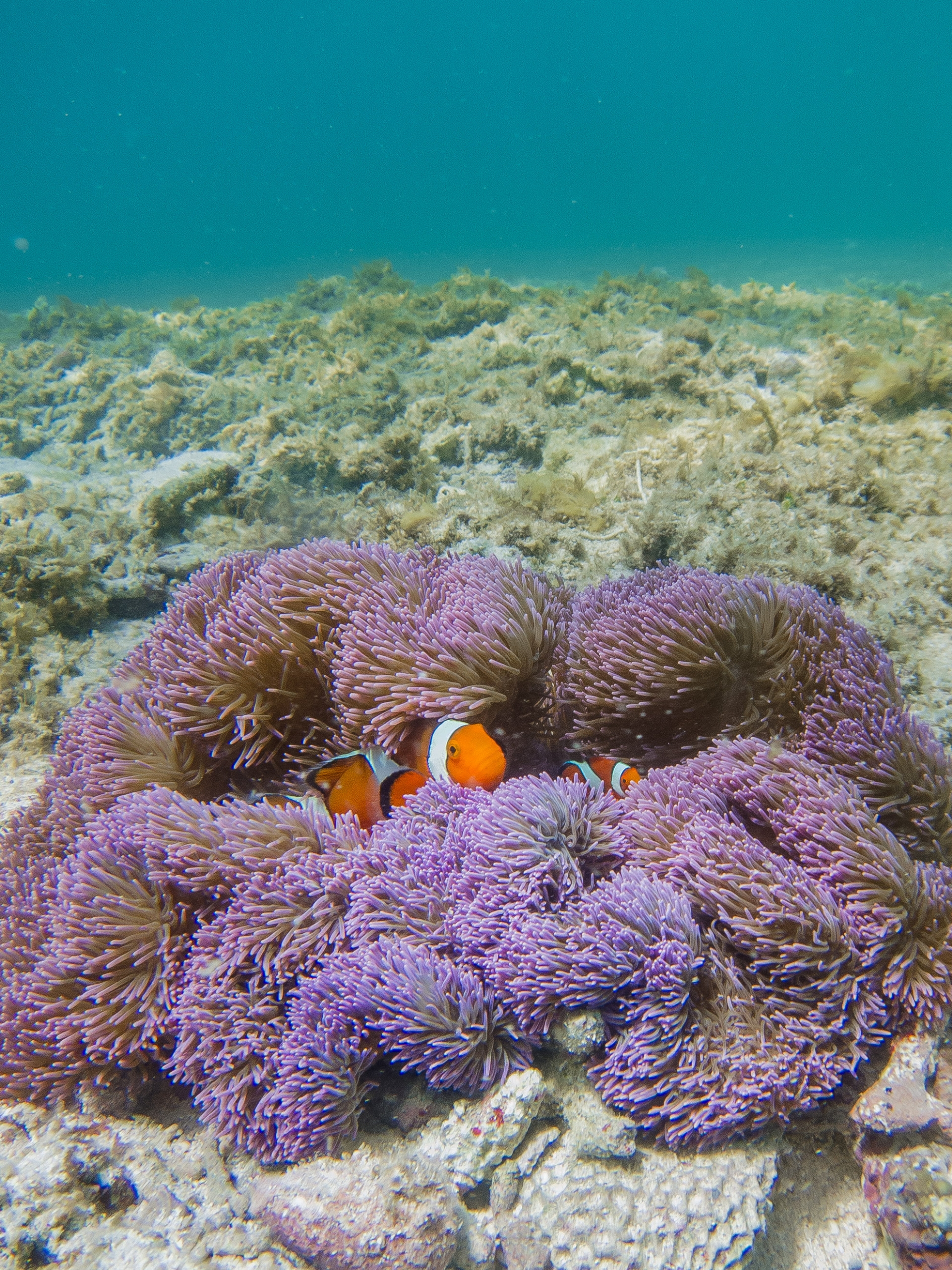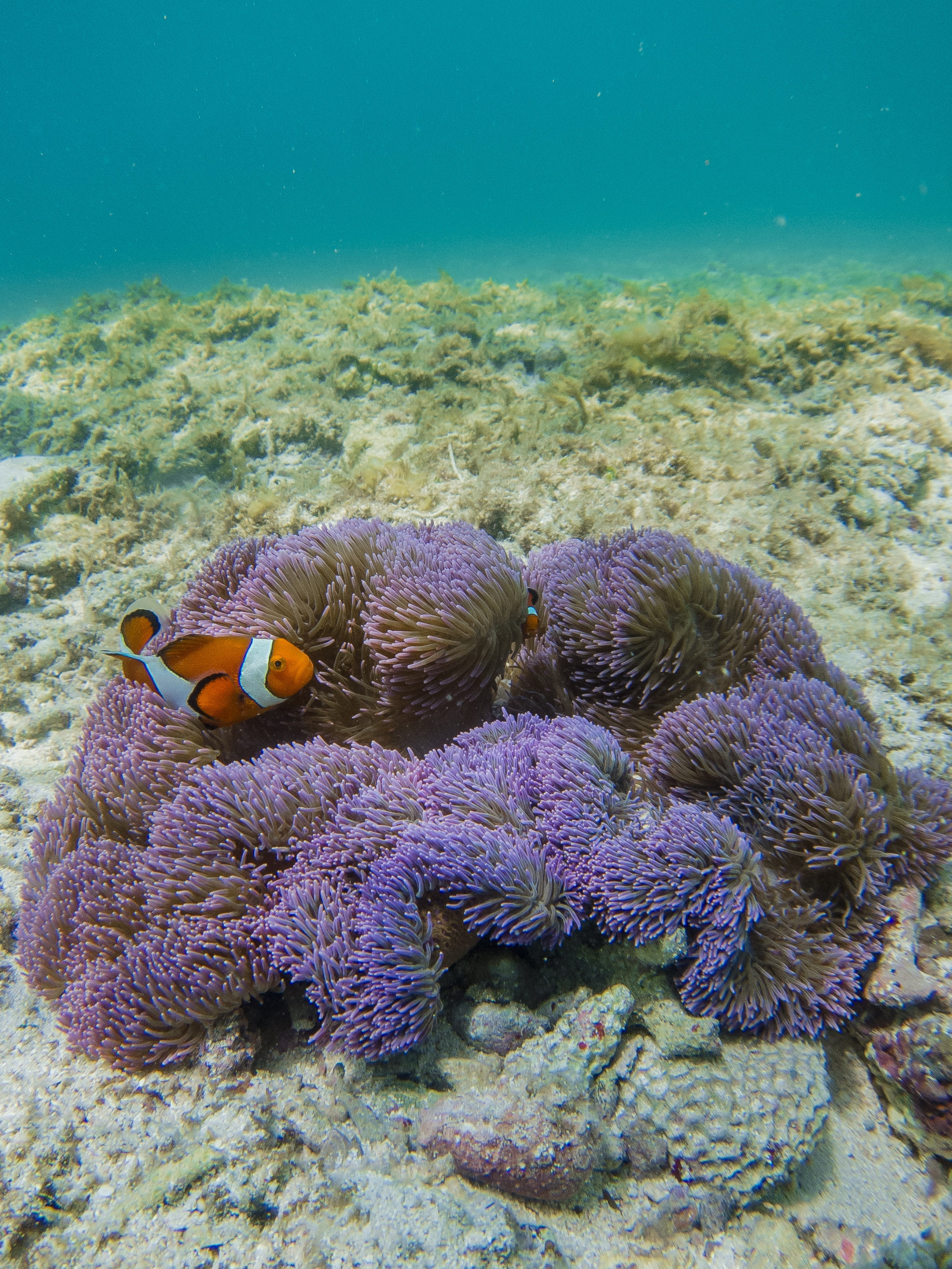 波打ち際から5mほどの浅い場所にいたカクレクマノミ。