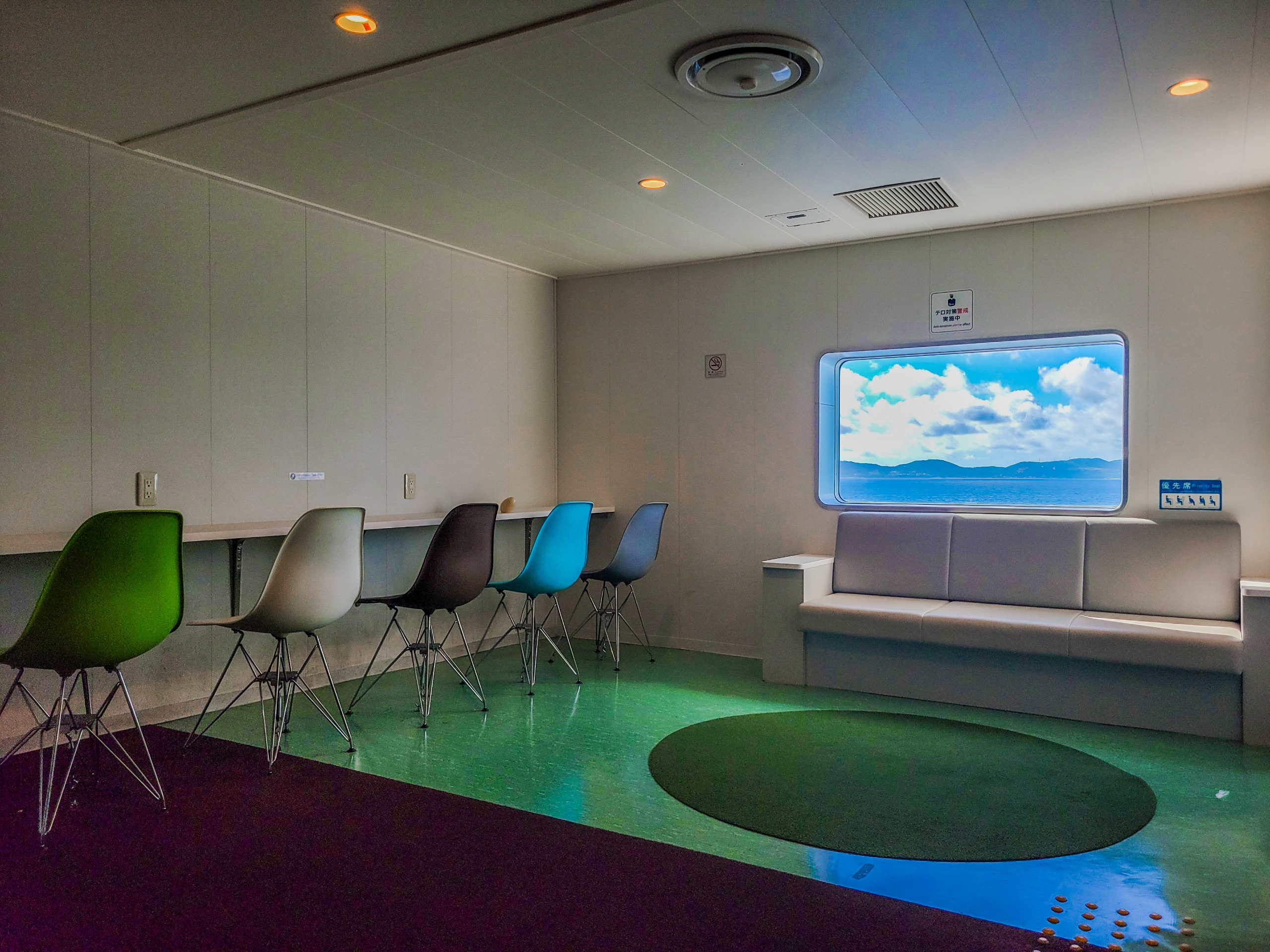 那覇から与論島までは約5時間。大半の乗客は部屋で寝て過ごしているようで、フリースペースになっているレストラン含め、共用スペースはわりと静かだった。