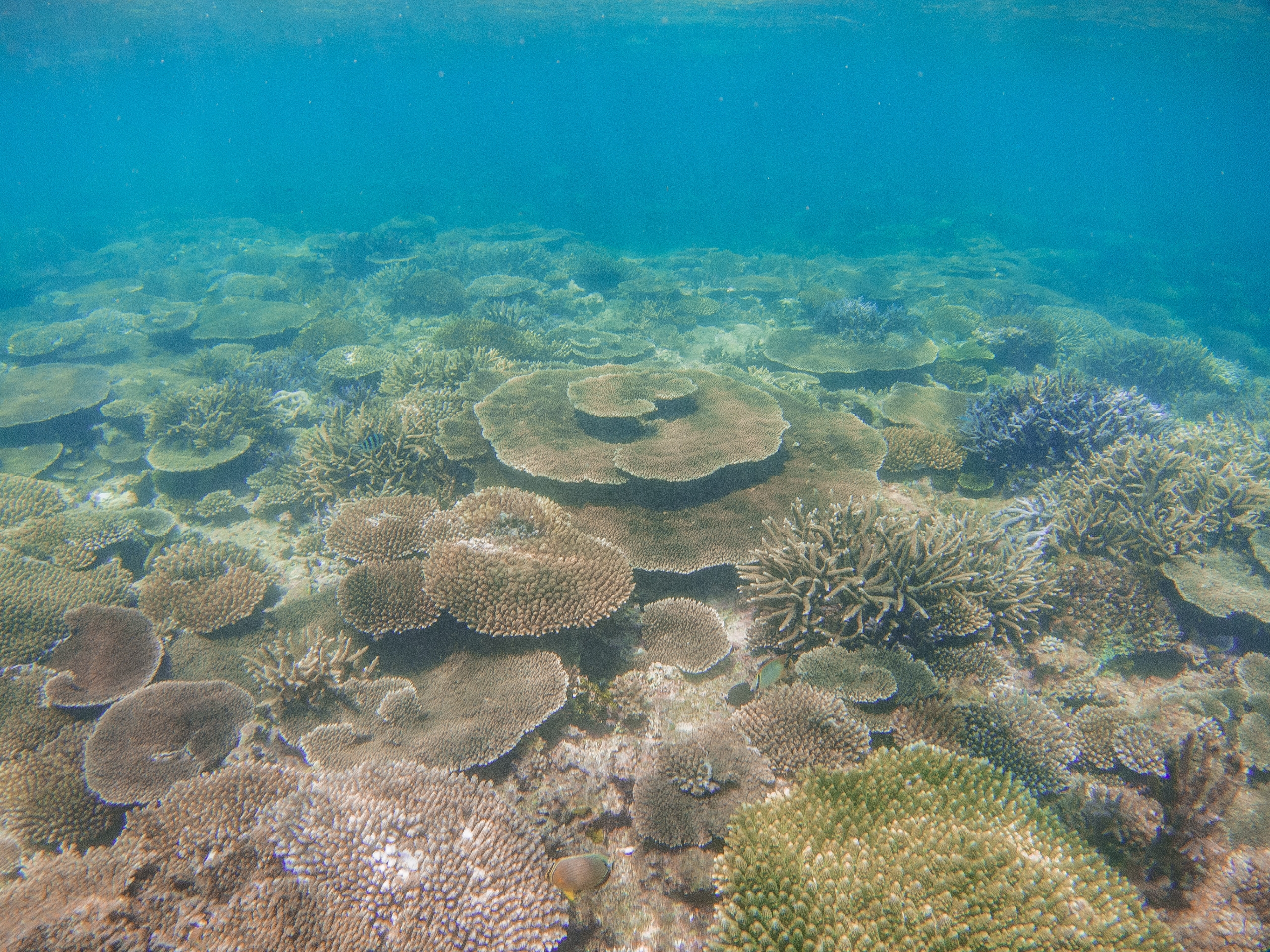 しばらく泳いでいくと珊瑚の森が現れますが、やはり魚は少なめです。