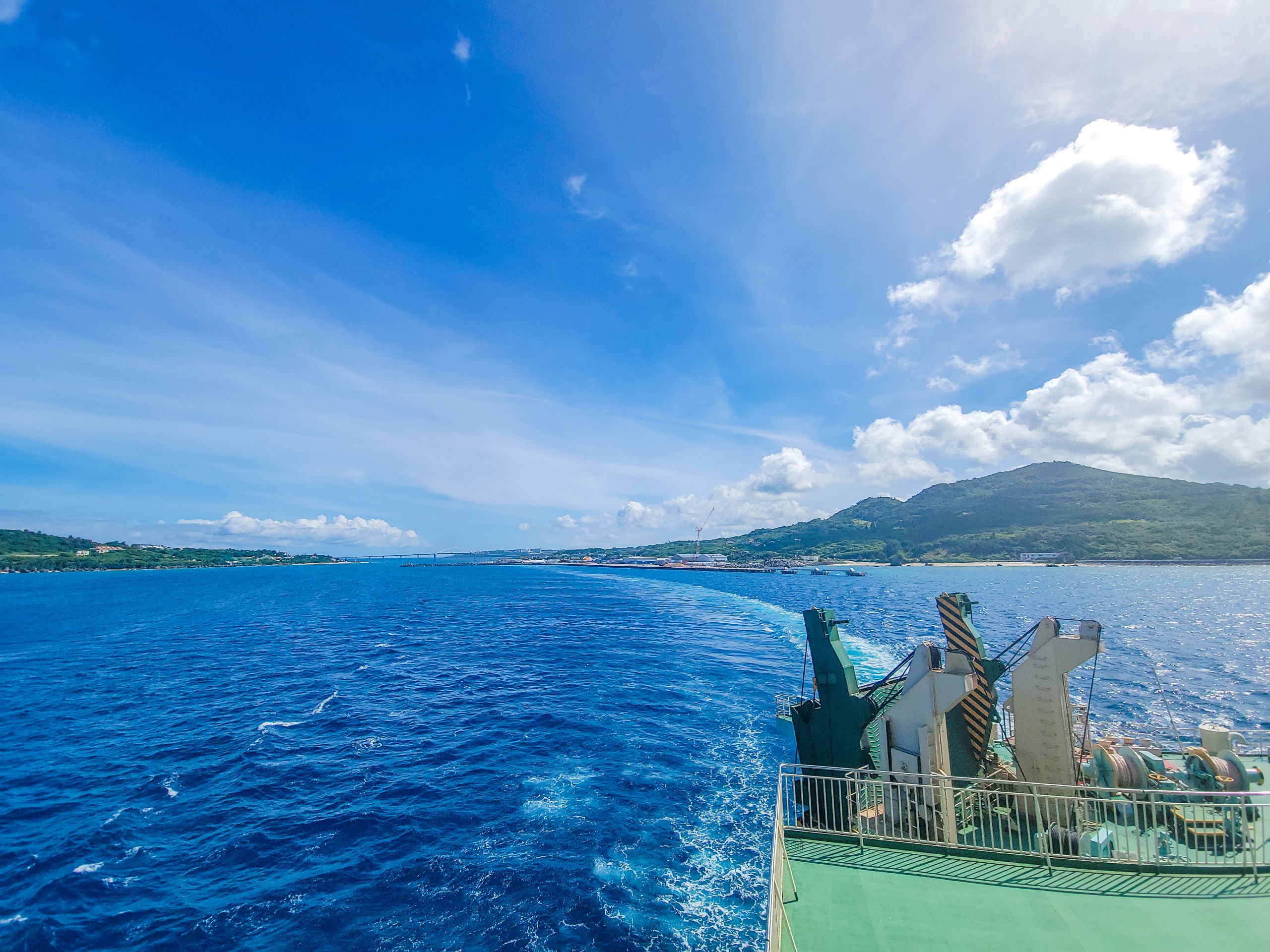 瀬底大橋の下を通れないので、再び瀬底島を大きく回り込んで北上する。小さめの伊江島フェリーは瀬底大橋の下を通っていける。
