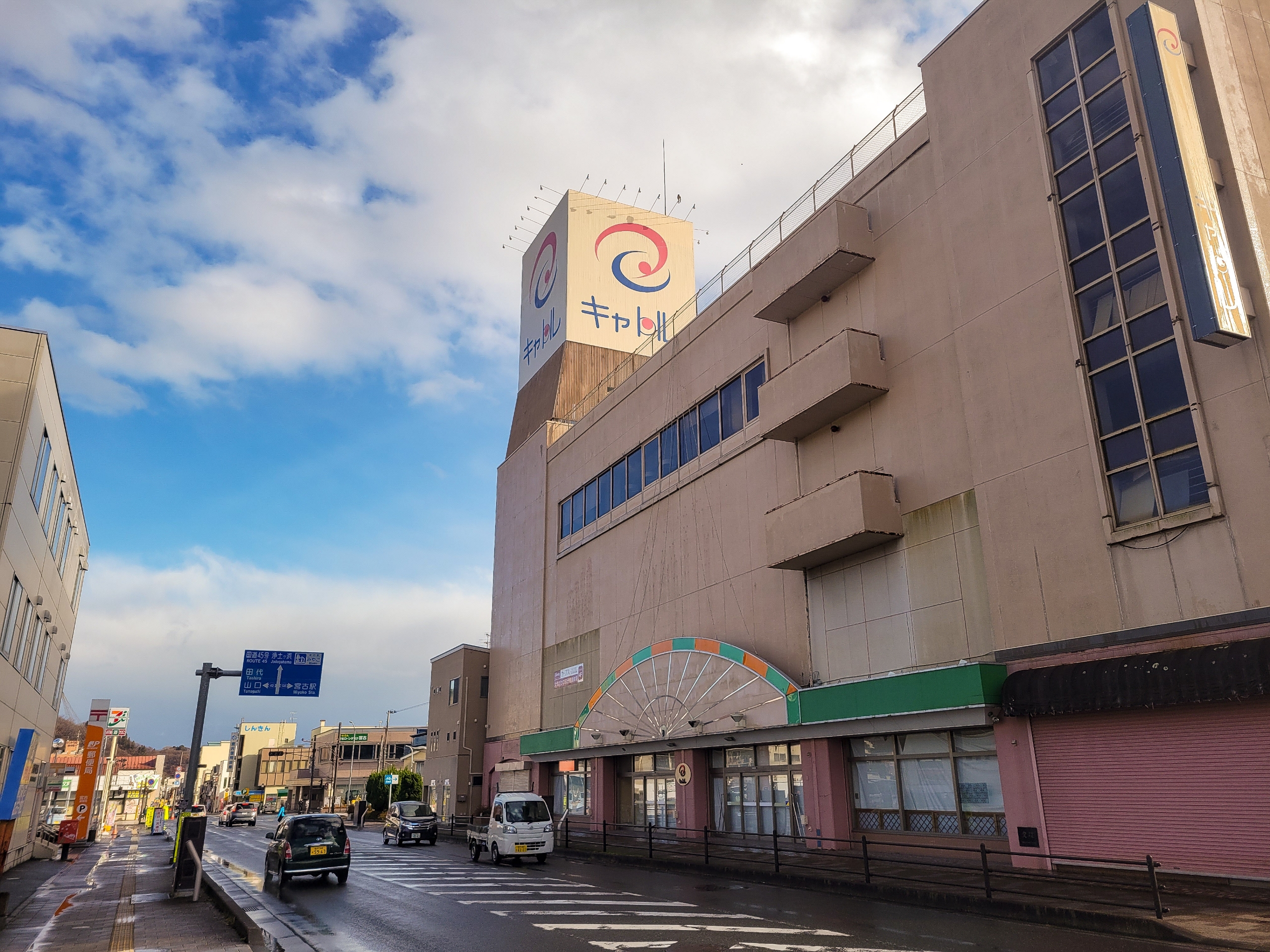 駅前にあったキャトル宮古というデパートは閉店していました。2022年12月31日に閉店したそうです。1980年に「宮古ファミリーデパート玉木屋」、「サティ宮古」と名前を変えて営業を続けてきて、42年の歴史に終止符をうったようです。地方へ行くと駅前が好立地というわけではないんですよね。