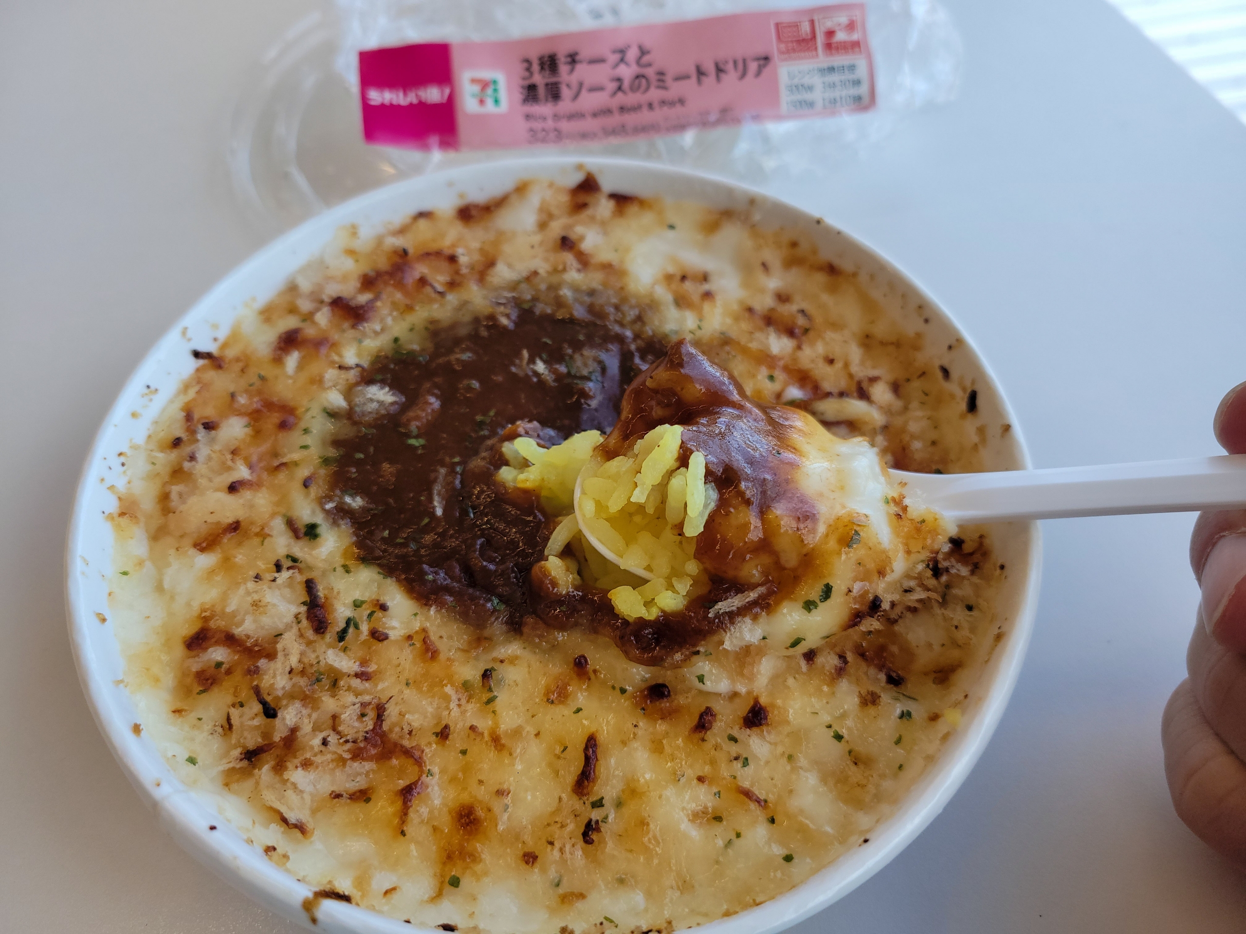 濃厚なミートソースと口溶けなめらかなホワイトソースを組み合わせたドリアで美味しかったです。節約した分で夜は豪華に食べようと思います。