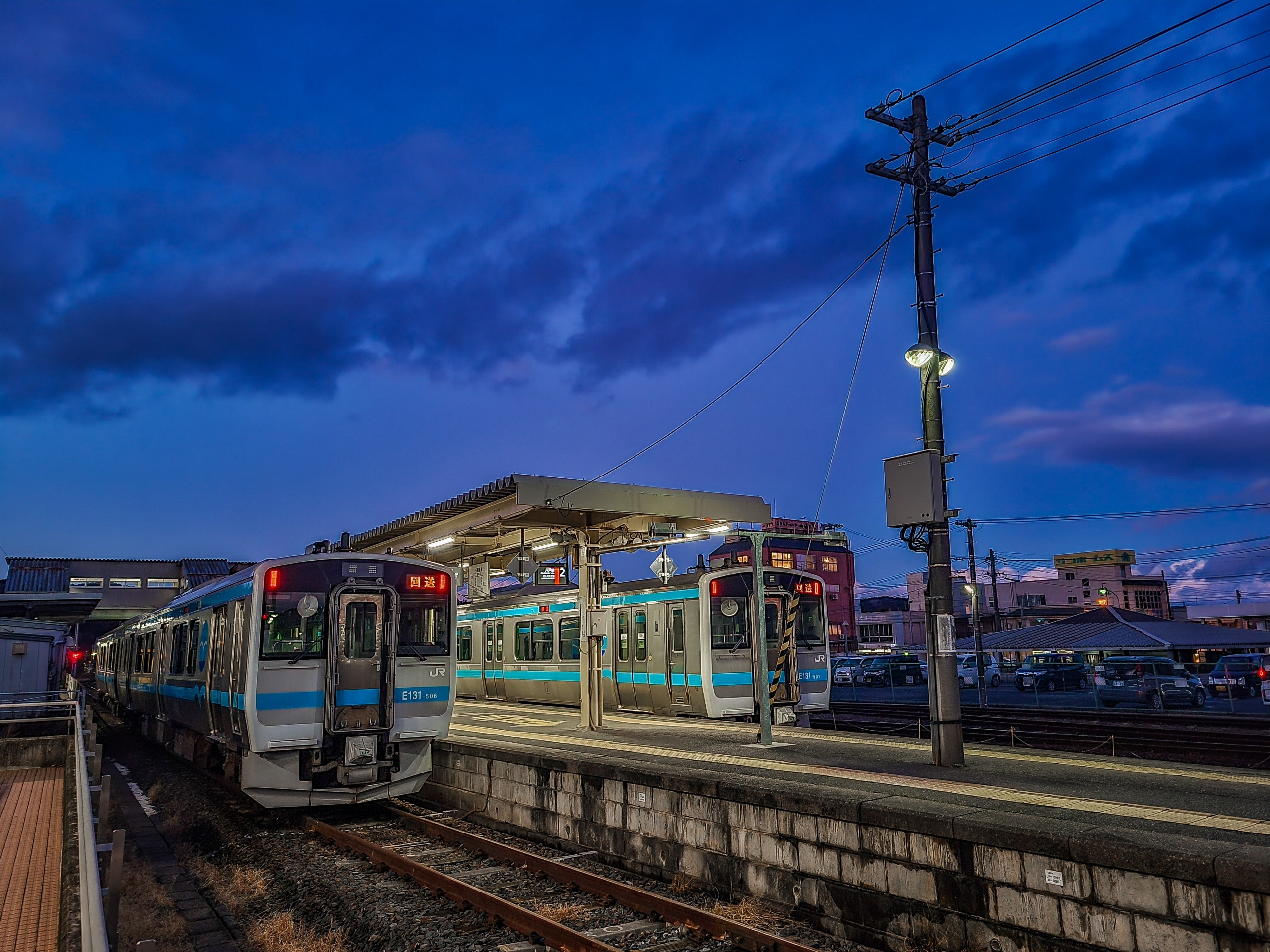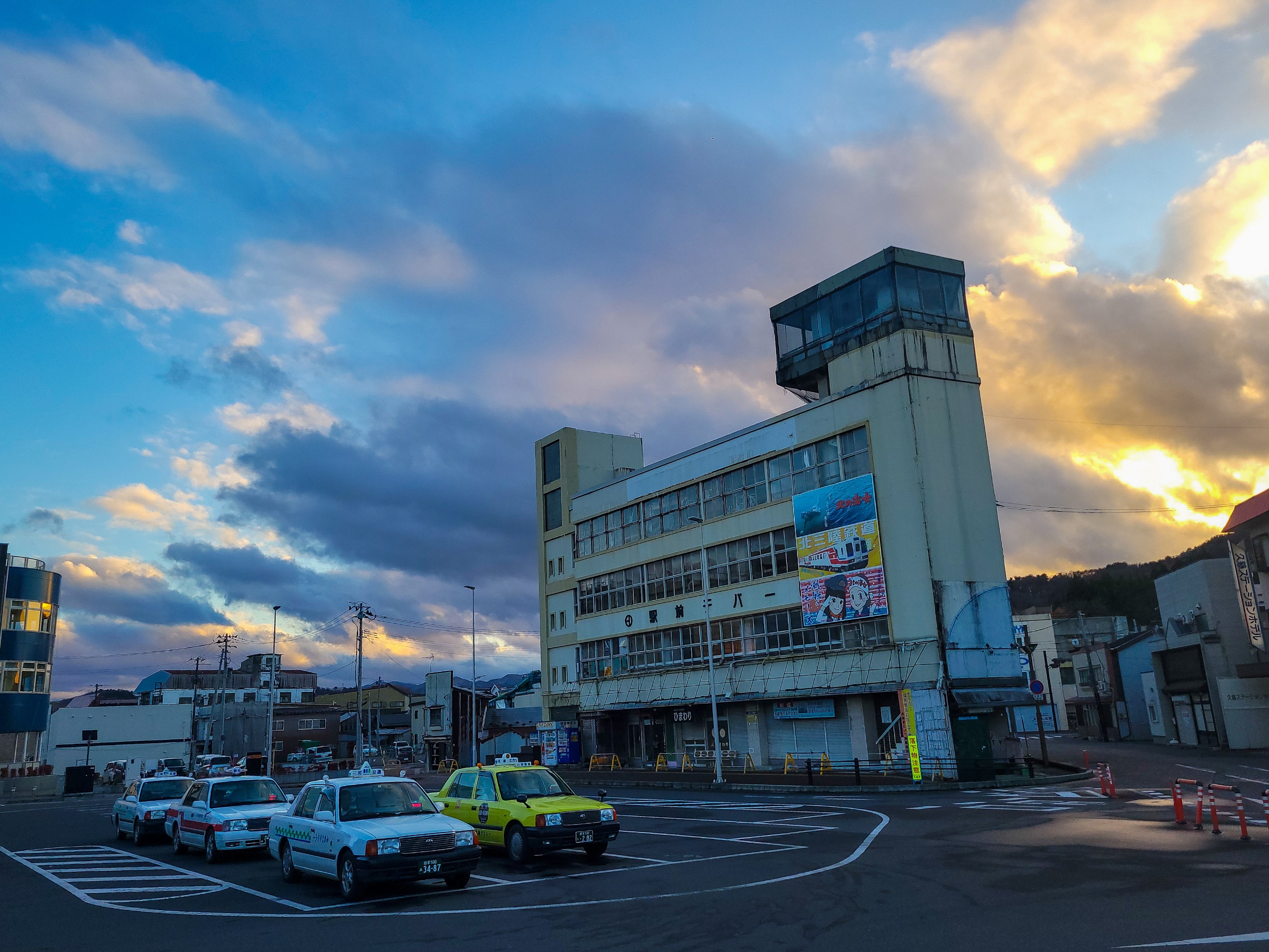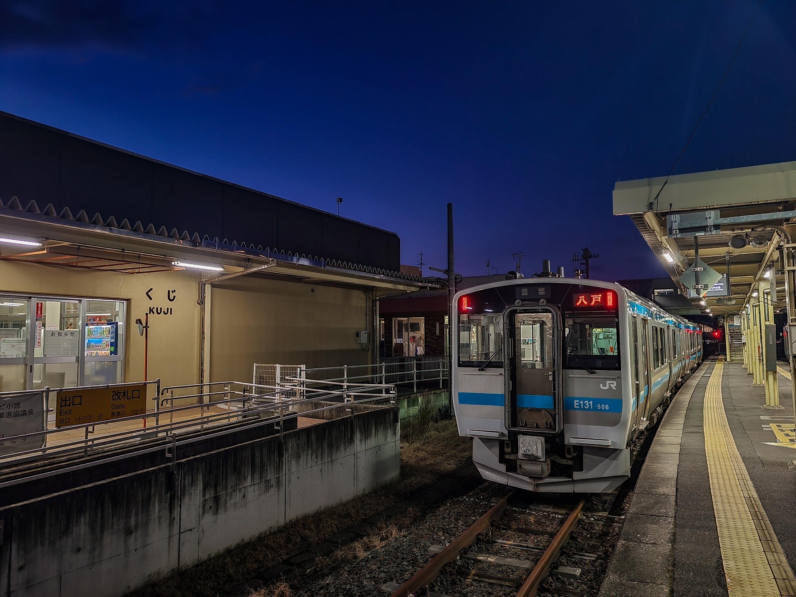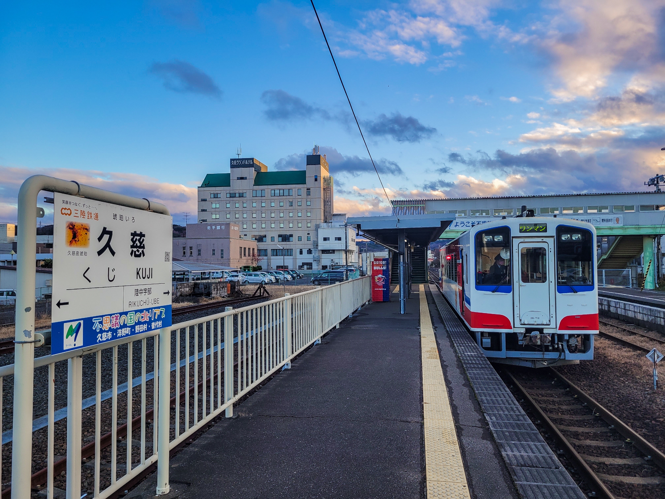 久慈駅に到着。まだ15:31なのに日の入りが近い。