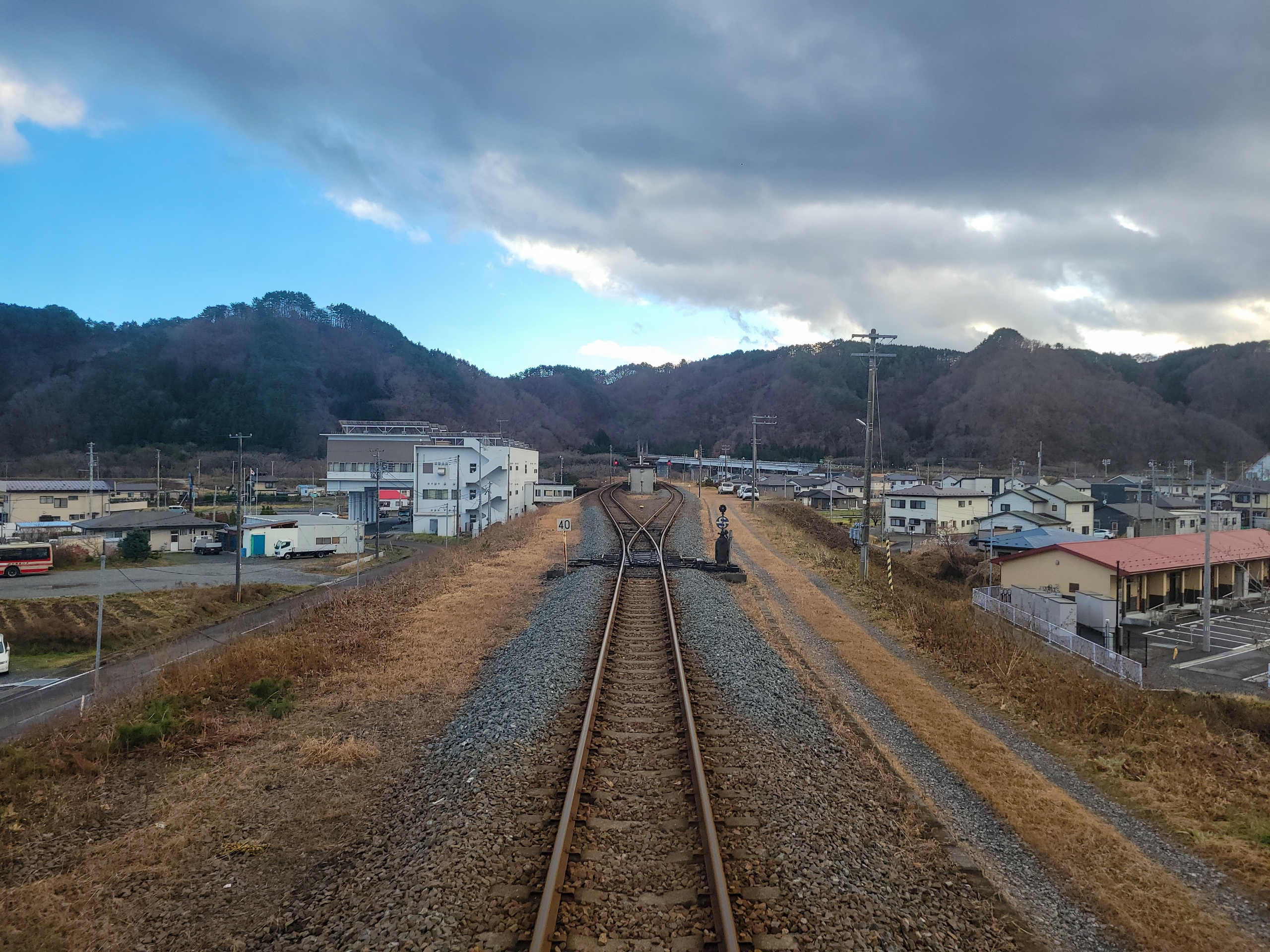 宮古駅を出発してトンネルを通ってすぐにある駅。もうそのままの名前や…。路線バスとかだとよくあるけど、まさか鉄道であるとは。団地に住んでいる方は駅前で便利そうですが、降りる乗客はいませんでした。
