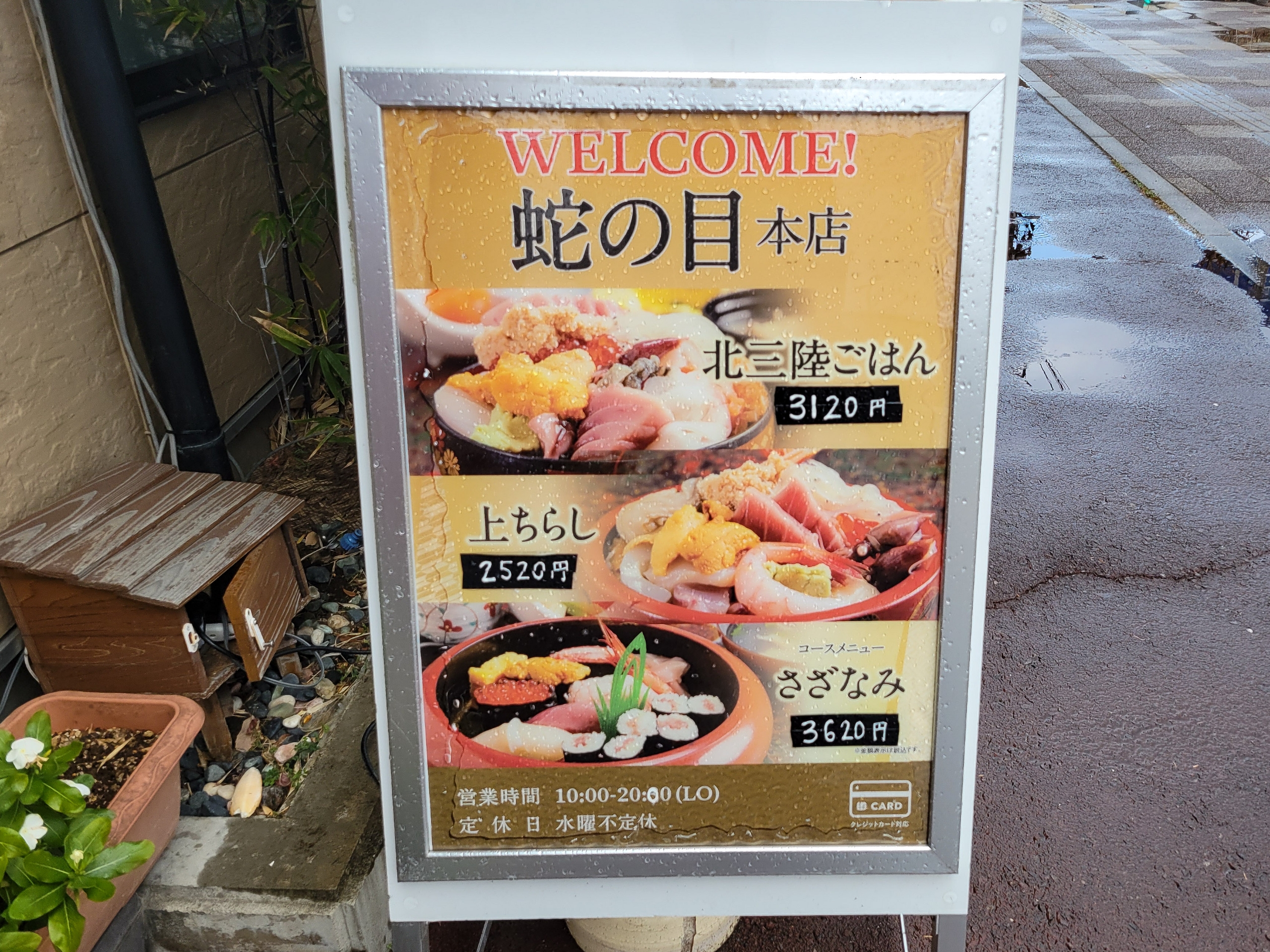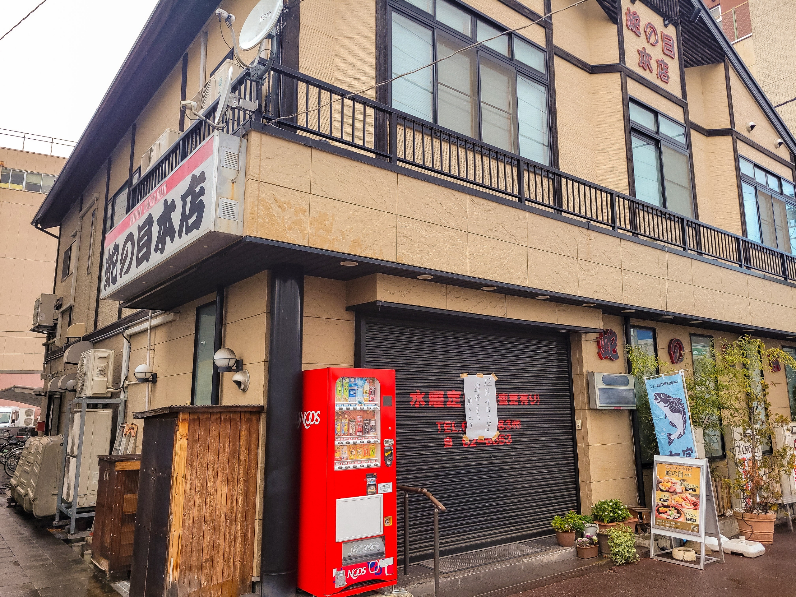 駅前の蛇の目寿司。お昼ご飯を食べようと思っていた 蛇の目寿司 は水曜日が定休日でした。急遽こっち方面に来たので何も調べていなかった。