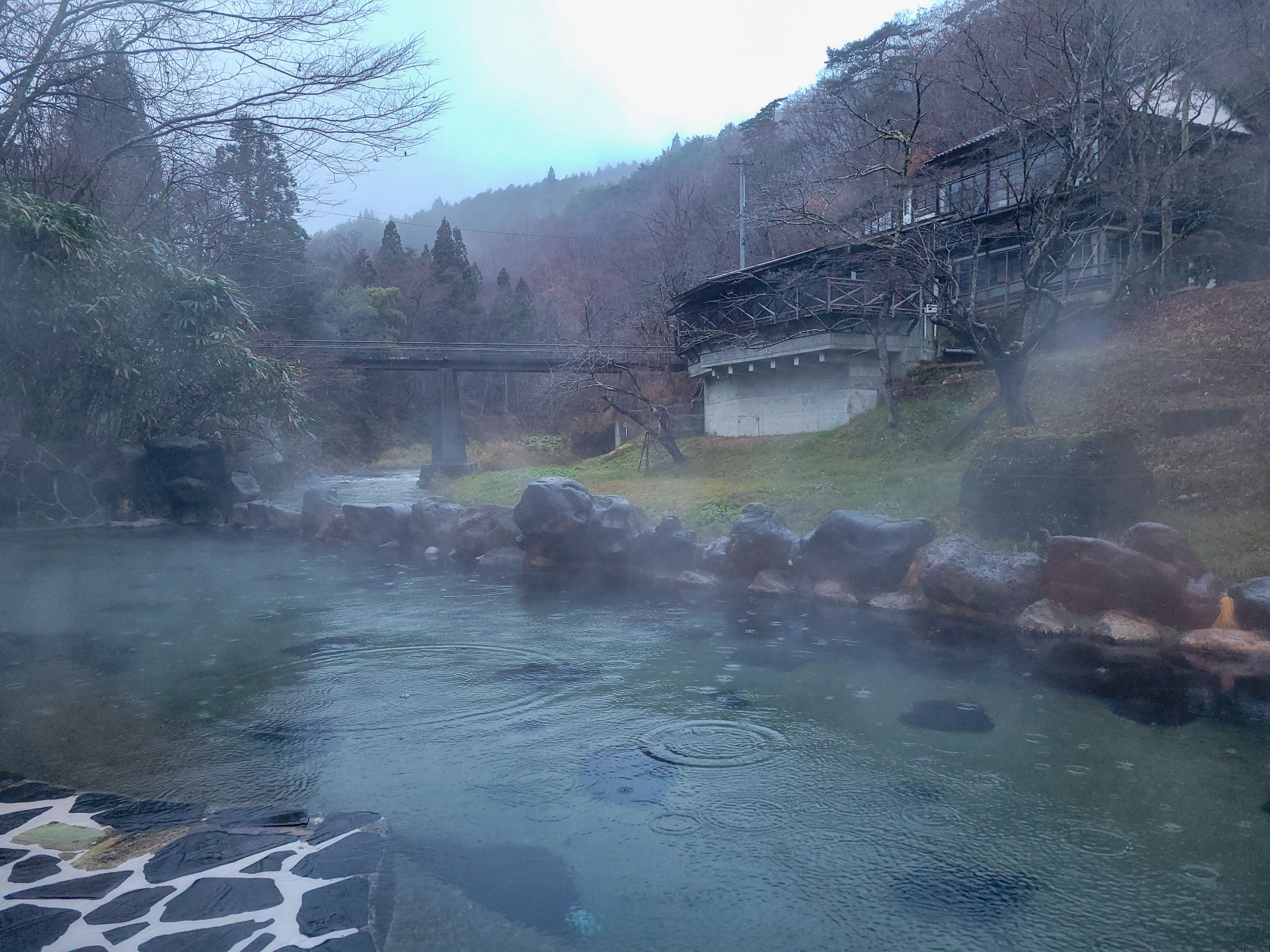 朝から雨が降っていたので、混浴露天風呂は無人状態でした。