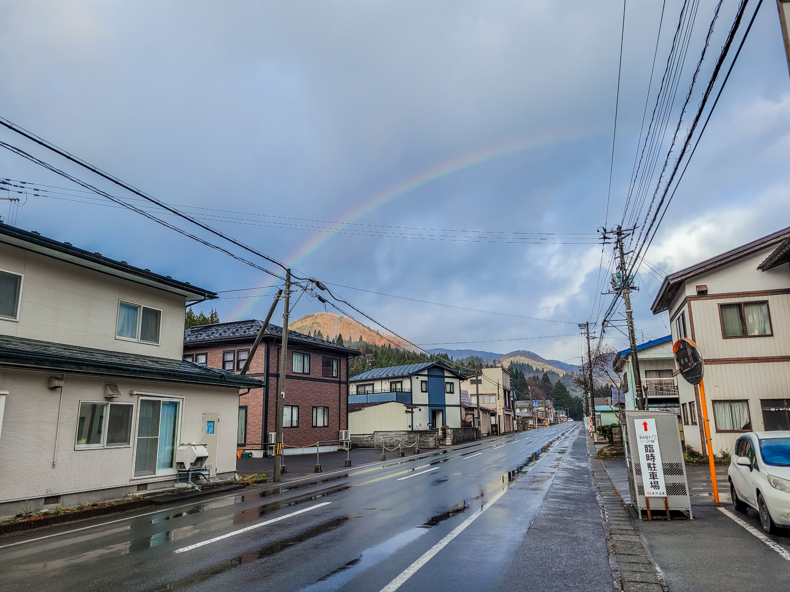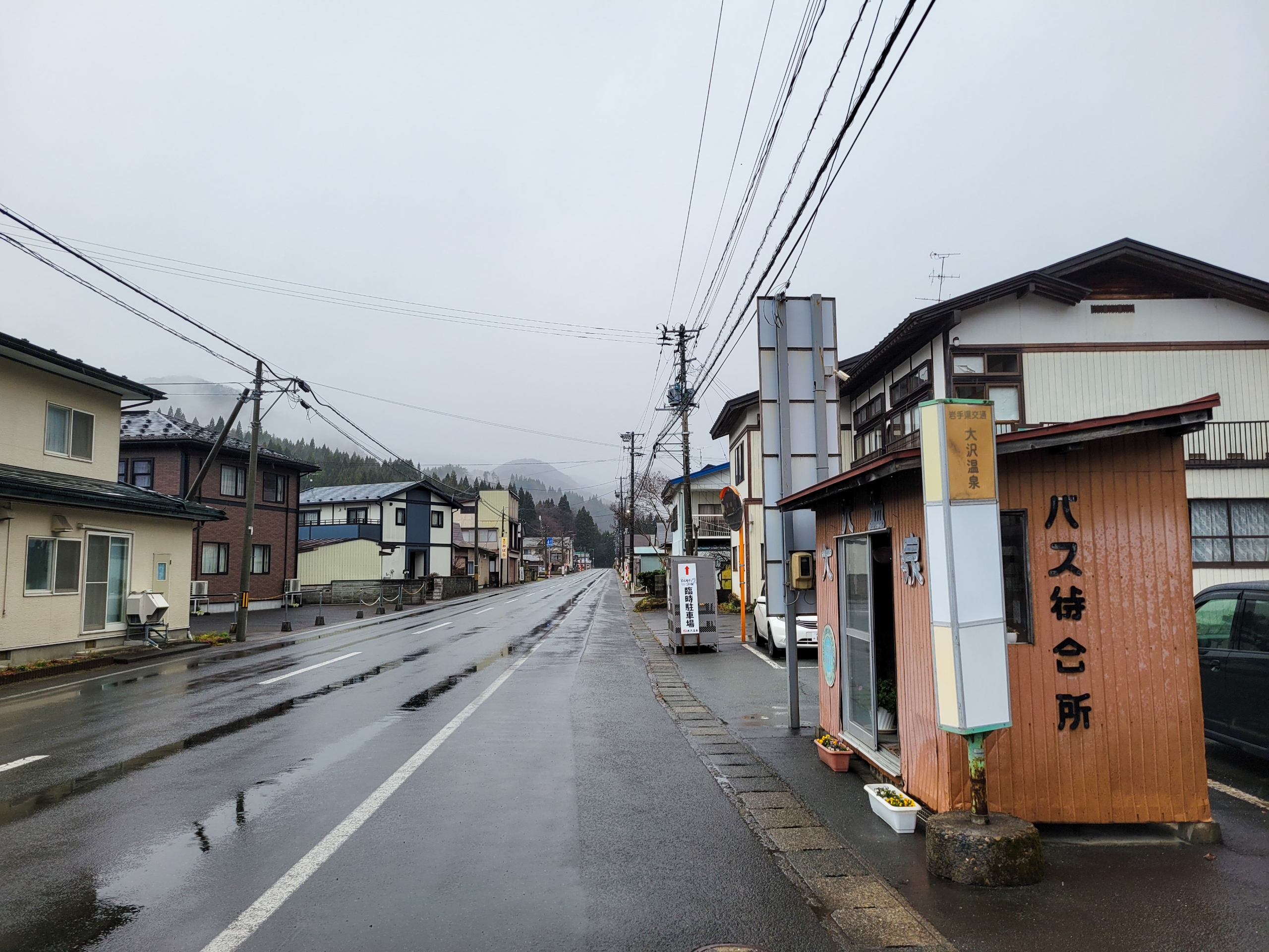 路線バスの停留所には待合室があるので雨宿りをしていると、虹がでてきました。山の天気は変わりやすい。自分以外にもふたりの乗客がいましたが、ふたりとも大沢温泉の湯治屋に宿泊客。それぞれひとり旅でした。比較的安価に宿泊できるので、ひとり旅に人気があるようです。