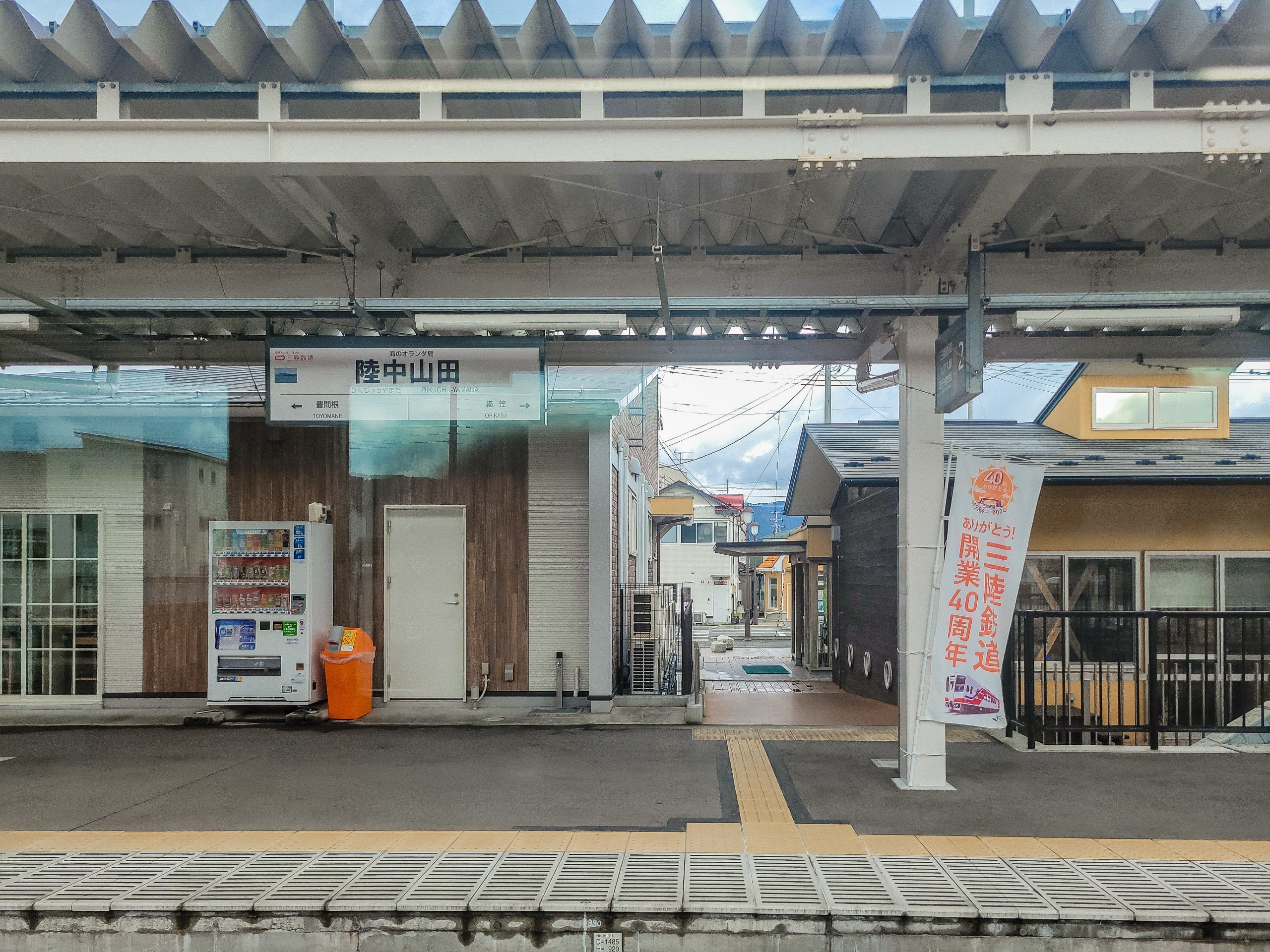 陸中山田駅はJR山田線の名称由来となった駅ですが、現在のJR山田線は盛岡と宮古間を通っており、山田町を通っていないのに山田線のままですね。釜石宮古間では一番大きな駅で、乗客の3割ほどが下車してきました。前回訪れたときにみた、山田町の国道から見えた雄大な山田湾の海が記憶に残っていますが、現在は巨大な防潮堤ができて海を見ることができないようです。