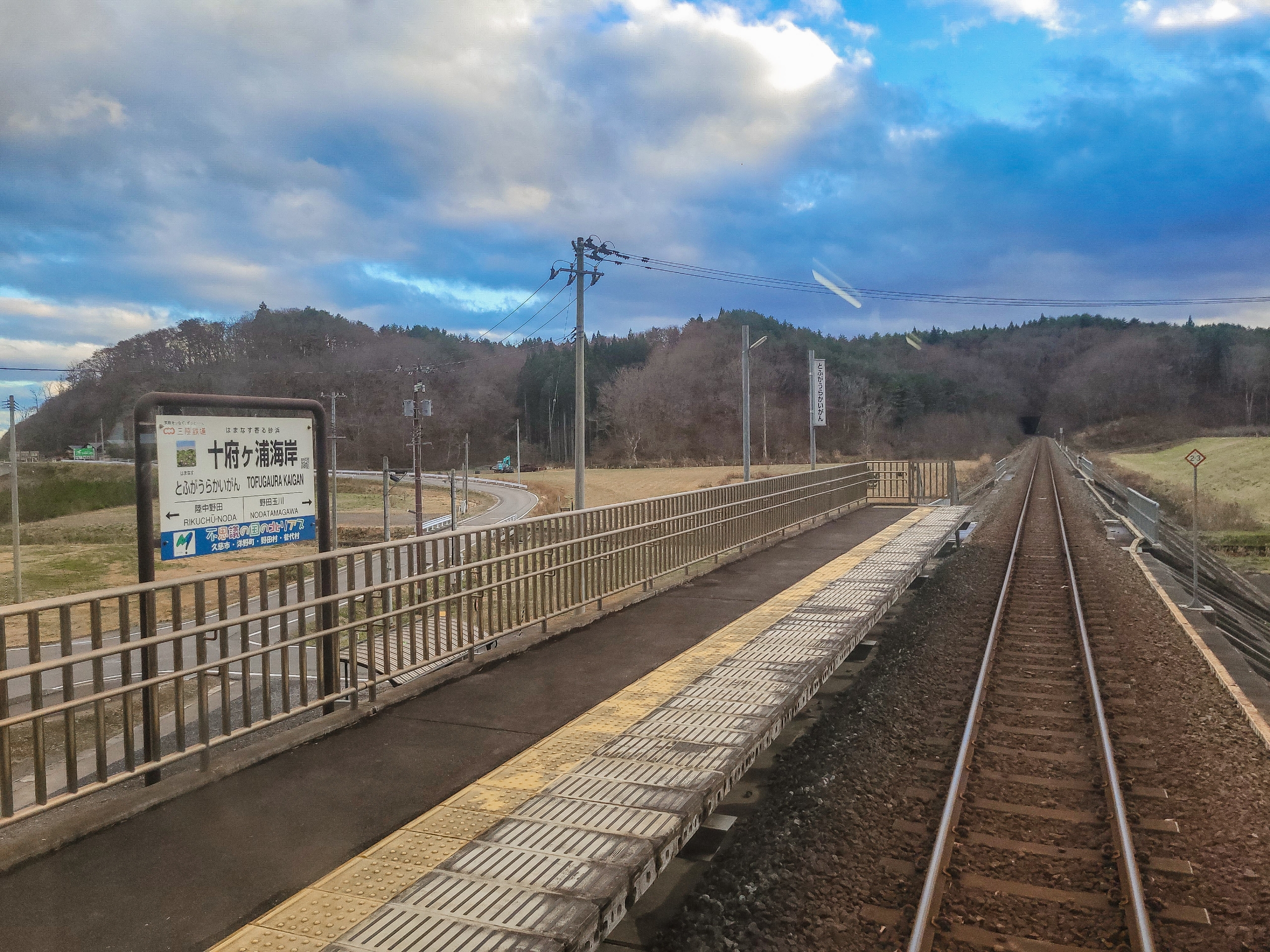 十府ヶ浦海岸(とふがうらかいがん)駅。海岸駅なのに海が見えないのは観光客にとっては悲しい…。