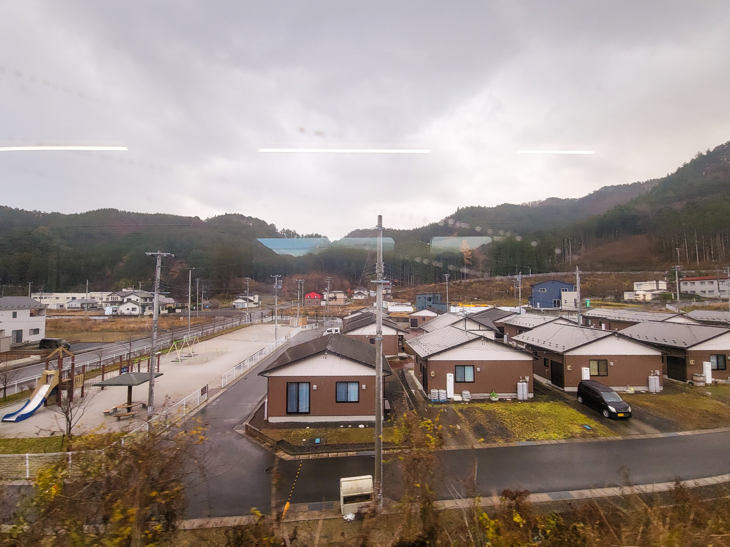 釜石市は日本最大の鉄鉱山である釜石鉱山を中心に発展した「鉄の町」として知られています。鉱山や製鉄所で働く労働者のために多くの団地が建設され、車窓からも多くの団地を見ることができました。