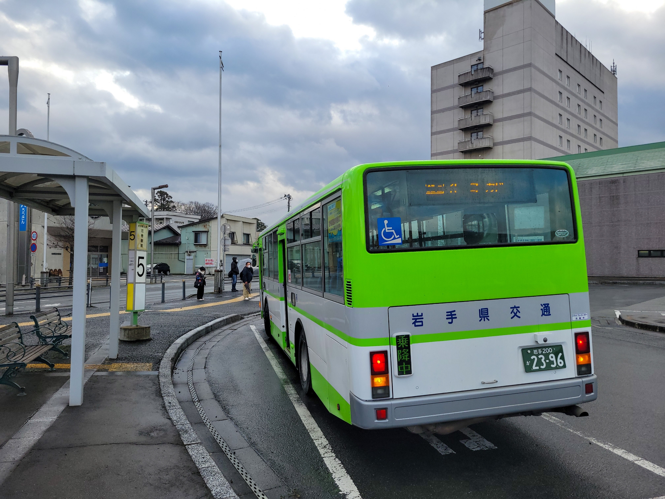 今度は小雨。無料の送迎バスがあるのですが、出発が遅いので路線バスで花巻駅まで向かいます。路線バスだと運賃650円もかかるのですが、この時期は日暮れが早いので、太陽が上っている時間は大事にしなければいけません。