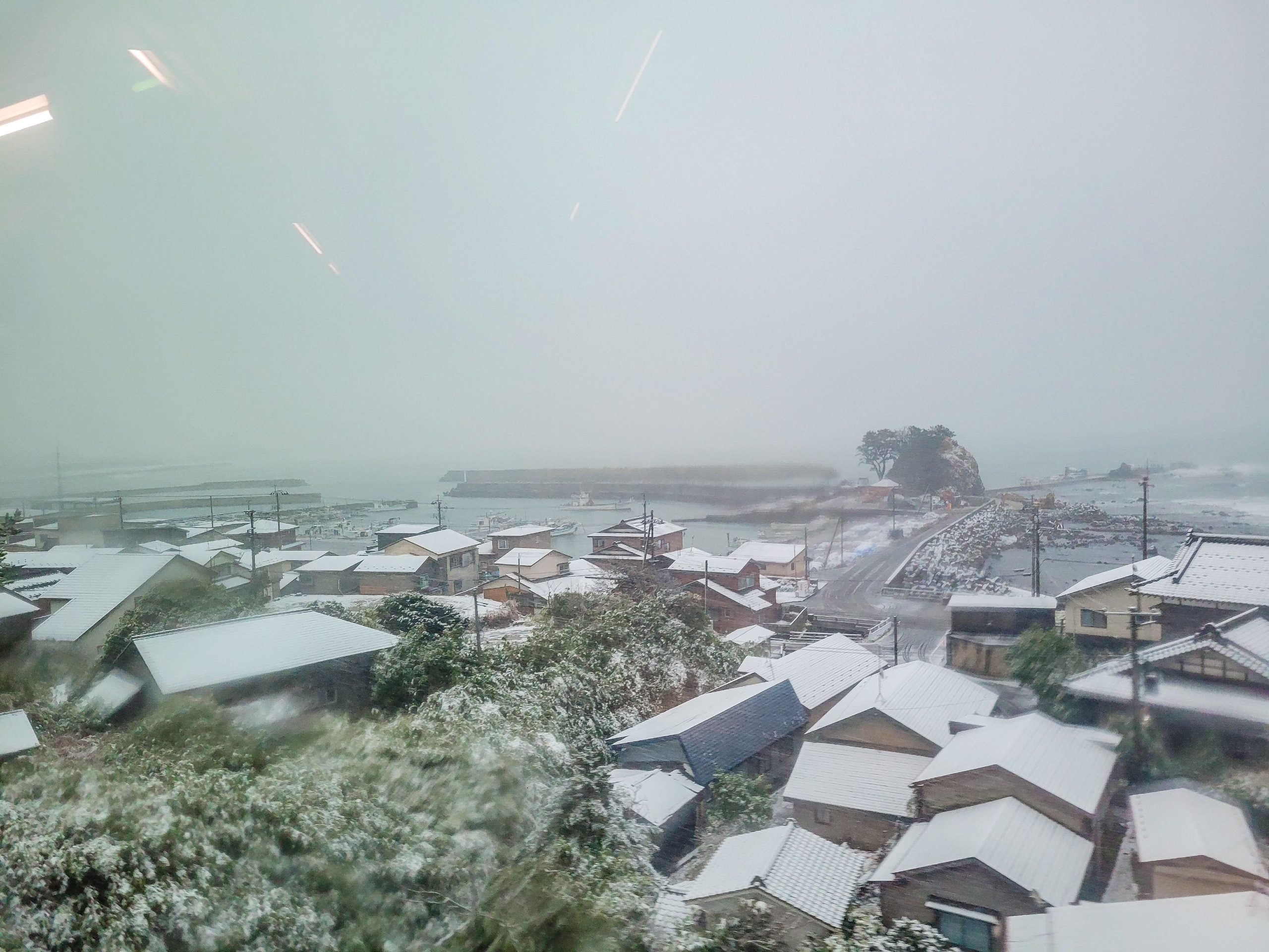 窓の外を見ると、雪がちらつき始めた。予報よりも天候の悪化が早い。今日の帰りの行程はすべて列車だったら良かったのだが…。車の運転、少し心配になってきた。