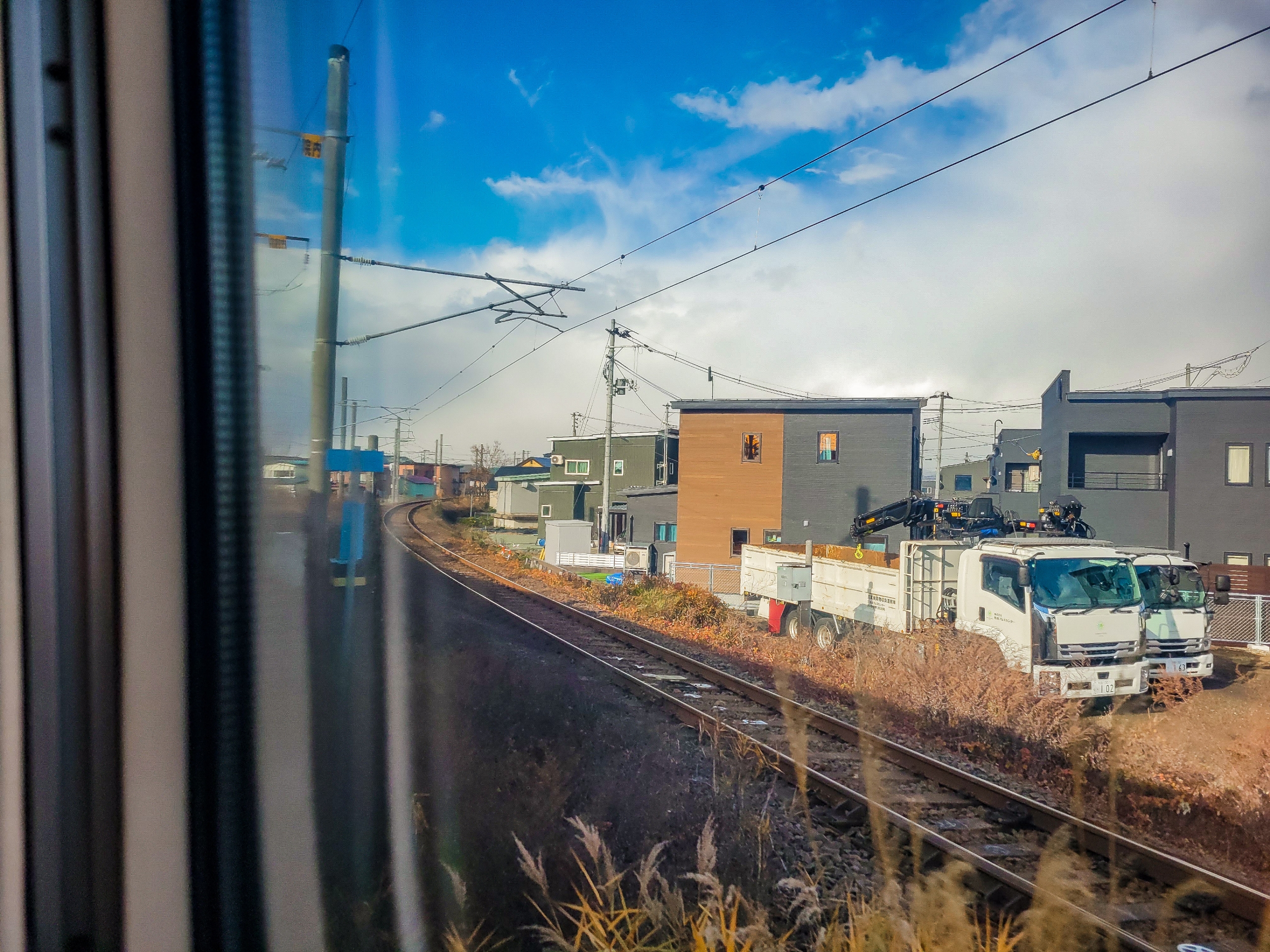 強い風が雲を吹き飛ばしてくれているおかげか、青空が広がってきた。さっきまでの天気が嘘のようだ。ただ、今後のこともあるので、あまり車窓の風景を楽しんでいる余裕はない。