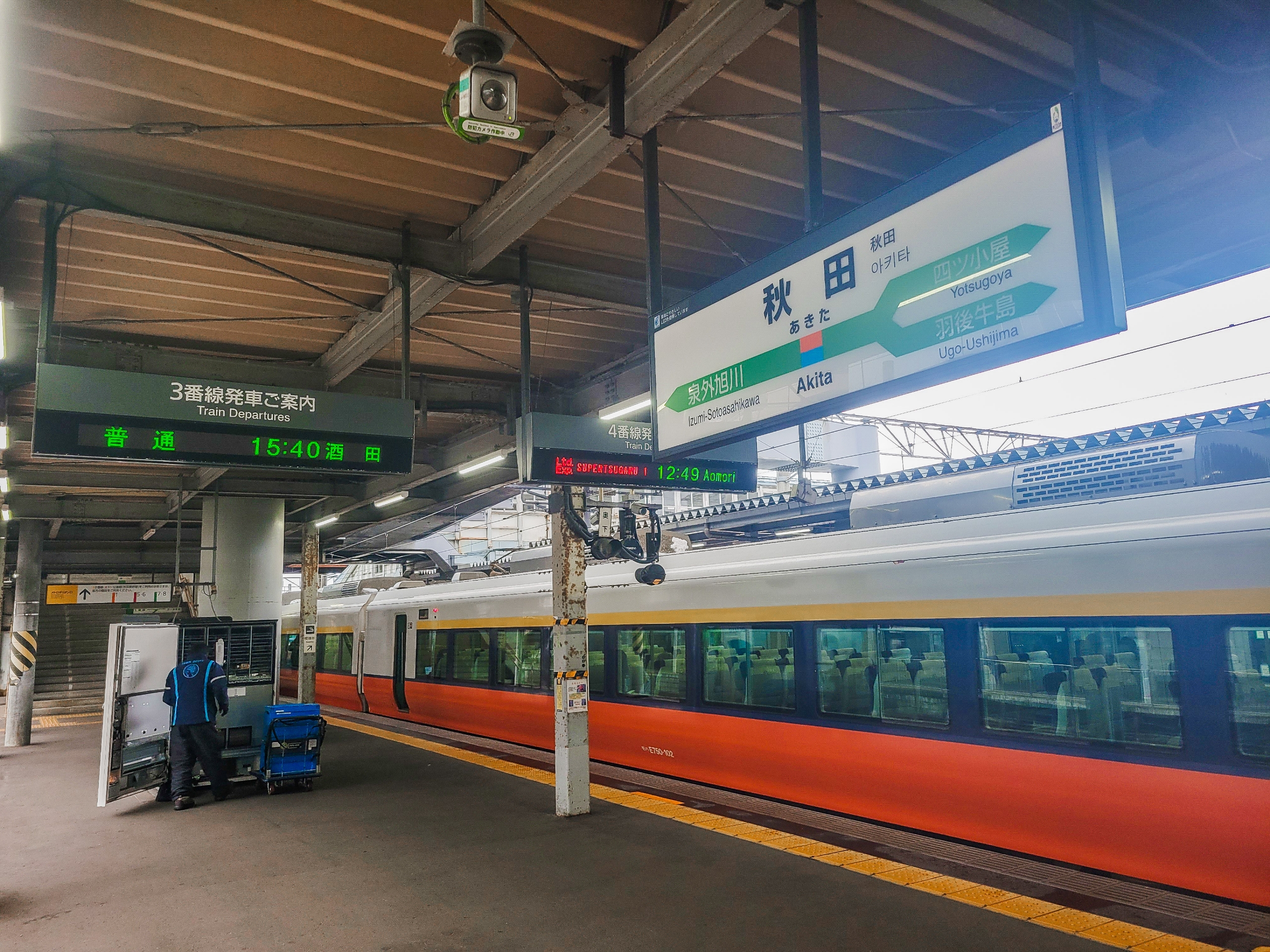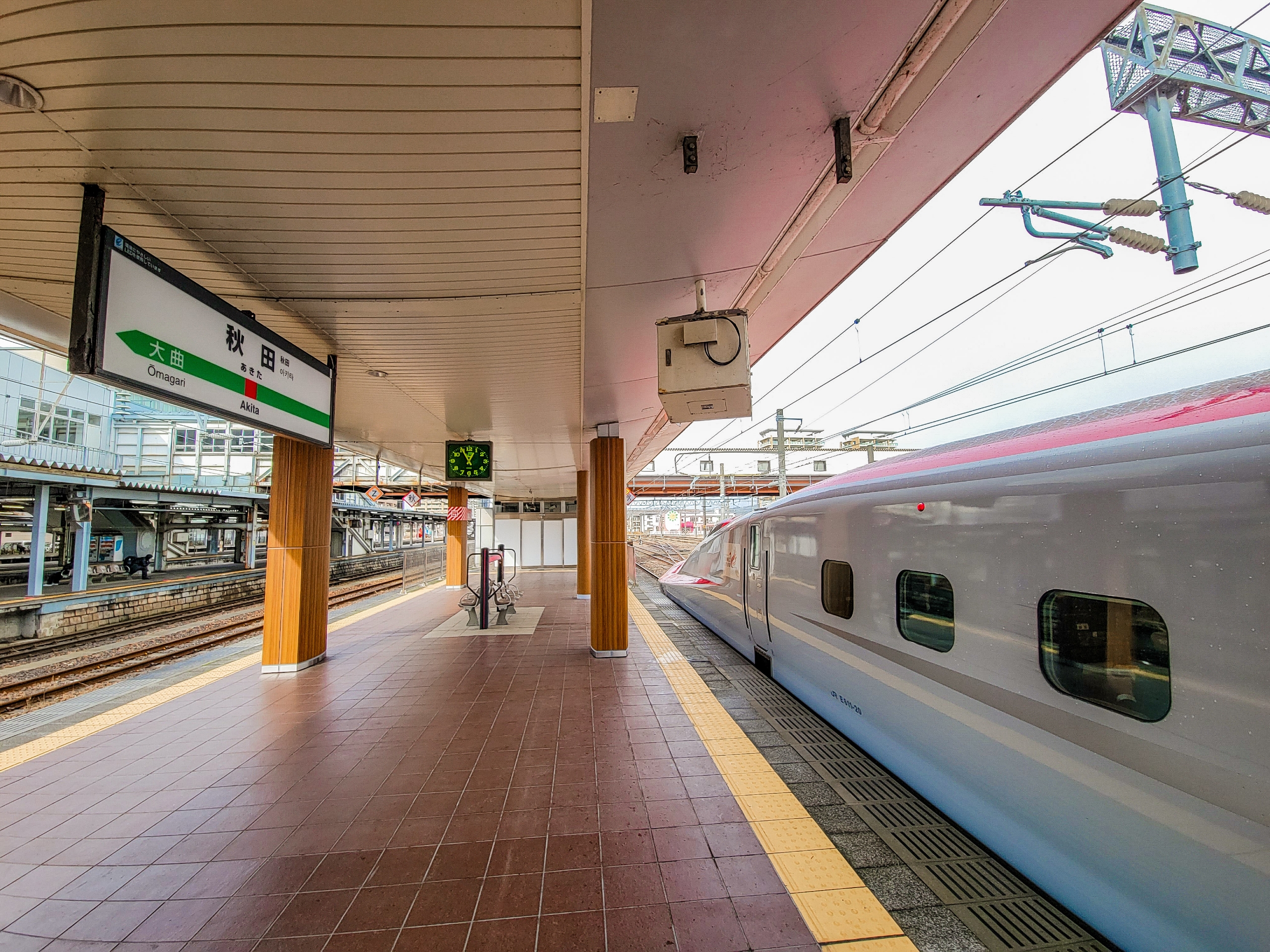 こまち26号の接続はなかったので、みるみるうちに次の乗車可能なこまち28号の座席が埋まっていく。みんな考えることは同じなのだろう。自分はまだ6回の指定席枠を使い切っていなかったので、ネット上で窓側の座席を予約できたが、東能代駅で少しお話していた3人グループの方は、席がバラバラになってしまったようだ。