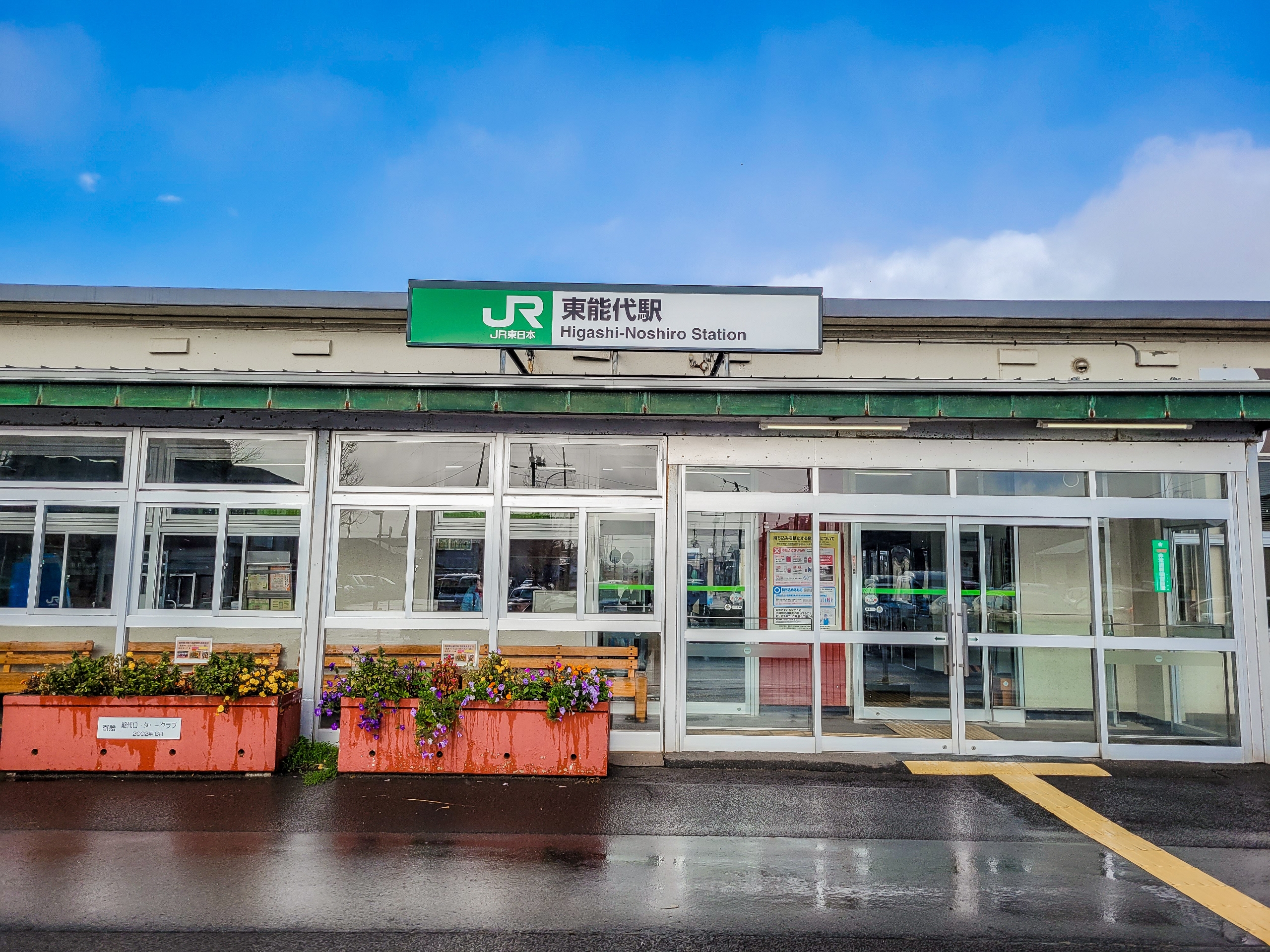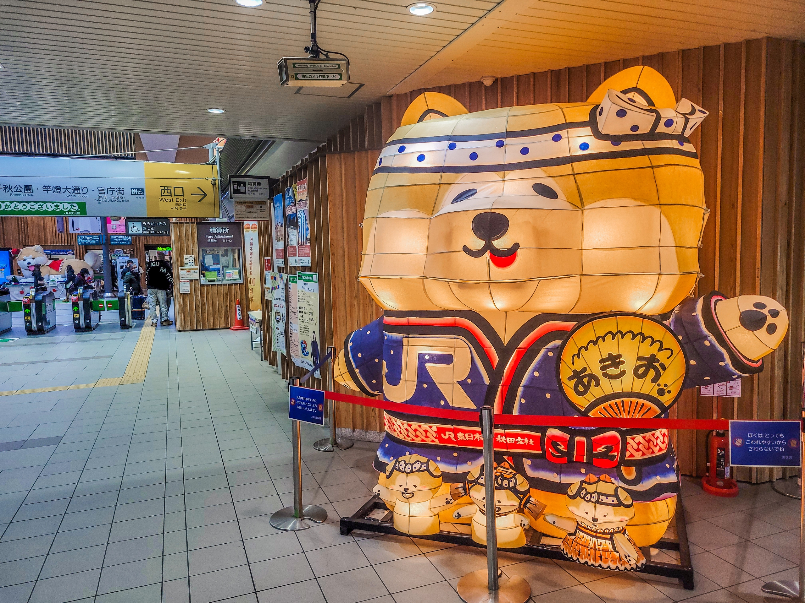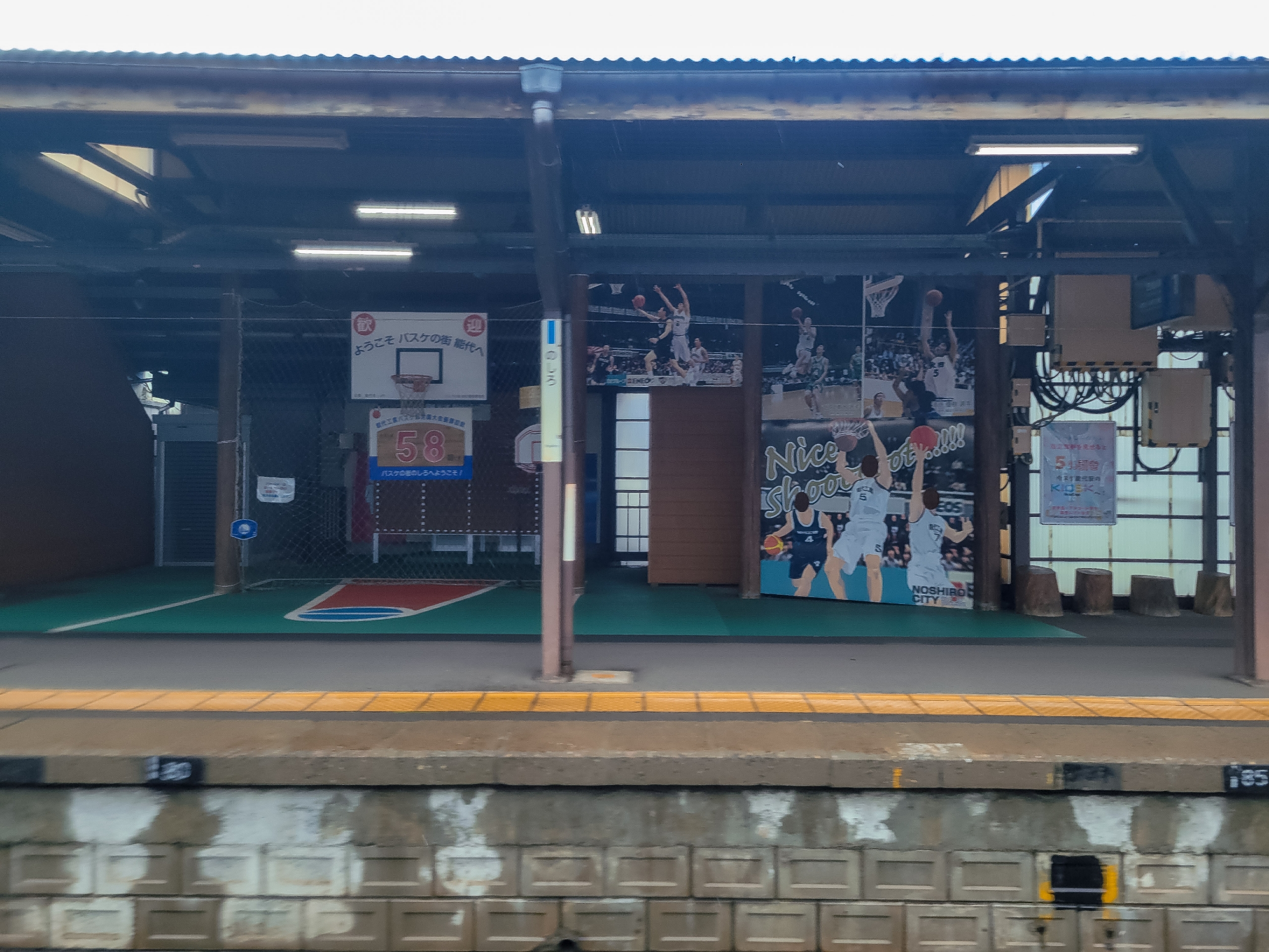 能代駅。能代市は「バスケの街」として知られており、特に能代科学技術高等学校(旧:能代工業高等学校)は、全国屈指のバスケットボール強豪校として有名です。全国優勝58回を誇るバスケットボールの名門校です。近年は低迷してて、若い人は知らないかもしれないけどね。