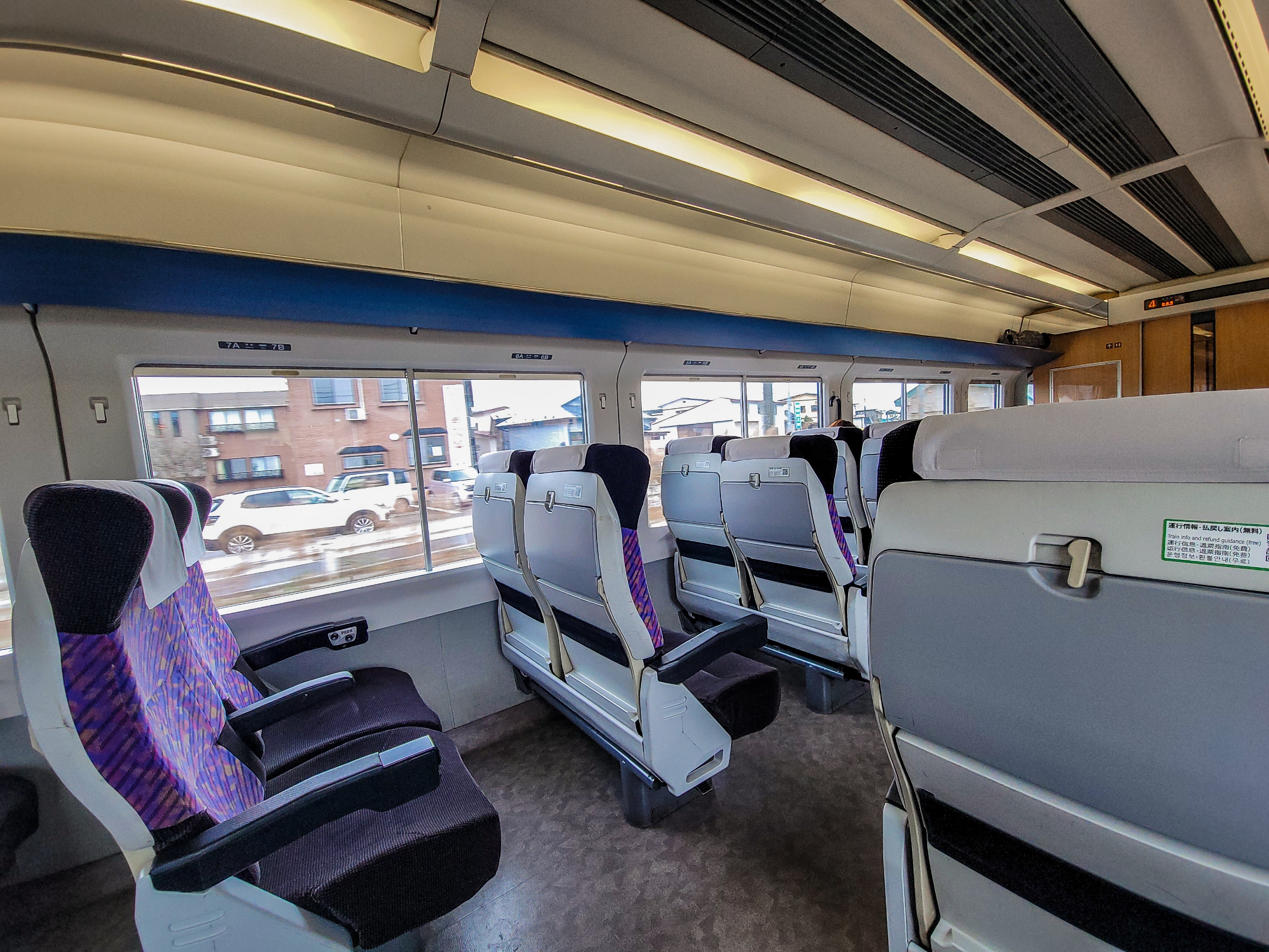運よく座席指定の権利があと1回残っていたので、座席指定を受けて指定席車両に乗り込む。大人の休日倶楽部パスも、そろそろチケットレスに対応してほしいものだ。