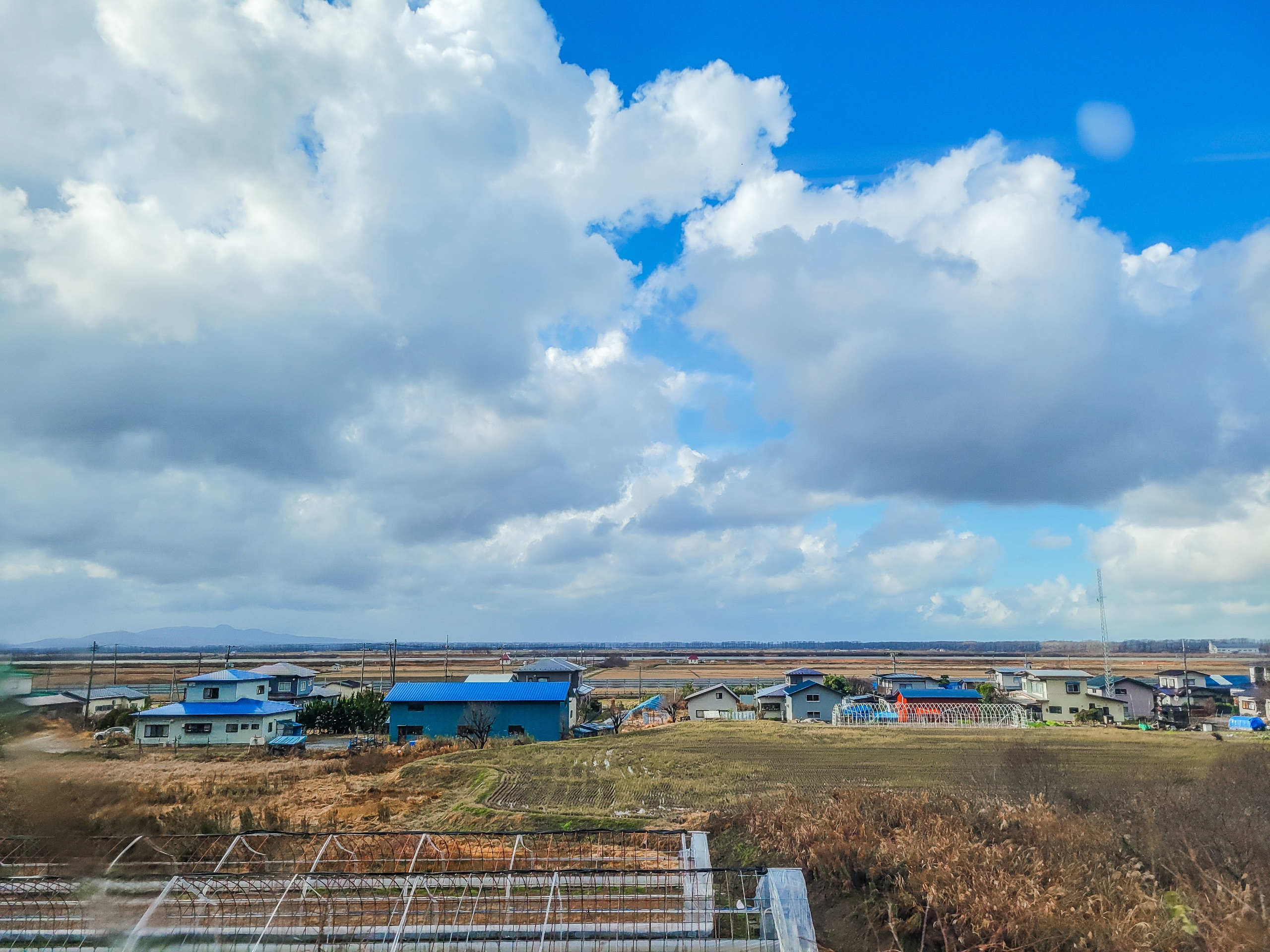 能代駅を過ぎたら突然晴れてきた。この後の展開は予想できなかった。