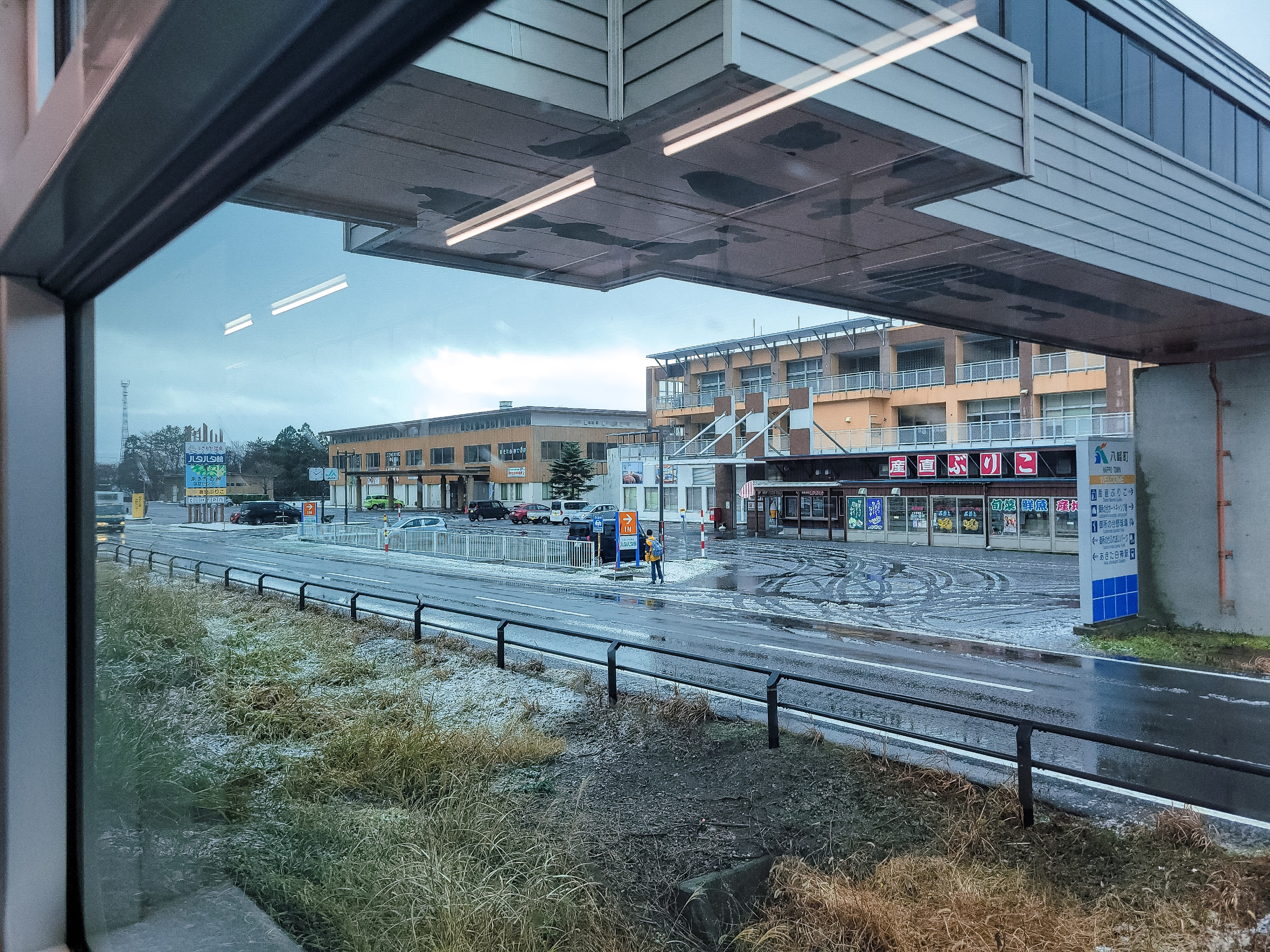 さらに乗ってきた五能線の列車はここで運行が打ち切りになったようだ。危ないところだった。天候悪化が早ければ、ここまでたどり着けなかったかもしれない。