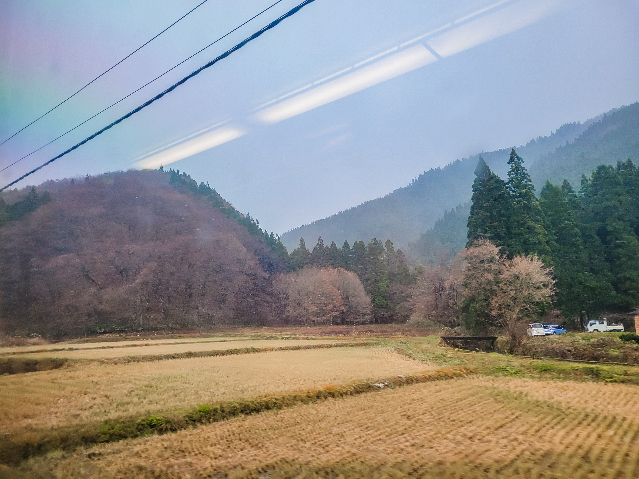 角館駅を過ぎ、横手盆地を過ぎると、平野部は終わりだ。車窓には、山々が迫ってくる。