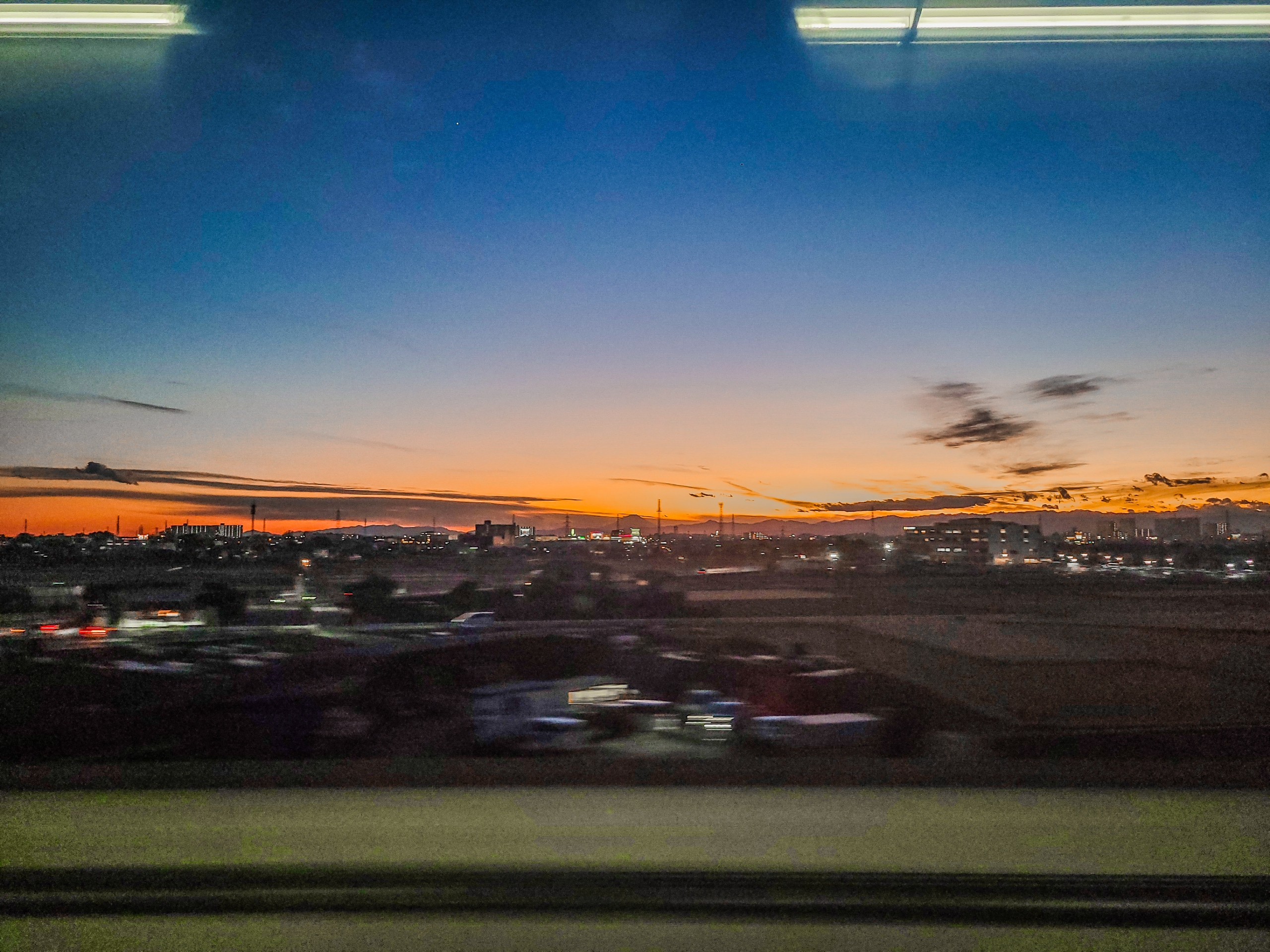 先日も似たような場所で夕陽を見た気がしたなと思ったら、4日前に仙台から東京駅へ乗ったのも、同じこまち28号だった。ぜんぜん気づかなかった。4日前と同じルートで東京へ戻っているんだな。