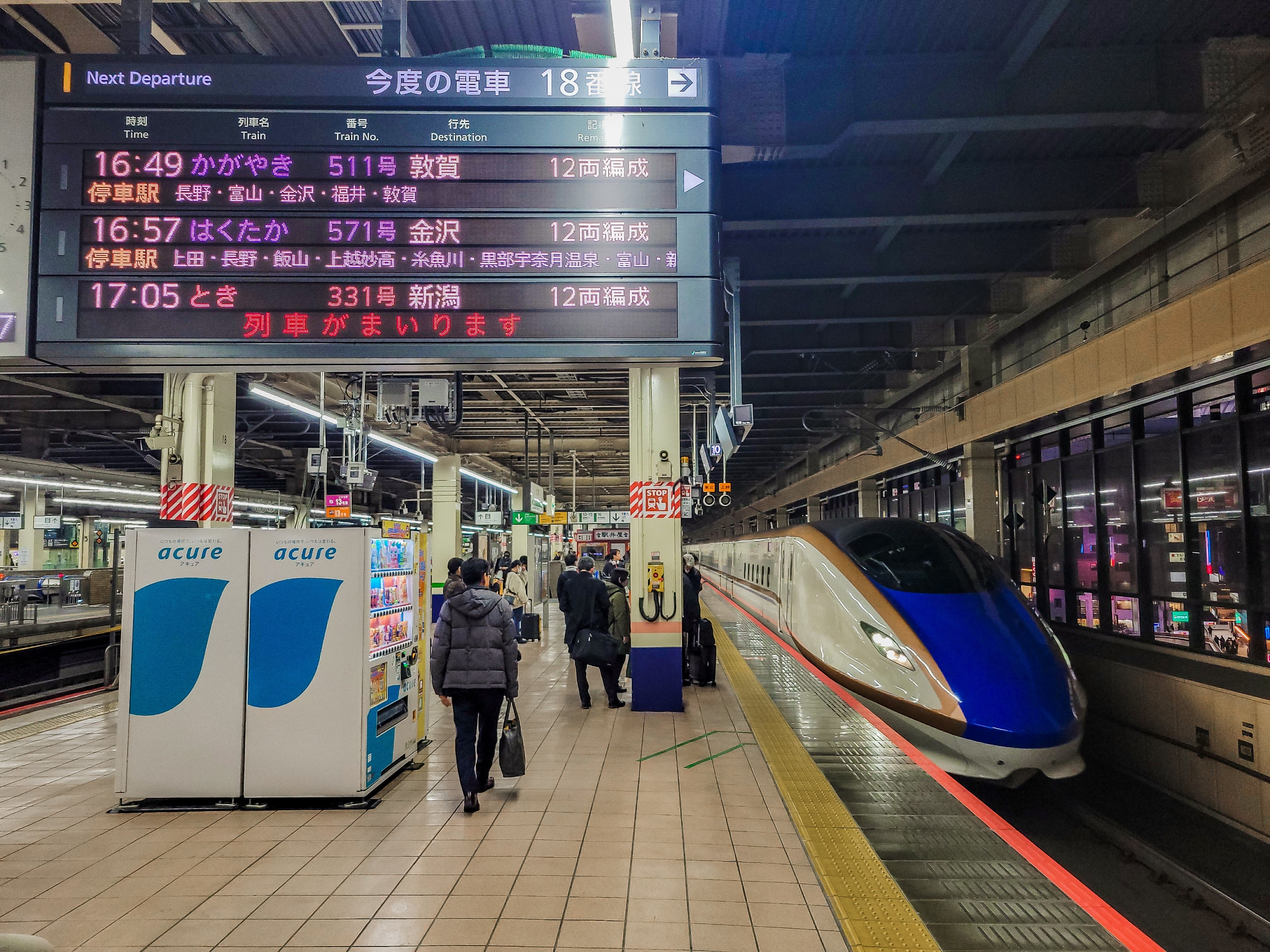 全席指定のかがやき号に乗車。大宮駅を出ると、次の停車駅はもう長野駅。かがやき号は停車駅が少なく、金沢駅までの停車駅は長野駅と富山駅のみ。