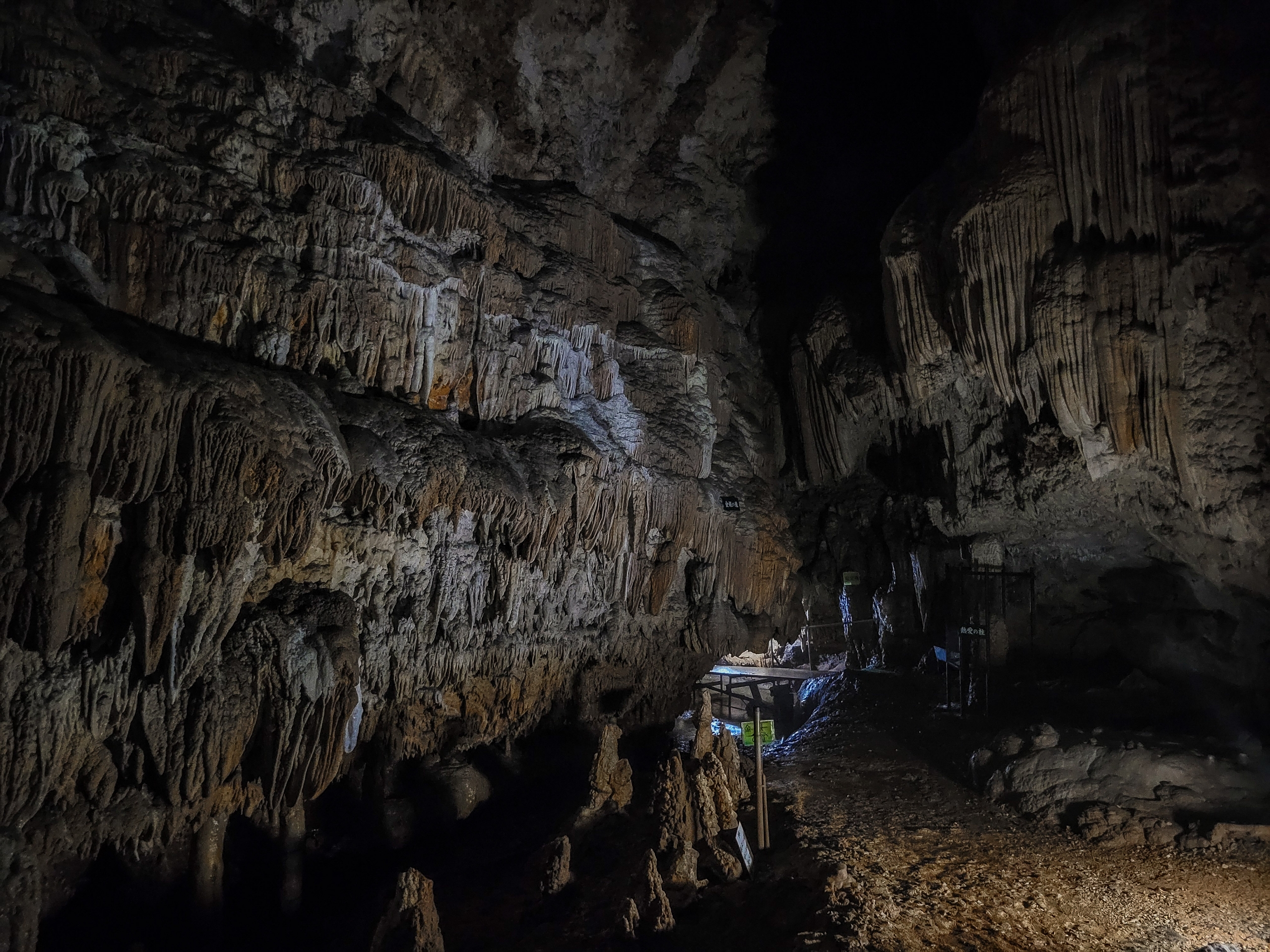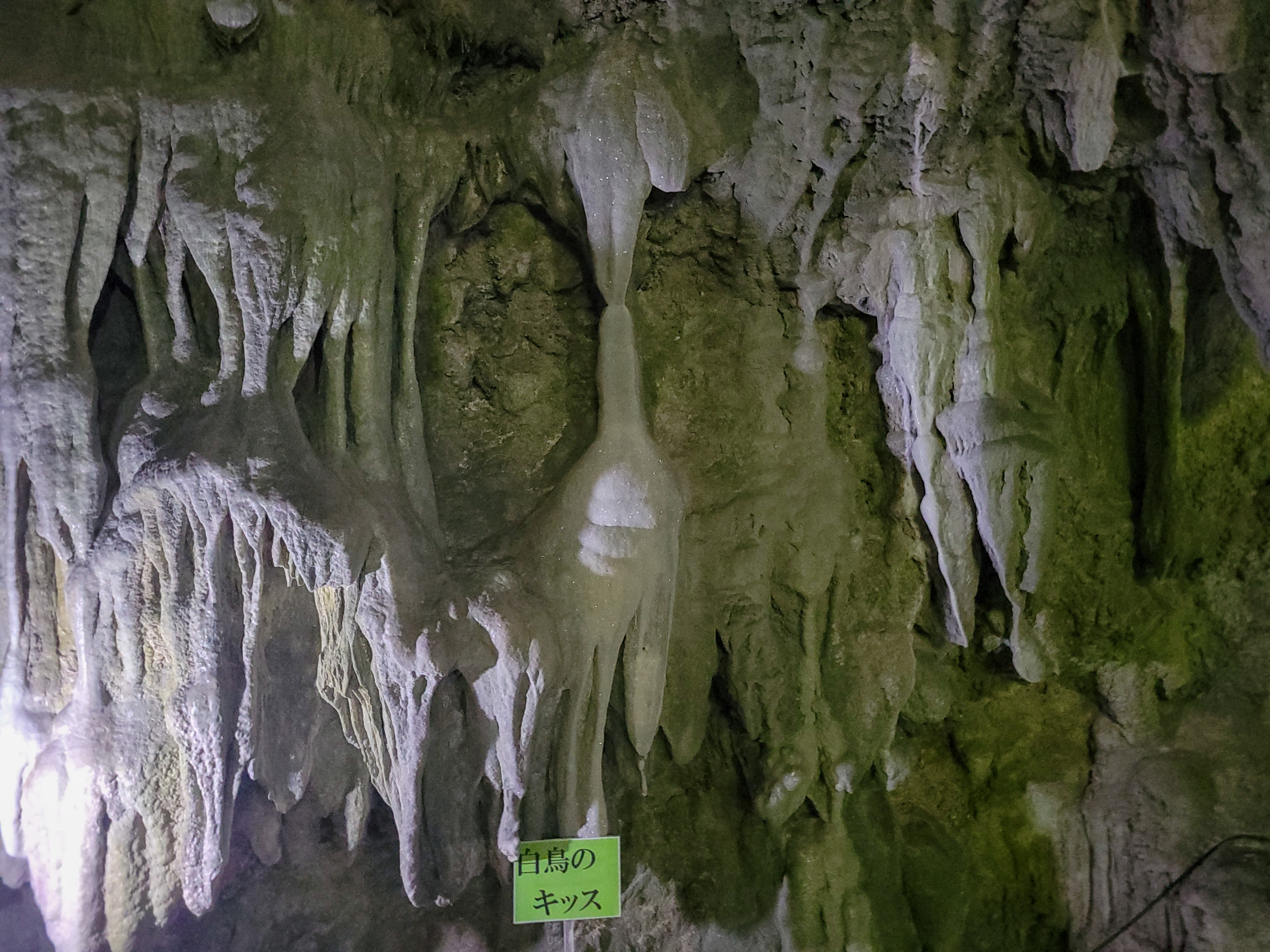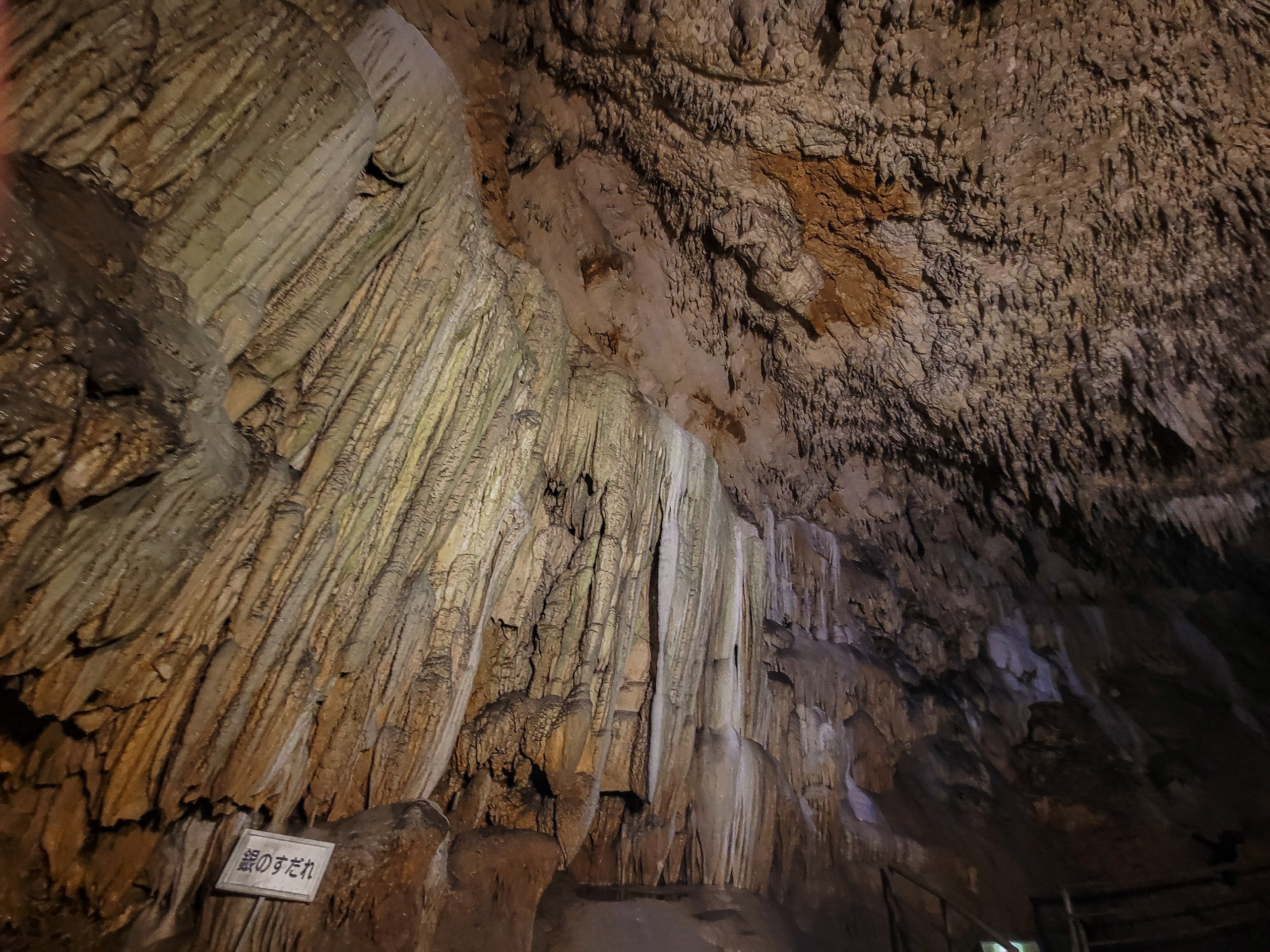 最初は白かった鍾乳石が、徐々に色が茶色くなってきたのかな?古くからあった本州の鍾乳洞はすでに色が劣化していたから、白っぽい鍾乳石をみたことがないのだろうか?