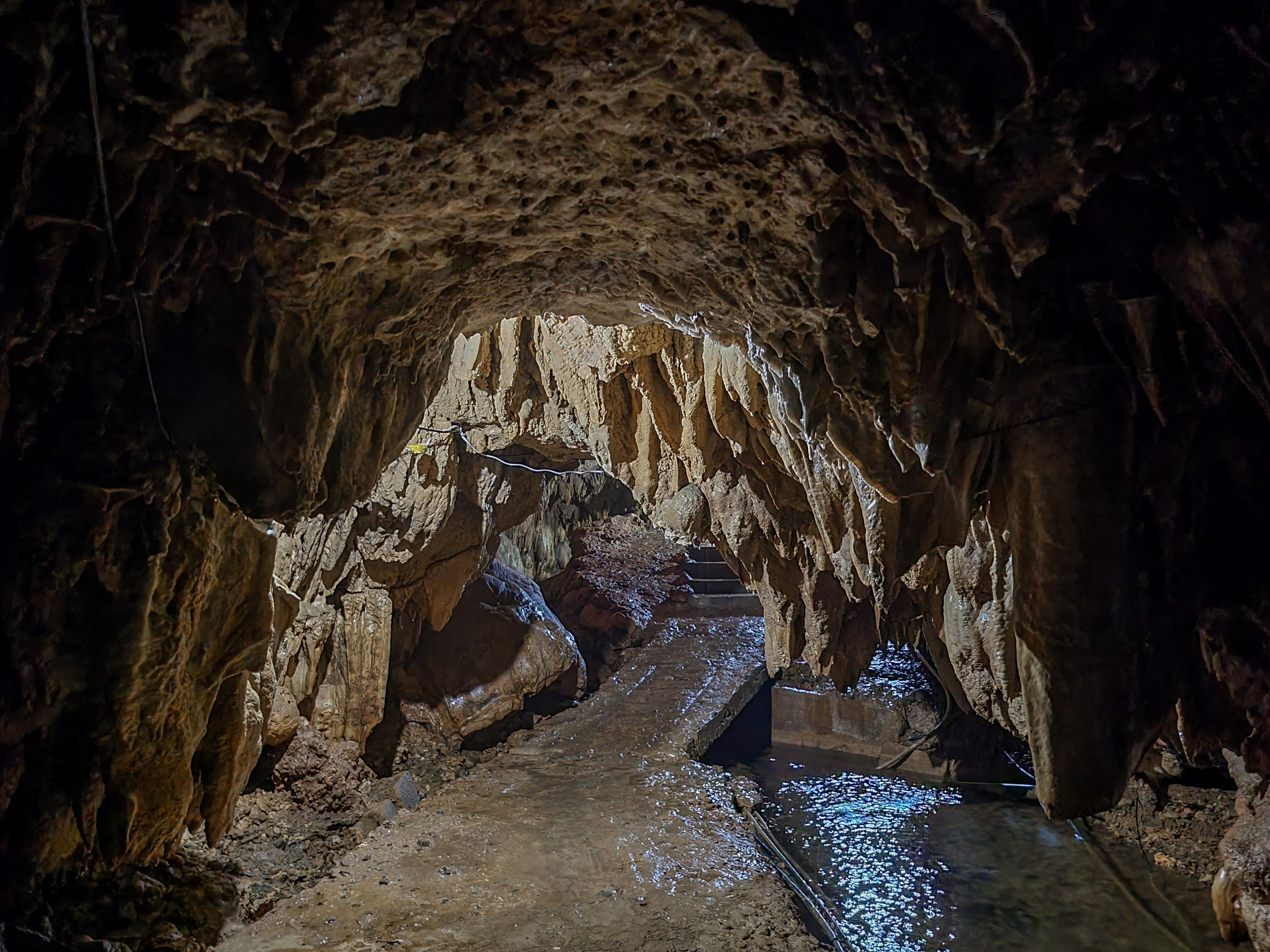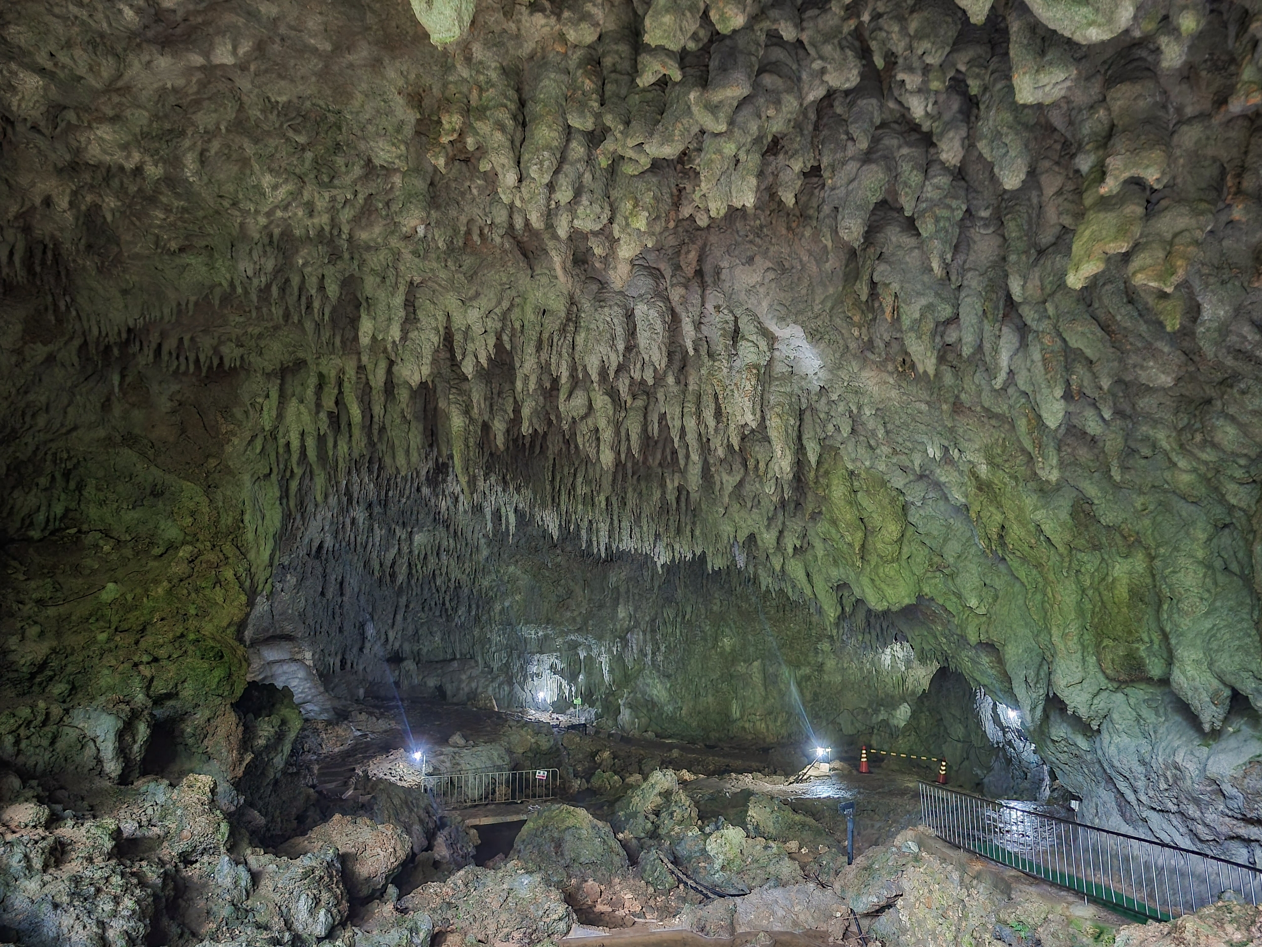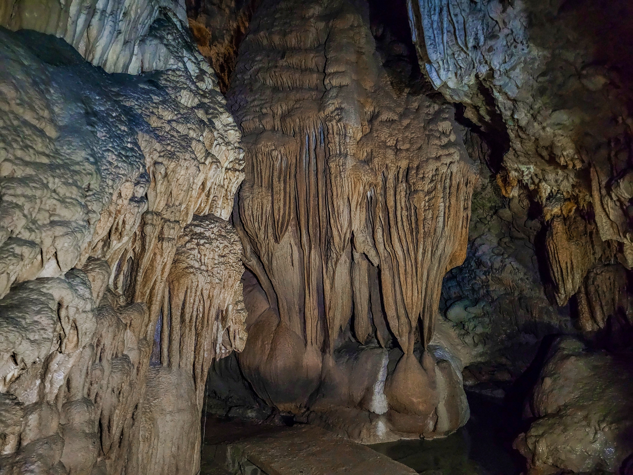 最初は白かった鍾乳石が、徐々に色が茶色くなってきたのかな?古くからあった本州の鍾乳洞はすでに色が劣化していたから、白っぽい鍾乳石をみたことがないのだろうか?