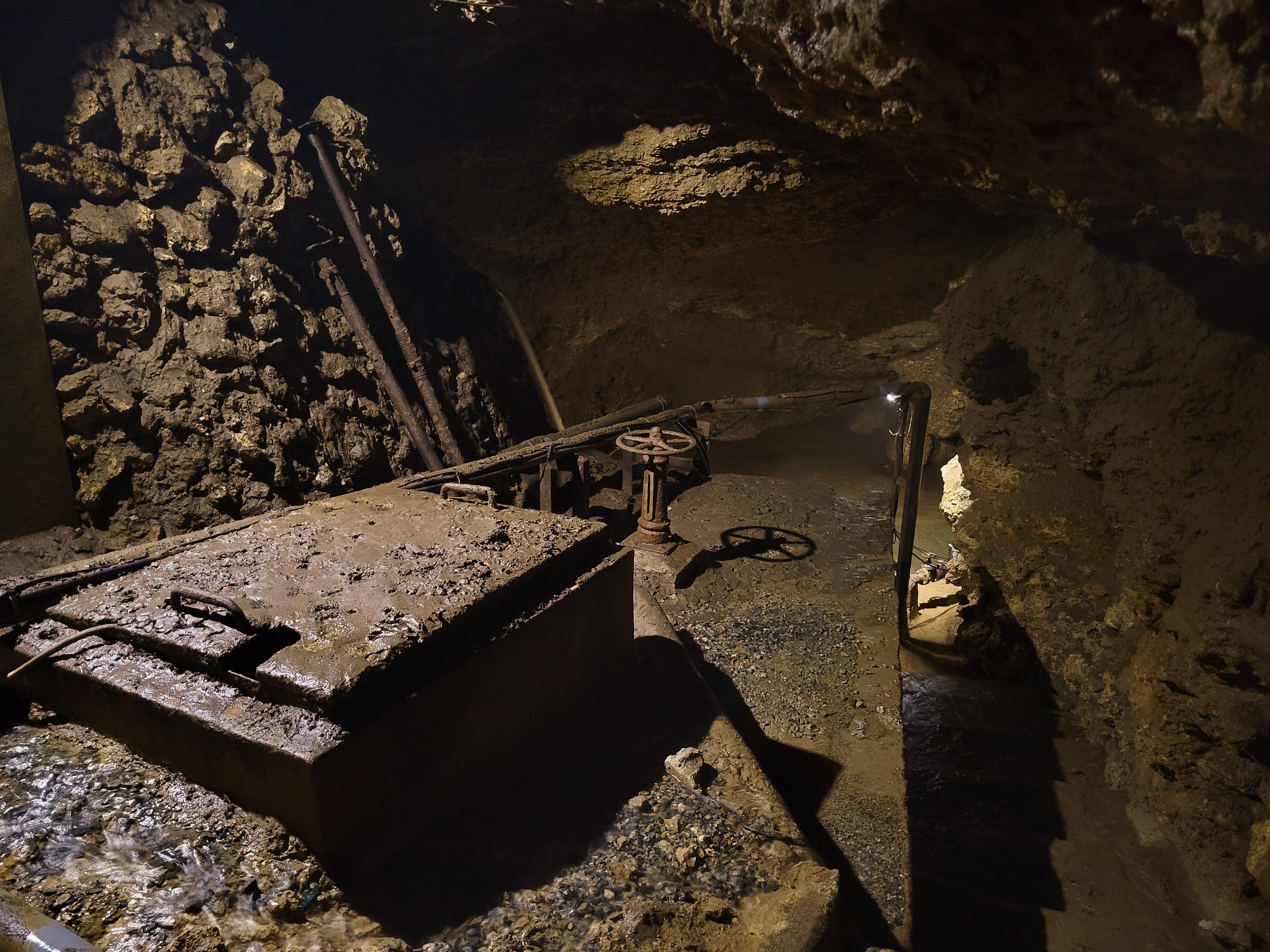 現在でもポンプで水を汲み上げて暗川の水を利用しているようです。この奥は水浸しになっているので、ここで引き返しました。