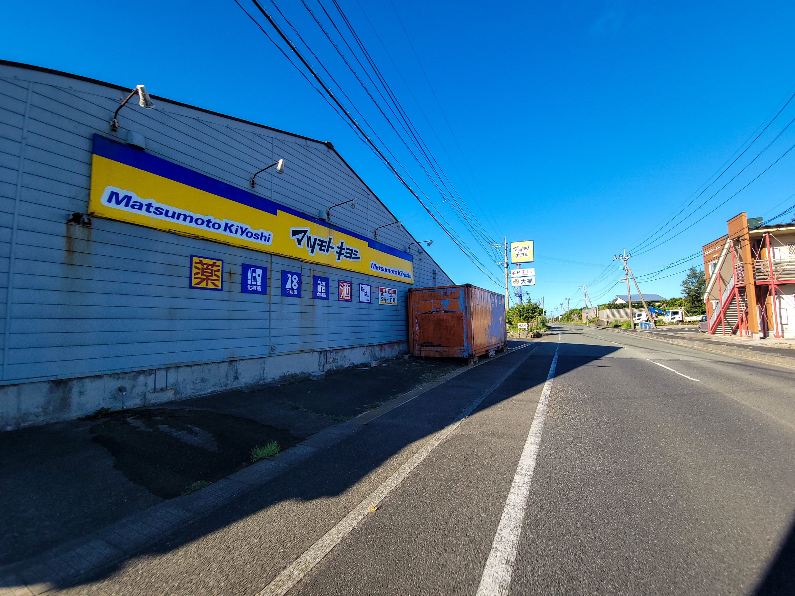 マツキヨがありました。近くにはモリという大きなドラッグストアもあります。5000人の与論島と比べて2.4倍ですが、それ以上の規模の違いを感じます。