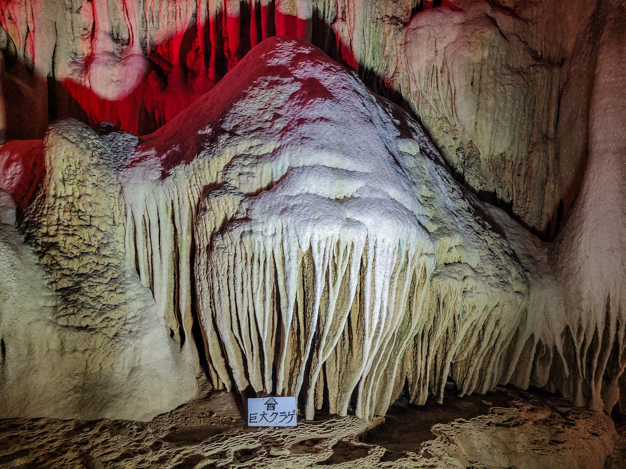 足元の模様も不思議ですね。いったいどうやって出来たのでしょうか。鍾乳洞内を流れる水が削っていったのでしょうか。そのような説明があればいいなと感じます。