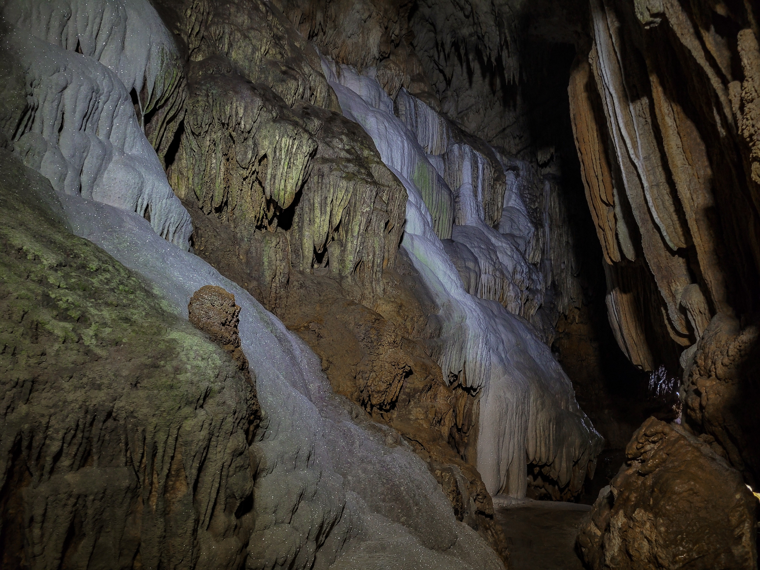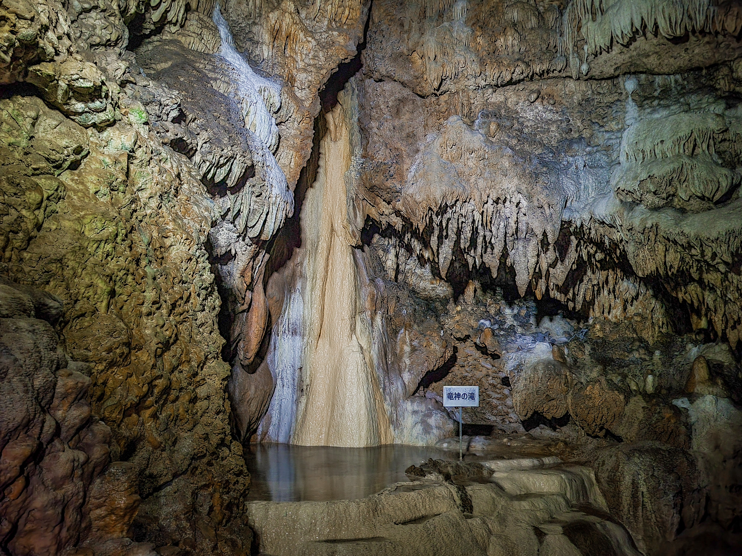 鍾乳石のことを流れる石に例えて、フローストーンとも呼ばれるようです。まさに滝のような造形です。