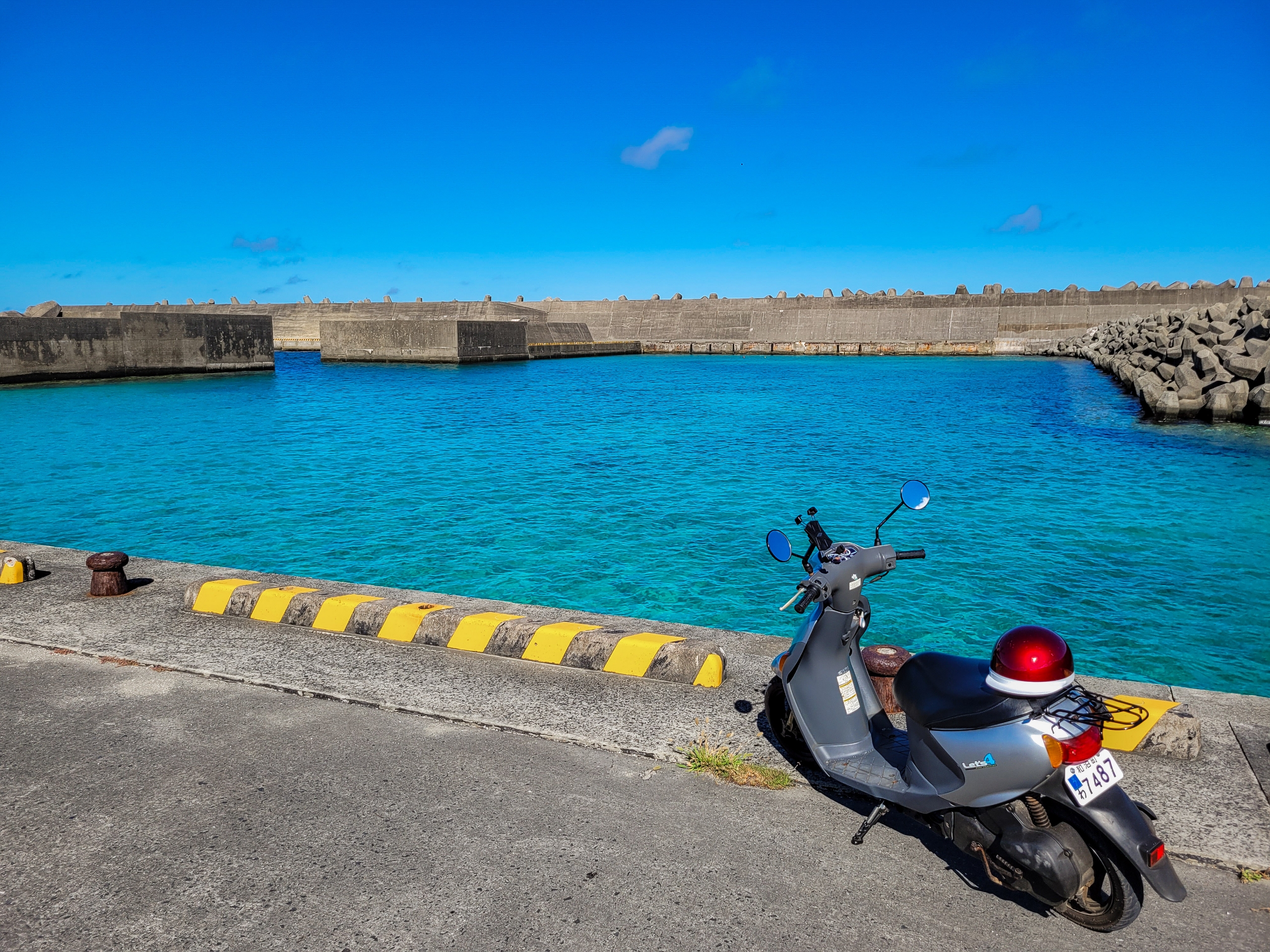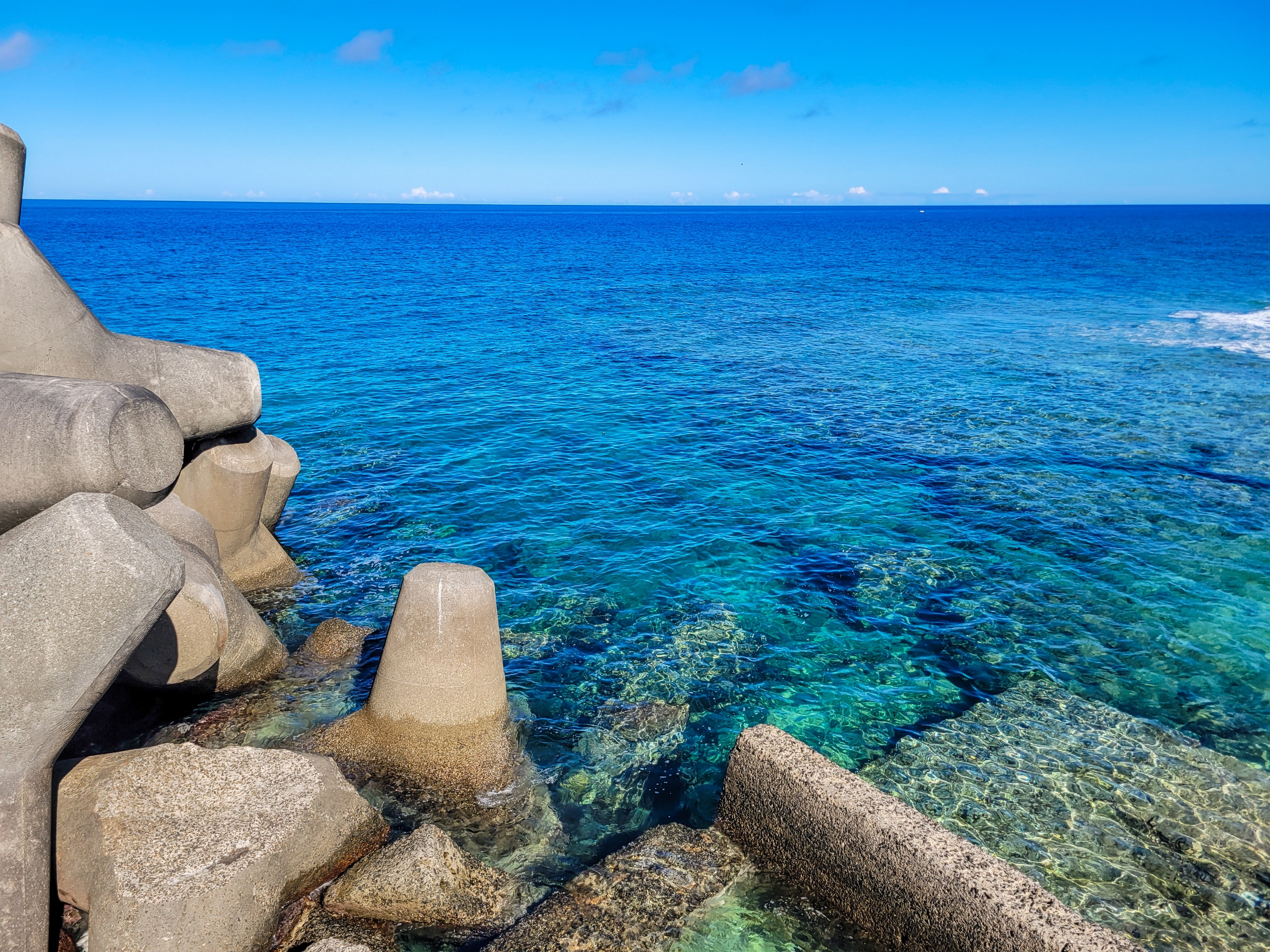 住吉漁港の外側の海。飛び込みたくなりますね。