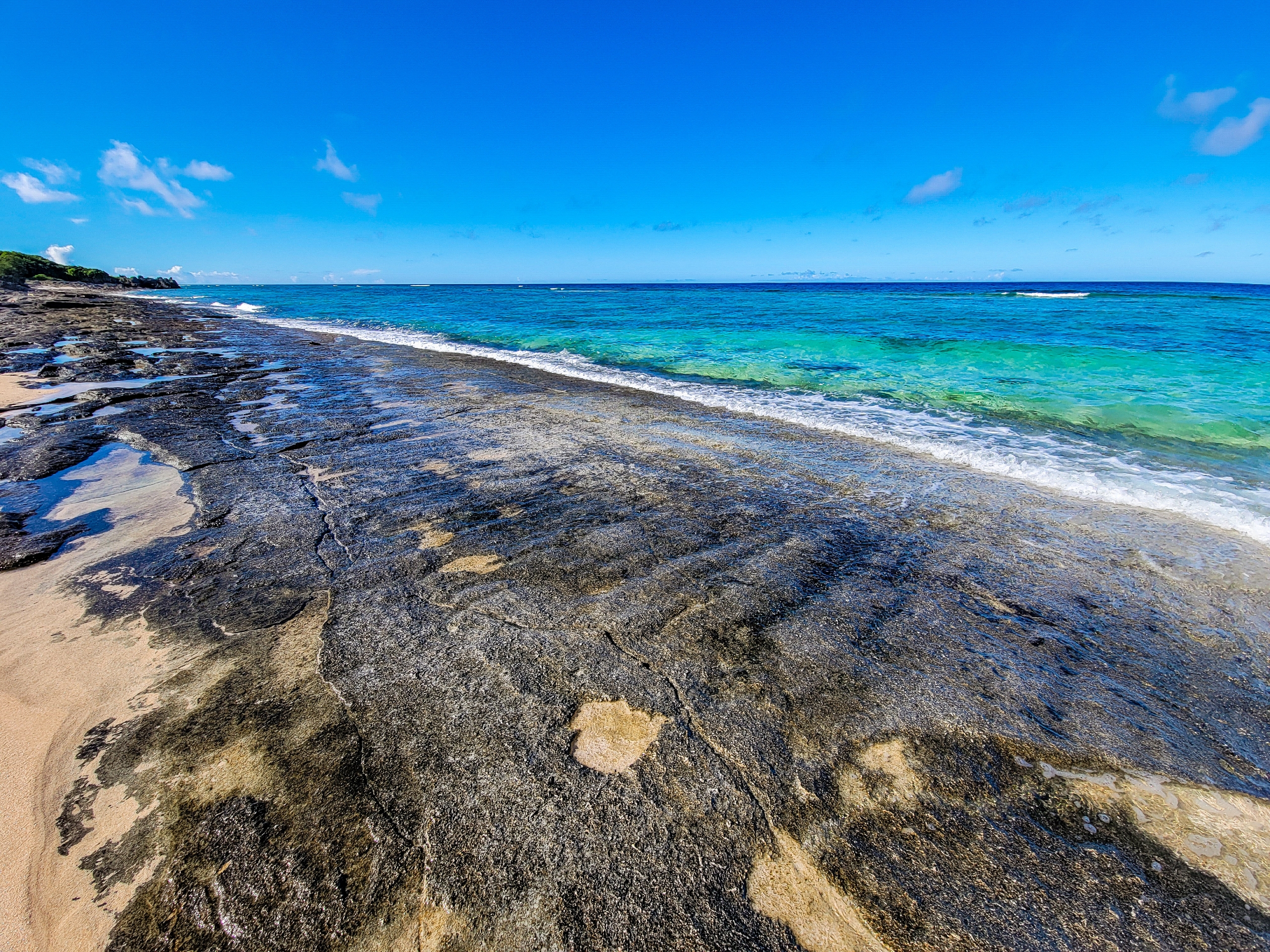 ビーチロック。珊瑚のかけらと砂が凝結し、板のような状態になったもの。10~20㎝の板が層になっているようです。長さ200m続いていて、この規模の大きさは珍しいようです。