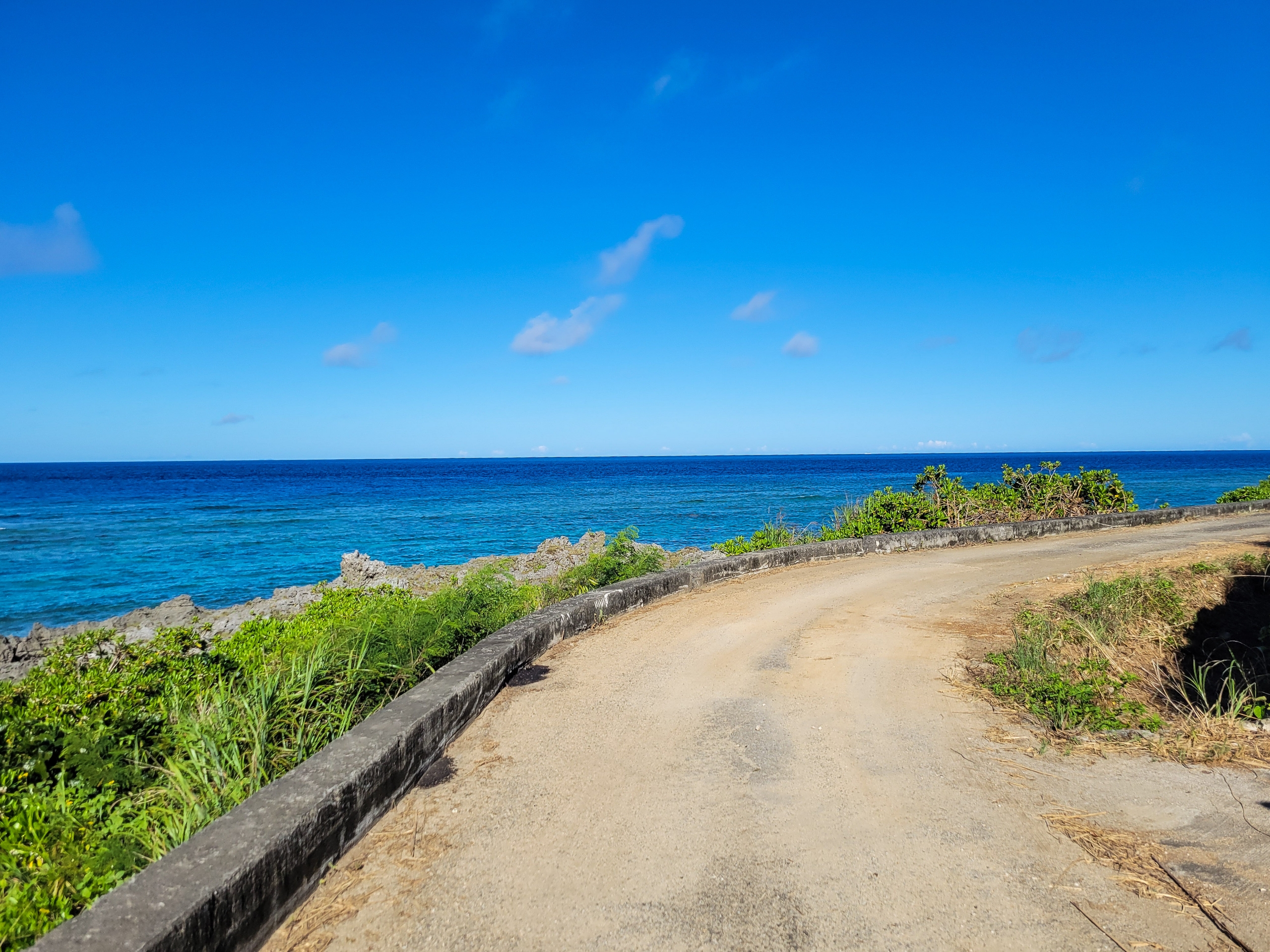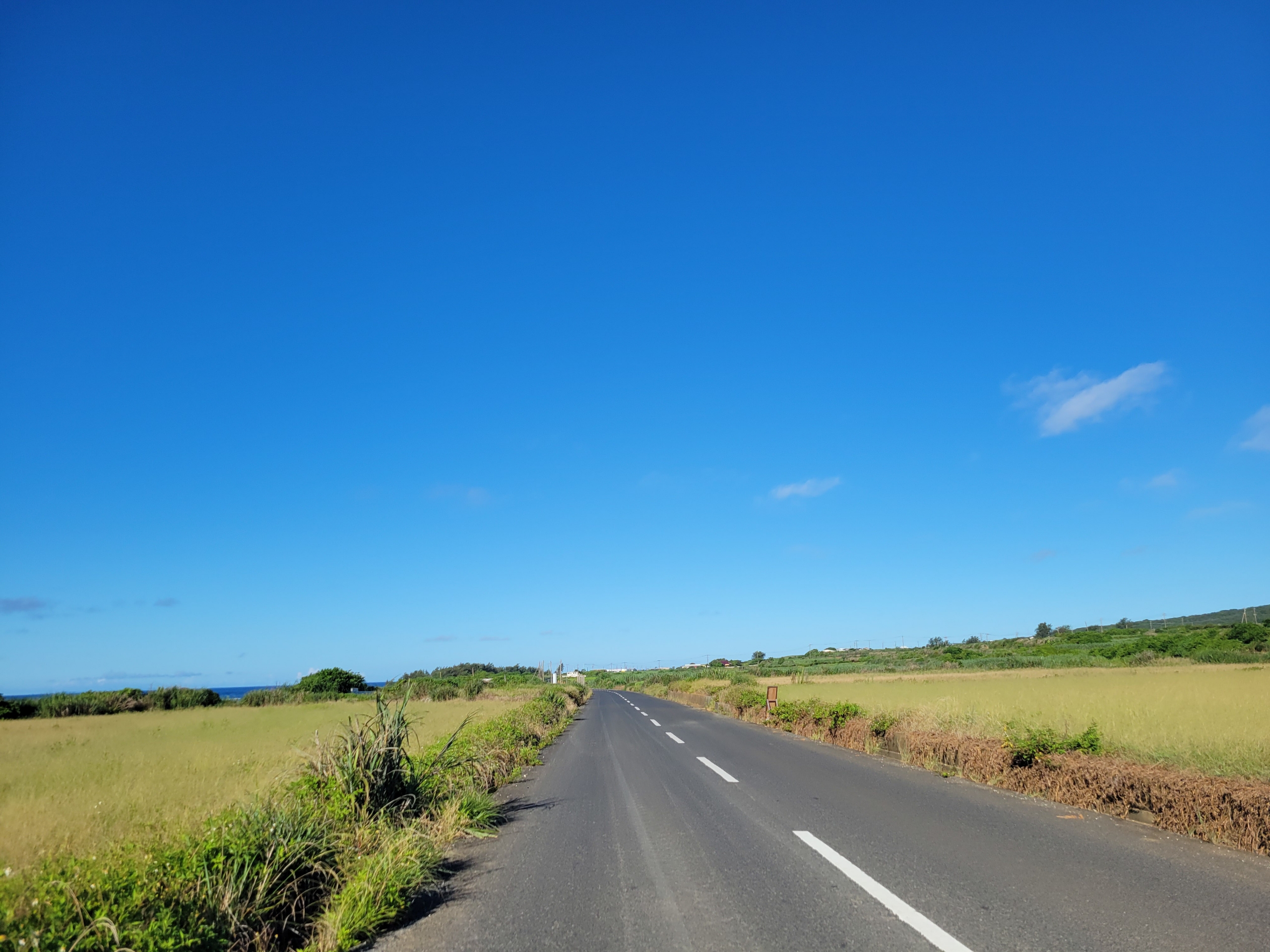 一度と降りすぎたのですが、気持ち良かったので、もう一度走るために戻ってきてしまいました。沖永良部島を一周しましたが、大津勘海岸が道路と海が一番近い距離にありました。